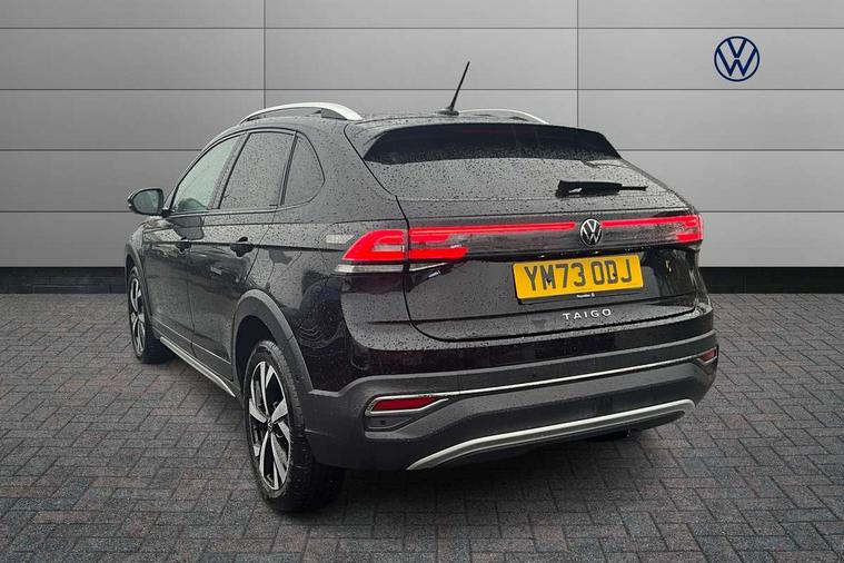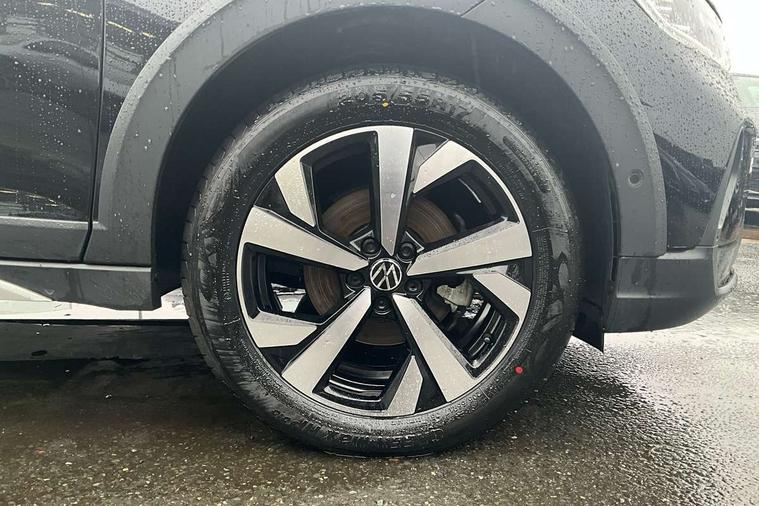 Adaptive cruise control, Advanced driver attention and drowsiness monitor, App-Connect including App-Connect Wireless, Digital cockpit pro - 10.25" high resolution TFT dash display screen with customizable menus and information, e-Call (emergency call), Power Steering, Travel assist including emergency assist, Washer fluid level indicator, Wireless Charging including Bluetooth, Rear shock absorption, Start-stop system with battery regeneration (recuperation - energy recovery during braking), Digital radio reception (DAB+), Diversity antenna for FM reception, WeConnect plus, Ambient lighting with logo projection, Aspherical driver's exterior mirror, Auto headlights, Body coloured bumpers and radiator grille with chrome trim and front fog lamps with chrome bezel, Body coloured exterior mirror housings and door handles, Dual chrome twin tailpipes on left and right, Electric windows, External USB type C socket and charging sockets, LED rear combination lamp, LED third brake light, Left convex exterior mirror, Power folding adjustable/heated exterior mirrors and front passenger exterior mirror lowering function, Rear fog light on one side, reversing light on both sides, Rear side wing doors, Rear wash/wipe with intermittent wipe setting, 12V socket in centre console, 2 front reading lights, 3 rear head restraints, 3 seat bench in 2nd row, Air care climatronic air conditoning system with active combination filter and 2-zone temperature control, Black carpets, Child seat anchor for child seat system i-Size, 2x top tether and child seat anchor in front on front passenger side, Chrome bezel for instrument cluster, vents, door handles + gear shift, Driver and front passenger seat height adjustment, Front + rear carpet mats, Front centre armrest, Front footwell illumination, Front sports comfort seats, Height and reach adjustable steering wheel, Interior ambient lighting and surround lighting, Leather trimmed gear knob, Leather wrapped multifunction steering wheel, Luggage compartment floor, Luggage compartment light, Lumbar support for driver's and front passengers seat, Single front passenger seat, Split folding backrest with centre armrest and unsplit rear seat bench, Storage compartment under front seats, Sun visors with illuminated vanity mirrors, Chrome Package - Taigo, Drivers assistance pack - Taigo, IQ.LIGHT - LED matrix headlights pack - Taigo, Light and sight pack - Taigo, 2 x 3-point seatbelts/outer rear seats with ECE label, 3-point seat belts in front with pretensioner and height adjustment, 3-point seatbelt for centre rear seat, Driver and front passenger airbags with front passenger airbag de-activation, front side and curtain airbags, Driver and front passenger safety-optimised head restraints, Electronic stability control, Extended and predictive pedestrian/ cyclist protection, Front and rear disc brakes, Front curtain and side airbags with center airbag, Hill start assist, Manual rear child locks, Single tone horn, Tyre pressure loss indicator, Anti-theft alarm system with interior monitoring, backup horn, and towing protection, Anti-theft wheel bolts, Low rolling resistance tyres,