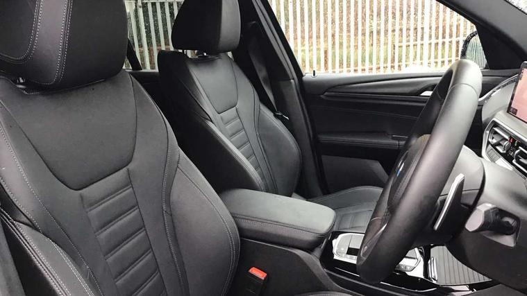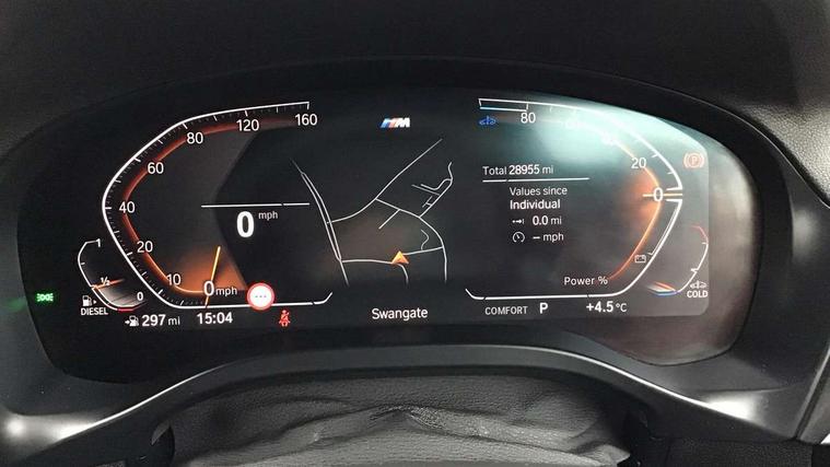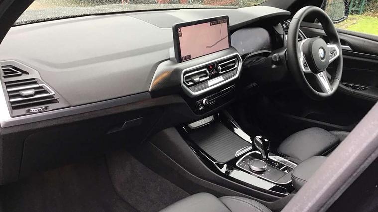 Active Guard, Attentiveness assist, BMW Live Cockpit Professional nav system including 12.3" instrument display + 12.3 high resolution control display, BMW Online services, BMW Teleservices, Brake pad wear indicator in front and rear, Check Control warning system for monitoring of lights and door/luggage compartment open warning, Condition based service - BMW service history, electronic service booklet, integrated owner's handbook, Connected drive services, Cruise control with brake function + speed limiter, Electric boot lid, Front/rear Parking distance control, iDrive Controller with 8 favourite buttons, Instrument cluster with speedometer with mph readout, tachometer, fuel gauge and oil temperature gauge, Lights on warning by audio warning signal when ignition is switched off, Oil sensor for level and grade, warning by check control system, On board computer - average speed+fuel consumption, service interval, clock/date, odometer/trip meter, outside temperature display and ice warning, Optimum shift indicator, Personal Profile - automatic lock when driving away selectable, Stop/start system, Variable sports power steering, Automatic transmission with gearshift paddles, Diesel particulate filter, Drive performance control with ECO PRO comfort + sport mode, Incorrect fuelling protection, Larger capacity fuel tank, M sport suspension, Multi-link rear suspension, Performance Control, BMW professional radio/CD/MP3, DAB tuner, Acoustic glazing, Automatic windscreen wipers and automatic headlight, Black finish on B pillars, Body colour door handles, Body colour electric adjust heated aspherical door mirrors, Body colour roof mouldings, Body coloured bumpers, Direction indicator, side repeaters, integrated in exterior mirrors, Dynamic brake lights, Exhaust tailpipes - dual, round, split left and right with chrome finisher, Fingertip control / anti-trap function on electric window, Folding wing mirrors with auto dimming, Follow me home headlights, Front and rear bumper system with replaceable deformation elements, Front and rear electric windows, Gloss chrome tailpipes finishers, Green tinted heat insulating glass, Heated windscreen washer jets, High beam assistant, High gloss black shadow line roof rails, High gloss shadowline exterior trim in decorative moulding side frame/recess cover/guide rail/B, C pillars/mirror frame and triangle with mirror base, High level 3rd brake light incorporating LED Technology, Interior rear view electrochromatic mirror with automatic anti dazzle function, LED tail lights, Lightweight engineering, M aerodynamic bodystyling, Model designation, Rear side wing doors, Rear wing door, Rear wiper, Shark fin antenna, Side exterior M designation badges, Visible VIN plate, Welcome lighting, Windscreen wipers with adjustable interval, 12V power socket in front centre console, 3 rear headrests, 3 zone automatic air conditioning, 4 lashing points to secure luggage, 40:20:40 split folding rear seat with loading system, 5 seats, Ambient lighting, Anthracite headlining, Automatic interior light when door is opened/ignition switched off or via remote key, Foldable storage floor with compartment, Four grab handles integrated in roof lining, Front and rear bottle holders integrated into door trim storage compartments, Front and rear side armrests integrated into door trim, Front centre armrest with storage compartment, Front footwell lights, Front head restraints, Front sports seats, Front/rear courtesy lights with soft on/off dimming, Front/rear reading lights, Heated front seats, Isofix rear child seat preparation, Leather gear knob, Luggage area underfloor compartment, Luggage compartment lighting, M sport leather steering wheel, Multifunction steering wheel, Parcel shelf removeable and storable under boot floor, Reach and rake adjustable steering column, Rear centre armrest with 2 cupholders, Removable / retractable luggage cover, Seat backrest width adjustment, Slope adjustable rear seats, Storage compartment in rear centre console and front/rear door trims, Sun visors with vanity mirrors and ticket pocket, Toolkit located in luggage compartment, Two front cupholders with removable oddments tray/lid, Vernasca leather upholstery, Connected pro pack - X3, Driving assistant pack - X3, ADB - Automatic Differential Brake, Anti-lock braking system (ABS) with brake assist, Automatic Stability Control (ASC), Battery safety cut-off, BMW emergency call, Brake drying, Brake energy regeneration, Braking pre-tensioning, Child locks on rear doors, Cornering brake control (CBC), Crash Sensor - activation of central locking release, hazard warning light and interior lighting, Deactivation of fuel pump in the event of a crash, Driver and front passenger front and side airbags with passenger deactivation and ITS front and rear head airbags, DSC+, Dynamic brake control, Dynamic Traction Control - DTC, Electromechanical parking brake, Hill descent control, Hill start assist, Seatbelt security check for front seats, Side impact protection, Three point seatbelts to all seats with front and outer rear pyrotechnic belt tensioners and seat belt force limiters, Two tone horn, Tyre pressure sensor, Ventilated front and rear disc brakes, Warning triangle and first aid kit, Central locking switch for all doors, fuel filler cap and luggage compartment, Electronic engine immobiliser, Locking wheel nuts, Remote control including two integrated key - one button for open/close all lockable content, windows and separate button for open luggage compartment, Remote control Thatcham category 1 alarm, Start/stop button with Comfort Go keyless engine start and auto Start/stop deactivation button, Low rolling resistance tyres,