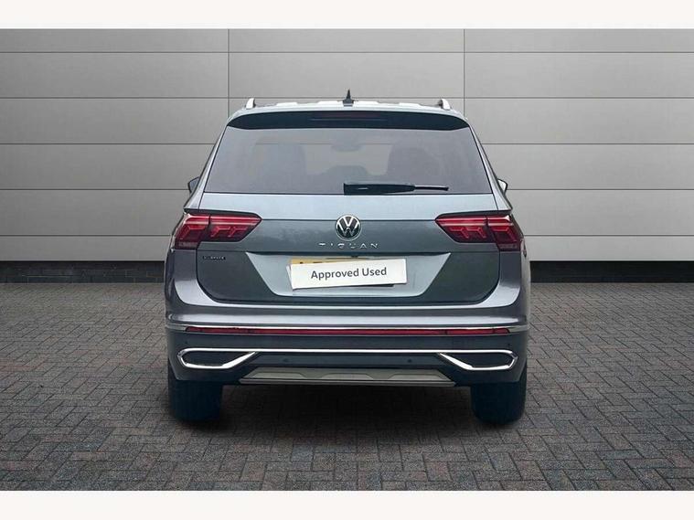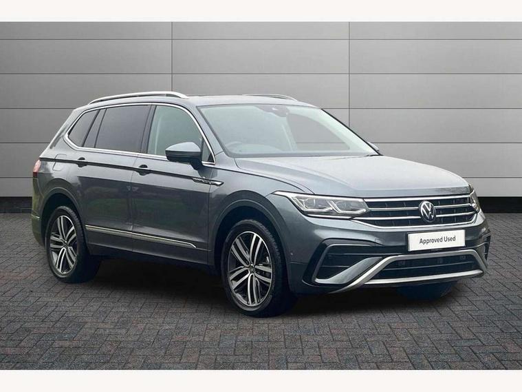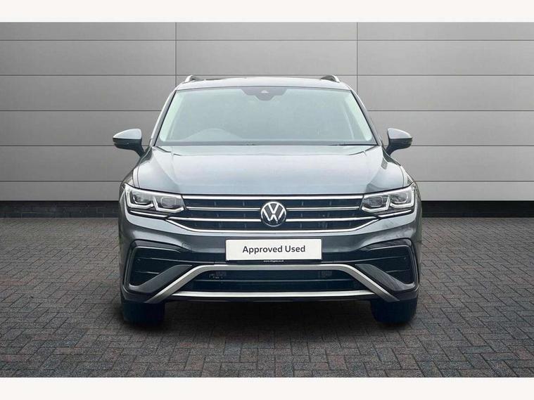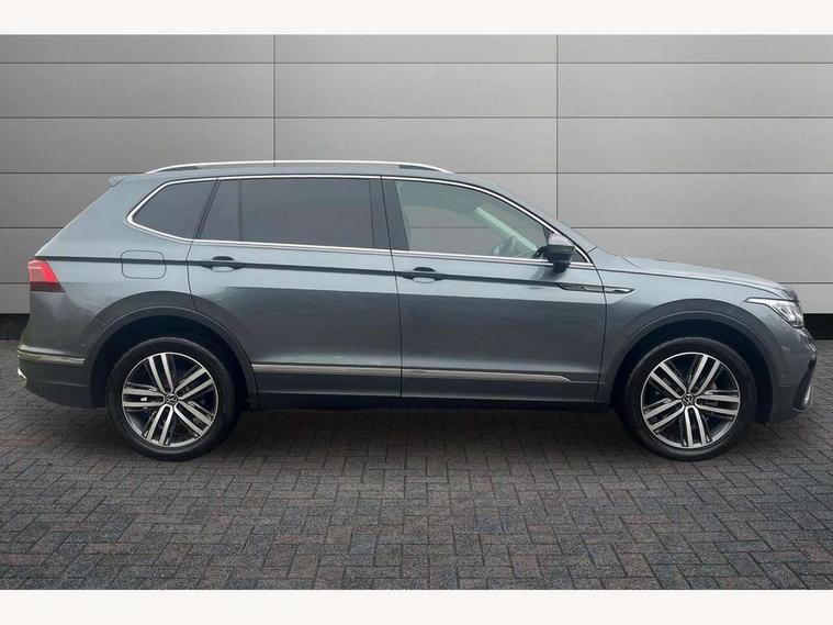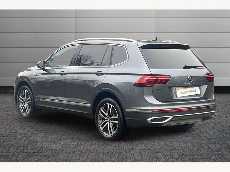 Adaptive cruise control, Advanced driver attention and drowsiness monitor, App-Connect, Digital cockpit pro, Driver profile selection, eCall emergency call service, Electric boot lid, Lane keeping system Lane Assist, Mobile phone interface comfort with inductive charging feature, Multifunction front facing camera, Power assisted speed sensitive steering, Speedo and rev counter, electronic odometer, trip, service interval display and exterior temperature gauge, Front wheel drive, Start-stop system with battery regeneration (recuperation - energy recovery during braking), 2 USB-C ports in the front, 1 USB-C charging socket on the center console in the rear, DAB Digital radio, Diversity antenna for FM reception, Auto dimming interior rear view mirror, Automatic headlight control system, Body coloured comfort bumpers, Chrome mouldings on side window, Coming/leaving home lighting function, Exterior badge deletion, Exterior mirror housings painted in silver, IQ light adv HBC, dyn light assist LED matrix headlamps, DH range, dark red LED rear combo light, poor weather, CL, LED headlamp with LED DRL and DCL - PXC, Privacy glass, Rain sensor, Rear fog light, Rear side wing doors, Rear wiper, Silver roof rails, Third brake light, Tilting and sliding panoramic sunroof, 12-volt outlet in centre console rear and luggage compartment, 12V socket in centre console, 3 head restraints in rear, 3 individual folding 2nd row seats, 3rd row 2 individual seats, Air Care Climatronic 3 zone automatic climate control with enhanced air filter and controls in the rear, Door and side trim panel, Drawers under front seats, Driver and front passenger seat height adjustment, Foldable front passenger seat backrest, Front + rear carpet mats, Front centre armrest, Front footwell illumination, Illuminated scuff plates, ISOFIX anchorage points for mounting 2 child seats on rear seats and i-Size child seats, Leather gearshift handle, Leather-wrapped multi-function steering wheel with shift paddles, LED interior light with switch off delay/dimmer and 2 front/rear LED reading lights, Sun visors with illuminated vanity mirrors, Ambience pack - Tiguan Allspace, Easy open and close pack with safelock - Tiguan Allspace, Park assist pack - Tiguan Allspace, 3 point seat belt for centre rear seat, 3 rear three point seatbelts, ABS+EBD+Brake assist, Driver and front passenger safety-optimised head restraints, Driver's and front passenger's airbag with front passenger's airbag deactivation switch, Electronic parking brake, Electronic Stability Control (ESC) inc EDL (Electronic Differential Lock) and ASR (Traction Control), Height adjustable front 3 point seatbelts + pretensioners, Manual rear child locks, Pedestrian monitoring, Rear disc brakes, Side airbag in front and rear with curtain airbag, Two tone horn, Warning buzzer for seatbelts if unfastened, Anti theft alarm system with interior monitoring, backup horn and towing protection, Anti-theft wheel bolts, Remote central locking with 2 remote folding keys, Chequered flag tinanium decorative inserts,