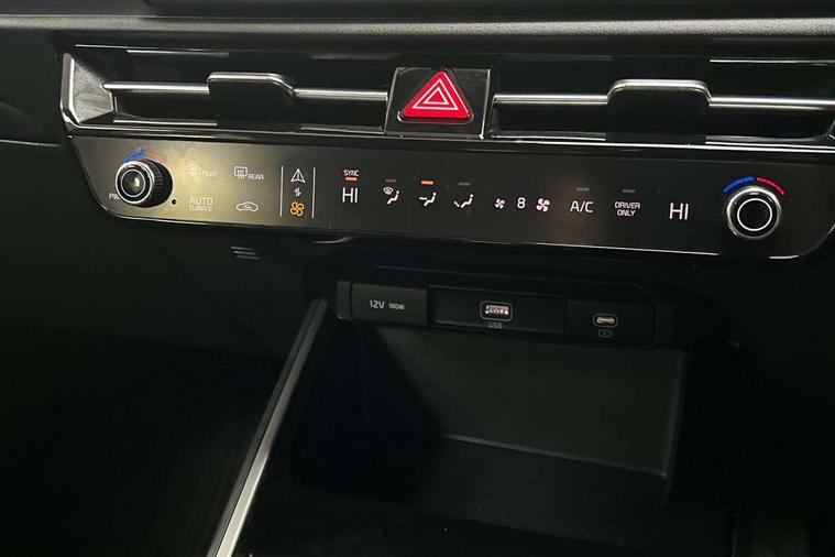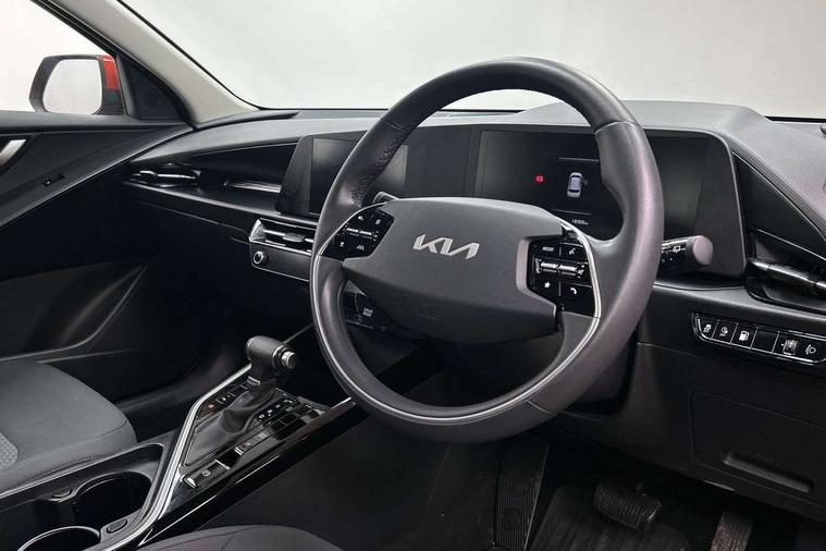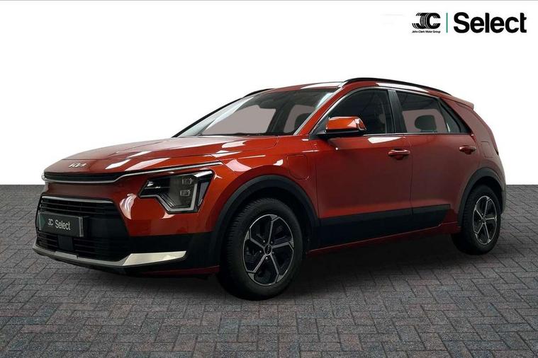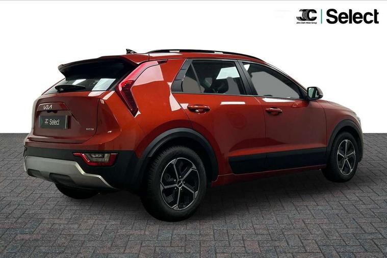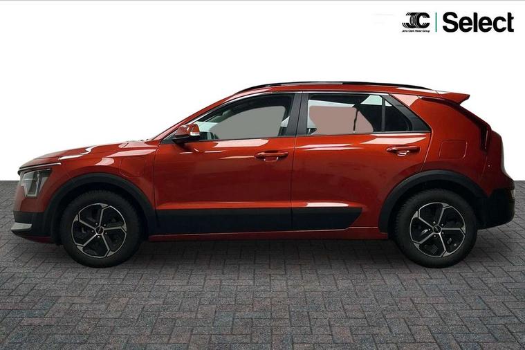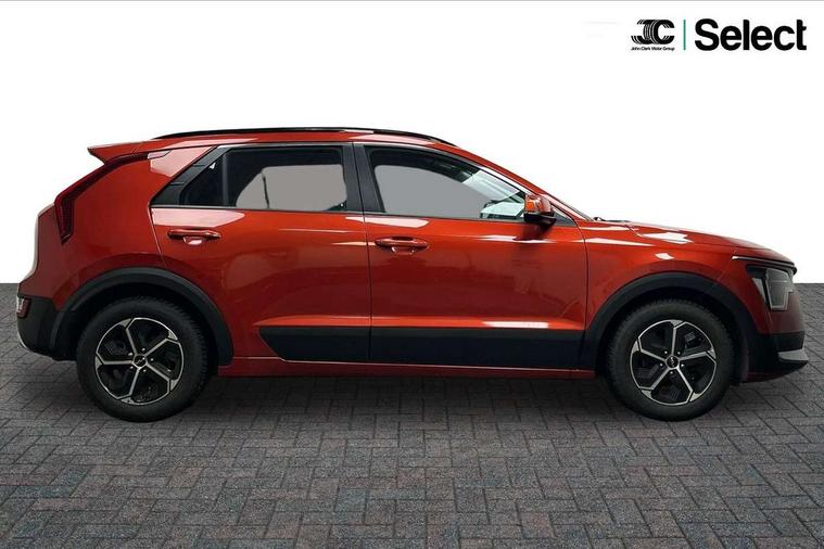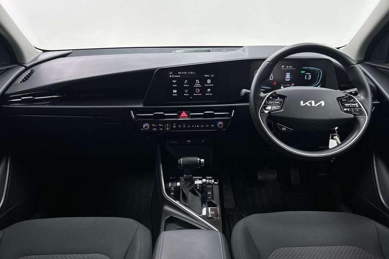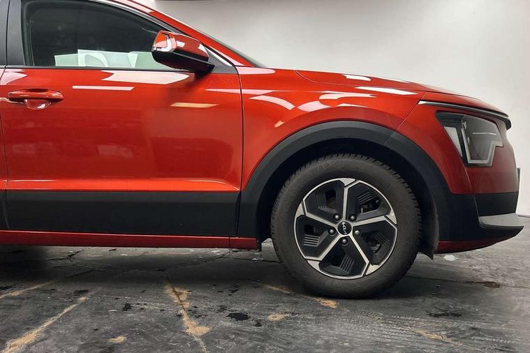 4.2" supervision colour cluster display, 8" touch screen, Adaptive smart cruise control function (SCC) with stop and go, Apple car play/Android Auto with voice control, Drive mode select (Eco, sport), E-call, Emergency stop signalling system, Forward Collision-Avoidance Assist (FCA) 1.5 - City/Pedestrian/Cyclist/Junction turning, Lane Following Assist (LFA), Lane keep assist, Motor driven power steering, Rear parking sensors, Reversing camera with dynamic guide lines, Speed limit assist, Tailgate, Trip computer with distance/fuel consumption/average speed, Sports H-Matic Automatic, 'Shark fin' mobile antenna, 2 type C USB ports on front seats, 2 USB ports in centre console including 1 type C, 6 speakers, Bluetooth with music streaming, DAB Digital radio, Steering wheel mounted controls, Acoustic windshield, All round electric windows with drivers auto up/down function, Auto dimming rear view mirror, Automatic defog system, Automatic headlight control system, Black beltline mouldings, Black embossed cladding, Body colour bumpers, Body colour door mirrors, Body colour exterior door handles, Dual LED headlights (low and high projection), Electric heated door mirrors, Front and rear silver skid plates, Heated rear window with timer, LED daytime running lights, LED rear combination lights, LED third brake light, Manual folding door mirrors, Rain sensor, Rear fog lights, Rear side wing doors, Rear spoiler, Rear wiper, Roof rails, Solar glass rear windows and tailgate, Solar glass windscreen, Welcome and follow-me home light functionality, Windscreen Washer Level Warning, 12V socket in front, 12V socket in luggage compartment, 3 seat bench in 2nd row, 60/40 split/folding 2nd row of seats, All-round height adjustable headrests, Artificial leather centre console storage box, Artificial leather steering wheel, Bulb overhead console, 2nd row and luggage lamp, Centre console cupholder, Cloth upholstery, Driver seat manual adjustment, Driver/passenger sunvisors with illuminated vanity mirrors, Dual zone automatic air conditioning, Front and rear door storage, H-Matic gear selection, Illuminated glovebox, Interior door lock/unlock function, ISOFIX Child seat top tethers and anchor fixings, Luggage area load cover, Luggage board, Metal paint interior door handles, Passenger seat height adjuster, Rear armrest, Single front passenger seat, Tilt/telescopic adjustable steering wheel, Towing pack - Niro, 3 point seatbelts on all seats, ABS, Automatic unlocking of doors in case of impact, Centre side front airbags, Curtain and side airbags, Drivers knee airbag, Dual shell horn, Electric parking brake with auto hold function, Electronic stability control, Front passenger airbag deactivation, Height adjustable front seatbelts, Hill start assist control (HAC), Manual rear child locks, Rear seat alert system, Traction control, Tyre pressure monitoring system, Alarm system and engine immobiliser, Deadlocks, Locking wheel nuts, Remote central door locking with fold away key, Visible vehicle identification number, Warranty - 7 Years/ 100, 000 miles, Graphite paint centre fascia, 16" alloy wheels, Tyre mobility kit,