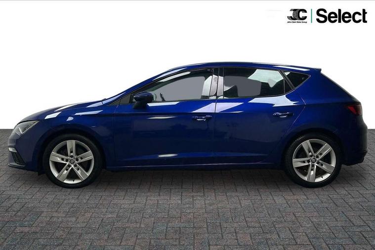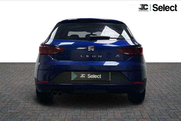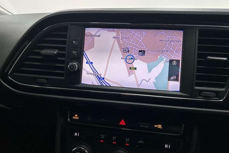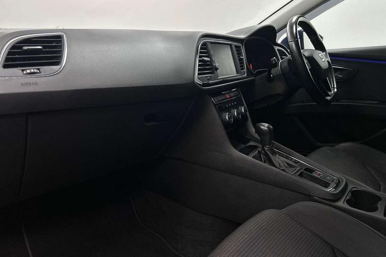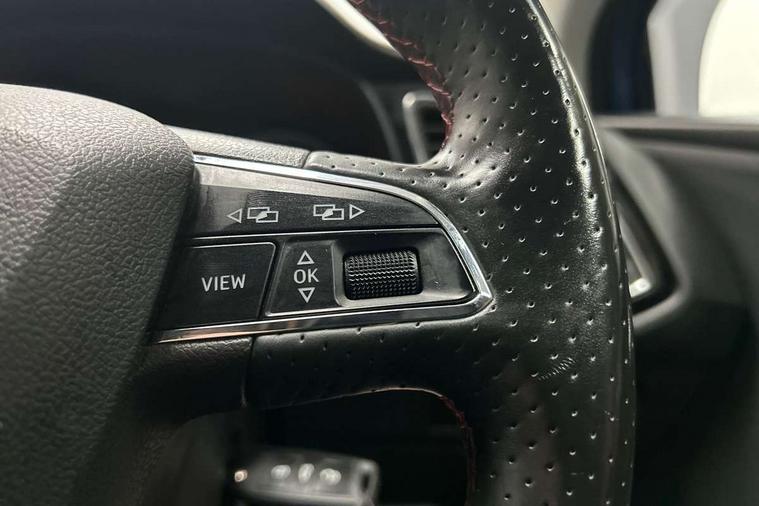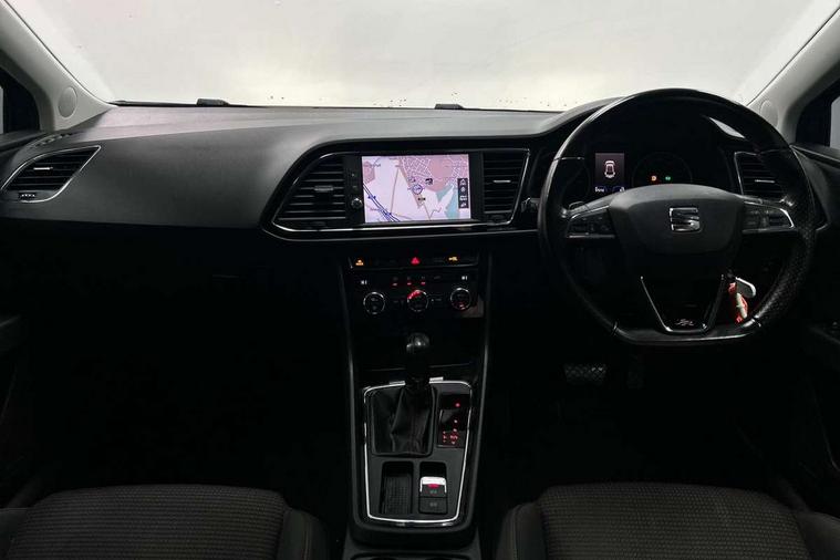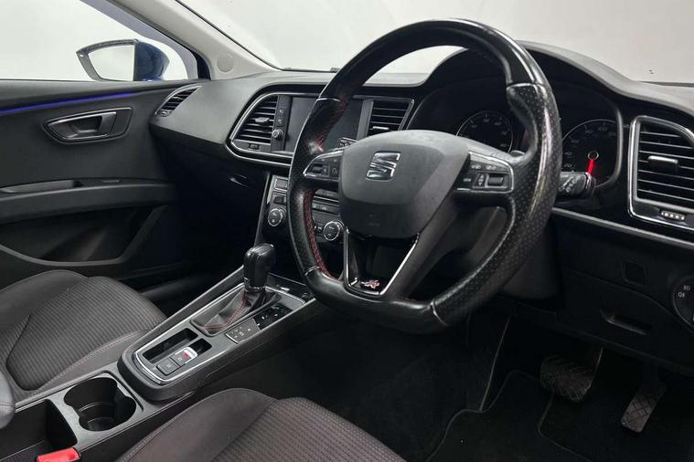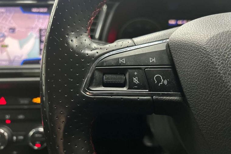 'Lights On' Reminder warning buzzer, 3D map display, 8" touch screen, Bluetooth Handsfree Phone Connection, Cruise control, Electro-mechanical power steering, Front and rear parking sensors, Front assist with pedestrian protection, Full Link Smartphone Integration with Mirror Link, Apple Car Play, Google Android Auto, Low fuel warning light, Navigation system (incl. media system plus), Outside temperature gauge, RPM counter, SEAT Drive profile, SEAT logo boot release, Service interval indicator, Trip computer, Voice recognition, Lowered sports suspension, XDS electronic differential lock, 2x SD card slot, 4 USB, 8 Speakers, Auxiliary input socket, Bluetooth audio streaming, CD player, DAB Digital radio, High resolution colour driver display, Media system plus (incl. media system colour), SEAT USB media cable, Steering wheel mounted audio/phone controls, Aluminium front door sills, Black radiator grille, Body colour door handles, Body coloured bumpers, Body coloured exterior mirrors with integrated LED indicators, Chrome-plated radiator grille surround, Dark tinted rear windows, Electric front/rear windows, Electrically adjustable door mirrors, Electrically foldable exterior mirrors with parking position and passenger-side mirror with lowering function, Exclusive FR front and rear bumpers, Heated door mirrors, High gloss black finish B and C pillars, Illuminated aluminium front door sill with FR logo, LED front fog lights, LED headlights with LED day time running lights + LED rear lights + LED number plate lights, Rear wash/wipe, Visible twin exhaust tailpipes, 12v power point in centre console, 60/40 split folding rear seat, Active front headrests and 3 rear headrests, Additional heating and ventilation outlet in rear of centre console, Boot storage net, Cargo rings in boot, Driver and passenger seat height adjust, Driver seat lumbar adjustment, Dual zone climate control, Dust/pollen filter, Flat bottomed perforated leather steering wheel with red stitching and FR logo, Front adjustable head restraints, Front armrest with storage box, Front cupholders x 2, Front seatback storage pockets, Front sport seats in Techny cloth, Front/rear floor mats, Gear shift indicator, Height/reach adjust steering wheel, High centre console with integrated box & cup holder, rear air outlet, with armrest in front seats, Illuminated door sills, Instrument lighting with brightness control, Luggage tie-down hooks, Multi-colour ambient interior lighting, Passenger seat lumbar adjust, Rear top tether child seat ISOFIX attachment, Steering wheel gearshift paddles, Storage box under drivers seat, 3 point seatbelts on all rear seats, 7 airbags - 2 front, 2 front side, 2 curtain, 1 knee, ABS + TCS, Child proof door locks, Electric handbrake, Electronic parking brake with auto hold, ESC with tyre pressure warning indicator, ESP+EBA, Front seatbelt pretensioners, Front seatbelt reminder, Hill hold control, Manual passenger airbag deactivation function, Multi-Collision braking, 2 folding remote keys with window open/close function and boot opening/door mirror folding function, Central locking fuel filler cap, Engine immobiliser, Locking wheel bolts, Remote central locking + deadlocks, Volumetric alarm with back up horn, Chrome interior detailing, 17" Dynamic alloy wheels 30/2,