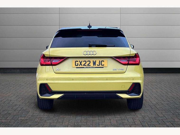 10.25" Digital instrument cluster display classis style instrument dials + speed, odometer, time, outside temperature, telephone menu + fuel level warning, Audi connect safety emergency and service including E-call, Audi smartphone interface with connect compatible smartphone via USB directly MMI display + Nav, music, third party apps controlled via MMI controller, Automatic start/stop system, Bluetooth interface, Cruise control, Driver's information system, Electromechanical power steering, Emergency services call system, Lane departure warning system, Service interval indicator, Speed limiter, Voice control system, Washer fluid level indicator, Sports suspension, 1 x SDXC card reader, 2 x USB type C connection points, DAB Digital radio, MMI radio plus with 8.8" colour MMI display screen and MMI touch, Auto dimming rear view mirror, Black door mirrors, Black side skirts, Body coloured bumpers, Door sill trims with aluminium inlays and logo, Electric front and rear windows, Electrically adjustable, heated, folding door mirrors with integrated LED side indicator, Front side air inlets in grained matt black and C frame in titanium black, Heat insulating glass windscreen and side windows, Heated rear windscreen, High level LED brake light, LED headlights with LED rear lights + dynamic rear indicators + headlight adjustment and high beam, turning light + LED daytime running lights, Radiator protective grille frame in matt aluminium silver, Rain and light sensors, Rear diffuser strip in matt titanium black, Rear fog lights, Rear side wing doors, Rear wing door, Rear wiper, Side front spoiler lips in grained matt black, 12V socket in centre console with two cup holders, 3 rear seats with headrests, 3 seat bench in 2nd row, 3 spoke flat bottomed multi-function plus leather steering wheel with S badging, grips in preforated leather, contrast stitching and paddle shift, 40:60 Split folding rear seat or folded fully, Black cloth headlining, Driver and passenger seat with manual height adjust with forward and backwards adjustment, Front and rear black floor mats with contrast stitching in fine silver, Front head restraints, Front passenger seat, Height and reach adjustable steering wheel, ISOFIX child seat mounting for front passenger and outer rear seats including top tether attachment point of outer rear seats, Leather gear knob with aluminium trim, Luggage compartment light with front and rear reading lights, Manually adjustable lumbar support in front seats, Stainless steel pedals, Black styling pack - A1 Sportback Black Edition, LED interior lighting pack - A1, Luggage compartment pack - A1, 3x3 point rear seatbelts, Audi pre-sense front with pedestrain and cyclist recognition, Brake assist function, Driver and front passenger airbag with front side and head airbags, Electronic Stability Control including ABS, EBD, ASR and EDL, Front passenger airbag deactivation switch, Hill hold assist, Manual rear child locks, Seatbelt height adjustment for front seats, Seatbelt monitoring, Tyre pressure warning light, Warning triangle and first aid kit, Anti theft alarm, Anti theft wheel bolts and loose wheel warning, Immobiliser, Remote central locking with 2 foldaway keys, Aluminium trim for control switches, air vents and digital instrument cluster, Silver grey inlays polygon structure in diamond paint finish, Structured grey accent areas including air vents, door handle recesses and centre console in quartz paint finish, 18" 7 spoke rotor design alloy wheels in gloss anthracite black, diamond cut finish,