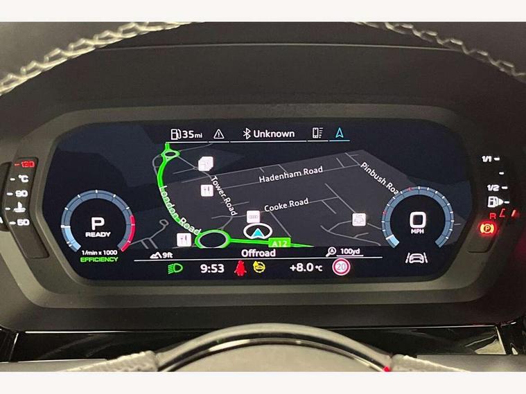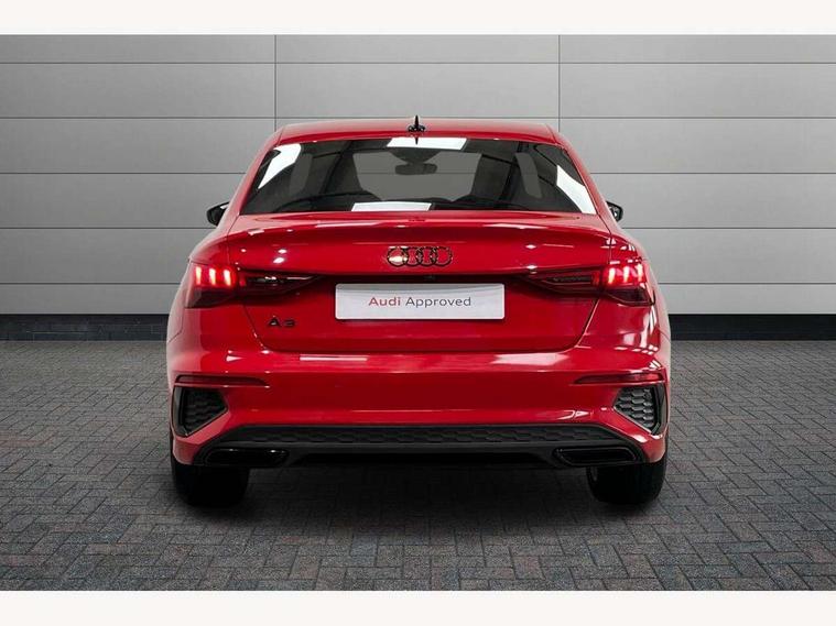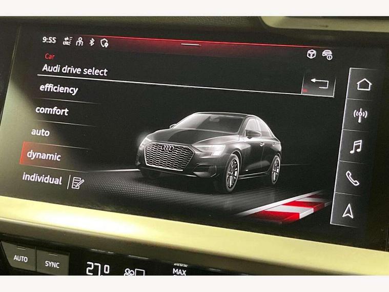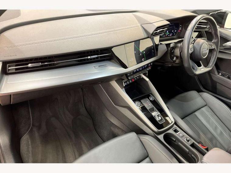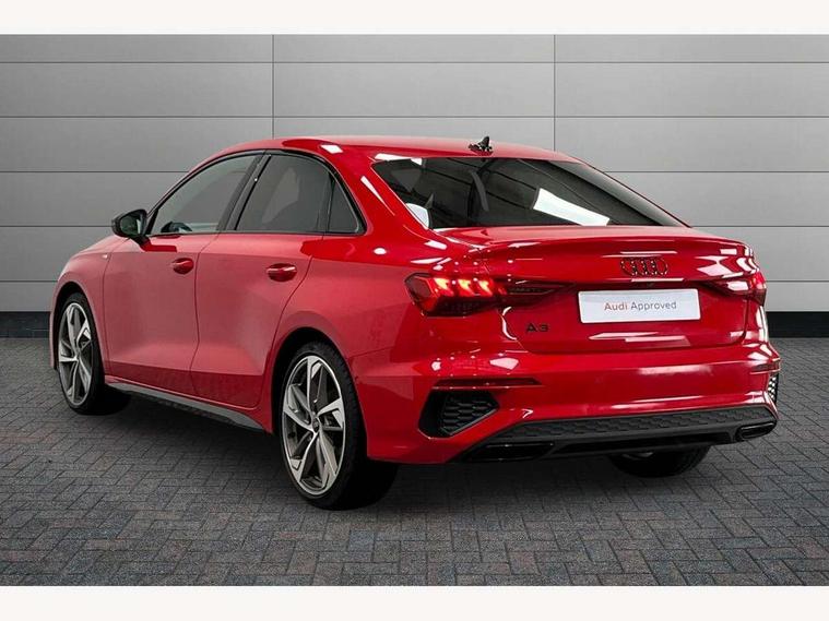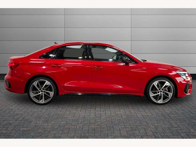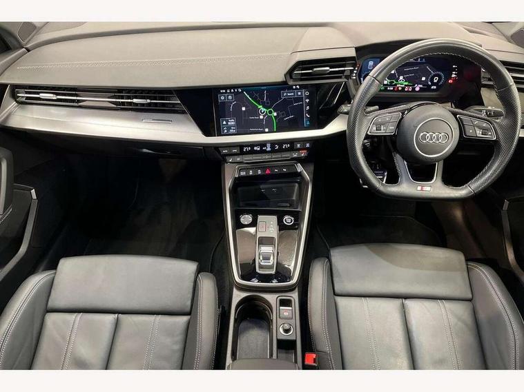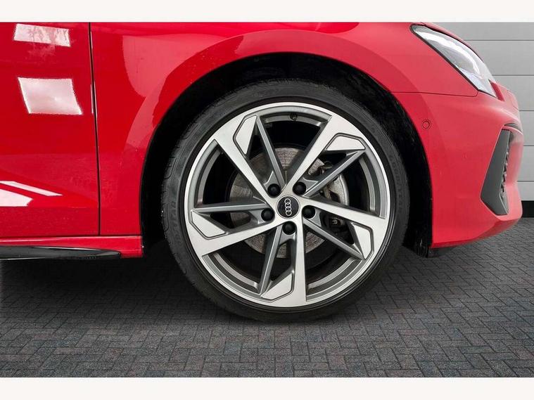 Audi drive select (Auto, Comfort, Dynamic, Efficiency and Individual), Audi smartphone interface, Audi Virtual Cockpit - 10.25" digital and colour instrument cluster, Automatic start/stop system with recuperation, Bluetooth interface, Camera based traffic sign recognition, Collision avoidance assistant, e-Call (emergency call), Electromechanical power speed sensitive steering, Lane departure warning system, MMI Navigation Plus with high resolution 10.1" colour touch screen display, Service indicator, Trip computer, Voice control system with natural language interaction, Sports suspension, 2xUSB-C connection with data and charging functions, 6 passive loudspeakers, CD player, DAB Digital radio, 3rd brake light, Acoustic glass windscreen, Audi beam uses LEDs to project the Audi logo onto the ground as you exit your A3, Auto dimming frameless rear view mirror, Electrically adjustable/heated/folding/auto dimming door mirrors with integrated LED indications + kerb view function for passenger side, Front electric windows, Illuminated door sills with aluminium inserts at the front with S logo, LED daytime running lights, LED headlights with LED rear lights and dynamic rear indicators, Light and rain sensors, Model and engine designation badges at rear, Privacy glass - dark tinted rear window, rear door and side windows, Rear boot, Rear electric windows, Rear side wing doors, S roof spoiler, 12V socket and storage compartment in front centre console, 3 seat bench in 2nd row, 3 spoke flat bottomed leather multifunction sport steering wheel with gear shift paddles, 4 way electrically adjustable lumbar support for driver and front passenger, 60/40 split folding rear seat bench, Black cloth headlining, Dual zone electronic climate control, Front and rear centre armrest in artificial leather, Front and rear headrests, Front/rear floor mats, Height and reach adjustable steering wheel, Interior lighting - glove compartment light and right hand side, Luggage compartment floor covering, Manual boot compartment lid, Single front passenger seat, Stainless steel pedals and front footrest in black, Twin leather upholstery with front sports seats S embossed logo, Aluminium interior elements pack - A3, Black styling pack - A3 Saloon/Black edition, LED interior lighting pack - A3 Saloon, 3x3 point rear seat belts, Driver and front passenger airbag with passenger airbag deactivation, Electronic Stabilisation Control (ESC) including ABS, ASR and EDL, First aid kit with warning triangle and 2 safety vests, Front side airbags with head airbags and interaction airbag, Pre-sense front with pedestrian and cyclist detection, Seatbelt monitoring, Tyre pressure loss indicator, Anti theft alarm, Anti-theft wheel bolts, Electronically operated child locks, Immobiliser, Remote control central locking, Aluminium air vent surrounds, Dark spectrum aluminium inlays, accent surfaces in the dashboard and centre console in platinum grey silk effect paint finish, 19" 5 arm trapezoid design alloy wheels in matt grey with diamond cut finish,