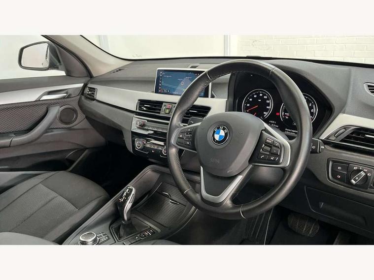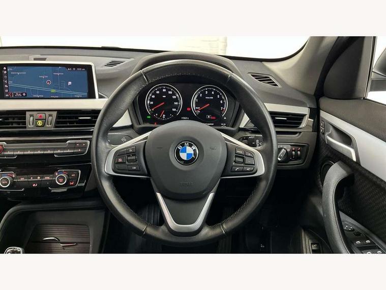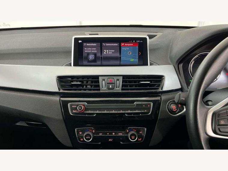 Active Guard incl speed limiting and lane departure functions with auto steering, and front collision warning with brake intervention, Ambient temperature display, Apple CarPlay, Arrow pointers, north up, direction of travel and perspective map displays, Attentiveness assist, Automatic tailgate opening, BMW ConnectedDrive, BMW Online services, BMW remote services, BMW Teleservices, Brake pad wear indicator in front and rear, Characteristic map controlled oil pump system, Cruise control with brake assist, Front axle single joint with specific axle kinematics to minimise drive influences on steering + provide increased rigidity agile driving behaviour, Front/rear park distance control (PDC), Instrument cluster with Black optic display featuring superimposed dials and 5.7" colour display, Instrument cluster with speedometer with miles per hour read out, tachometer and fuel gauge, Integrated hard drive with map data updates via USB interface, Lights on warning by audio warning signal when ignition is switched off, On board computer, Operation by iDrive with direct selection buttons and 8 programmable buttons, Optimum shift indicator, Outside temperature gauge, Park assist system, Personal Profile - automatic lock when driving away selectable, Real time traffic information, Rigidly mounted rear subframe - Multi link construction with separate spring / damper configuration and excellent driving characteristics, Service interval indicator, Servotronic PAS, Tyre puncture warning system, 12V compressor with integrated sealant injection bottle and hose, Aluminium lightweight construction including crankcase, Anti-roll bars, Balancer shaft, Double VANOS, Drive performance control with ECO PRO comfort + sport mode, High precision injection, Performance Control, Seven speed dual clutch automatic transmission (DCT), Standard suspension, Stop/start function, Turbocharger with Valvetronic, Twin tube gas filled shock absorbers with degressive characteristic curve, BMW professional radio includes amplifier power 100w, Two mide range speakers in door trims and two woofers as central bass speaker under front seats, DAB Digital radio, Adjustable headlights, Aero curtain, Automatically dimming rear view mirror, Black roof rails, BMW Icon design LED daytime driving lights, Body colour bumpers, Body colour door handles, Body colour door mirrors, Direction indicator side lights integrated exterior mirrors, Dynamic brake lights, Electric windows - front and rear, with open/close fingertip control, anti-trap facility and comfort closing, Electrically adjustable door mirrors with aspheric on driver side, convex on passenger side with integrated indicators, Follow me home headlights, Front air guide finished in black silver, Front and rear bumper system, Green tinted heat protection glazing glass, Headlight beam throw control, Heated door mirrors, Heated windscreen washer jets, High level third brake light, Kidney grille with 14 chrome black vertical bars, LED direction indicator lights in headlight eyebrow, LED front fog lights, Lightweight engineering, Model designation, Rain sensor including auto headlights activation, Rear fog lights, Rear window aerial, Rear window wash/wipe, Reversing light in rear light cluster, Roof mouldings in matt black, Shark fin antenna, Sill cover finished matt black, Single chrome exhaust tailpipe, Two eye face design on light, Visible VIN plate, Welcome lighting, 12v power point in centre console, 2 cup holders in front, 3 rear headrests, 3 spoke sport leather steering wheel, 40:20:40 split folding rear bench seat, Black door sill finishers with BMW designation, Boot light, Centre armrest in 20 degree part rear seat backrest, Child seat ISOFIX attachment for two outer rear seats and front passenger seat with anchorage points, Conditioned based service, Driver/front passenger seat backrest back with luggage net, Dual zone automatic air conditioning, Four grab handles integrated in roof linings, Front and rear side armrests integrated into door trim, Front centre armrest/sliding cover, Front centre interior light over interior mirror and rear centre automatic interior light when door is opened/ignition switched off or via remote key, Front standard seats, Front/rear adjustable head restraints, Illuminated glovebox, Leather gearknob/gaiter/handbrake grip, Luggage area underfloor compartment, Luggage compartment access via recessed handle below tailgate, Luggage compartment lighting, Manually adjustment steering wheel column, Multifunction steering wheel, Rear coded belt buckles, Standing free front adjustable armrest and fixed in different positions, Steering wheel gearshift paddles, Velour floor carpets, Extended storage package - X1, ABS/EBD, Audio/visual collision warning system, Automatic Stability Control (ASC), Battery safety cut-off, BMW emergency call, Brake drying, Brake energy regeneration, Braking readiness, Collision mitigation braking system, Cornering brake control (CBC), Crash Sensor - activates hazard/interior lighting + unlocks doors, Driver/Front Passenger airbags, Driver/front passenger side airbags, Dynamic brake control, Dynamic stability control + (DSC+), Dynamic Traction Control - DTC, Electronic differential lock control (EDLC), Electronic parking brake, Front and rear head airbags, Front passenger airbag deactivation, Front seatbelt force limiters, Front ventilated disc brakes, Hill start assist, Pyrotechnically pre-tensioned front seatbelts, Rear disc brakes, Rear door child safety locks, Seatbelt security check for driver and front passenger, Side impact protection, Three point seat belts in all seats, Twin horns, Tyre pressure monitor, Warning triangle and first aid kit, Central locking switch for all doors, fuel filler cap and luggage compartment, Check control system for monitoring of lights and door/luggage compartment open warning, Engine immobiliser, Locking wheel bolts, Remote control Thatcham category 1 alarm, Remote control with integrated two key, St