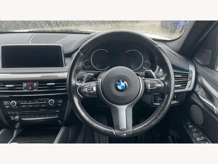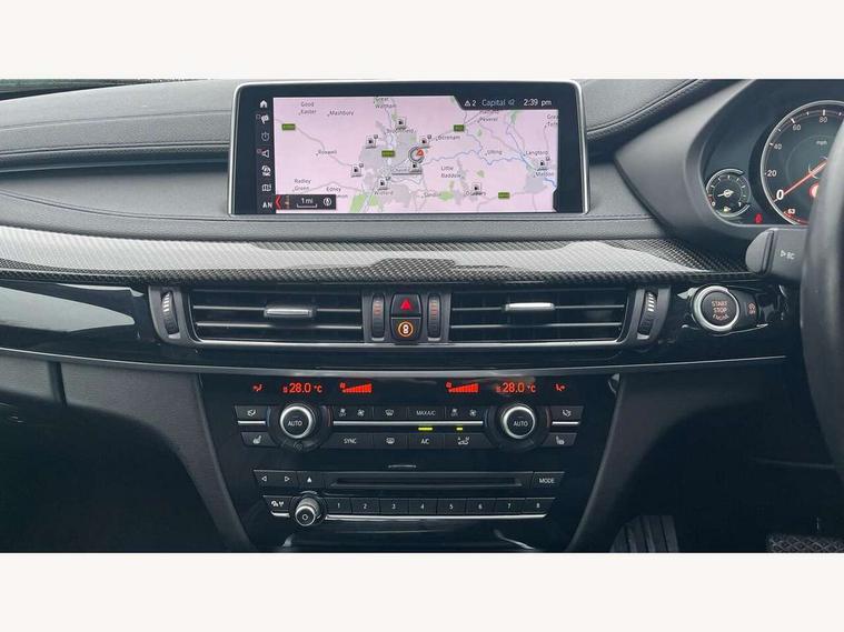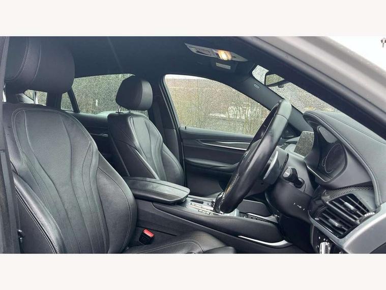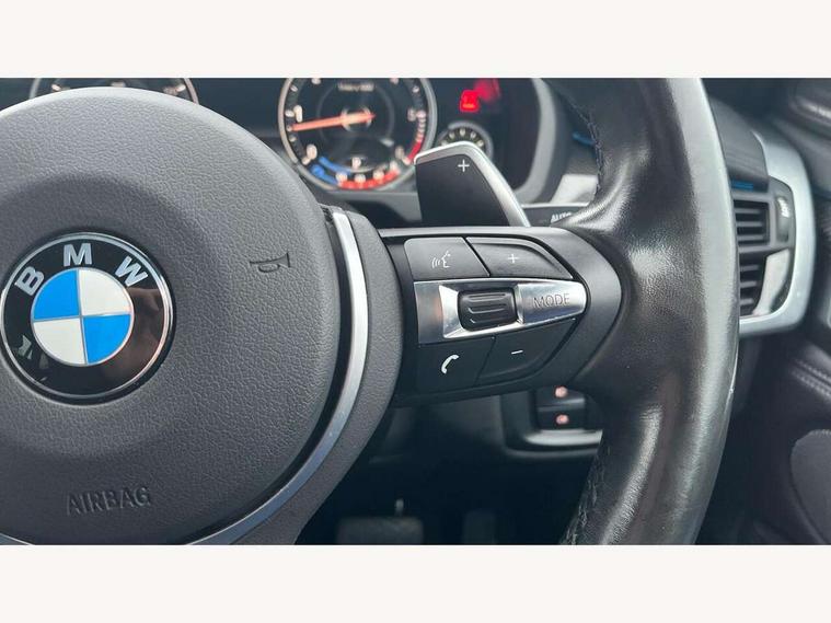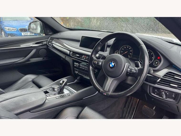 20GB Hard drive, 6.5" colour display screen, BMW apps interface, BMW information plus, BMW remote services, BMW Teleservices, Brake force display, Check control system, Digital cockpit, Electric tailgate release, Front/rear park distance control, Head up Display, Lights on warning, On board computer, Outside temperature gauge, Personal Profile, Professional multimedia navigation system, Service interval indicator, Servotronic PAS, Stop/start button, Voice control system, Diesel particulate filter, Auxiliary point for auxiliary devices, BMW professional twin tuner radio with single CD player and MP3 CD playback facility, DAB Digital radio, Auto dimming and folding door mirrors, Auto dimming rear view mirror, Body colour bumpers, Body colour door handles, Body colour door mirrors, Chrome exhaust tailpipes, Clear indicator lenses, Door mirror integrated indicators, Double kidney grille with high gloss black surround and black slats, Downlights in exterior door handles, Electric + heated aspheric door mirrors, Electric front/rear windows with anti-trap, Electric headlight adjustment, Follow me home headlights, Green tinted glass, Headlight washer jets, Heat insulated glass, Heated washer nozzles, High gloss black air breather, M aerodynamic body kit, Metallic paint, Rain sensor with auto light activation system, Stainless steel sill finishers, Sun protection glass, Xenon headlights, 12V accessory power point in centre console, 12v socket in front centre armrest storage compartment, 12V socket in luggage compartment, 2 x 12V socket in rear centre console, 3 spoke sports leather multi-function steering wheel with gear shift paddles, 40:20:40 split folding rear seats, Ambient interior lighting, Anthracite Velour floor mats, Boot lashing points, Door sills with M logo, Driver and passenger knee pads, Electric front seats + driver memory, Front and rear cupholders, Front armrest with storage bin, Front reading lights, Front/rear courtesy lights with soft on/off dimming, Full black panel display, Heated front seats, Height adj rear head restraints, Illuminated glovebox with lock, Isofix child seat preparation, LED footwell lights, Luggage compartment cover, removable, Reach + rake adjustable steering column, Storage bins on all doors, Sunvisors with illuminated vanity mirrors, Tilt/height adjustable front head restraints, Toolkit located in luggage compartment, Extended storage pack - X6, 3 rear 3 point seatbelts, ABS, ADB - Automatic Differential Brake, Automatic Stability Control (ASC), BMW emergency call, Brake energy regeneration, Child locks on rear doors, Cornering brake control (CBC), Crash Sensor - activates hazard/interior lighting + unlocks doors, Driver/Front Passenger airbags, DSC+, Dynamic brake control, Dynamic Traction Control - DTC, Electronic brake force distribution, Electronic parking brake, Front and rear head airbags, Front passenger airbag deactivation, Front passenger seat occupancy sensor, Front side airbags, Height adjustable front seatbelts, Hill descent control, Hill start assist, Pyrotechnically pre-tensioned front seatbelts, Seat belt force limiter, Side impact protection, Tyre pressure monitor, Warning triangle and first aid kit, Locking wheel nuts, Remote central locking, Thatcham cat 1 remote alarm/immobiliser, 21" M Double spoke light alloy wheel - style 599M, Run flat tyres,