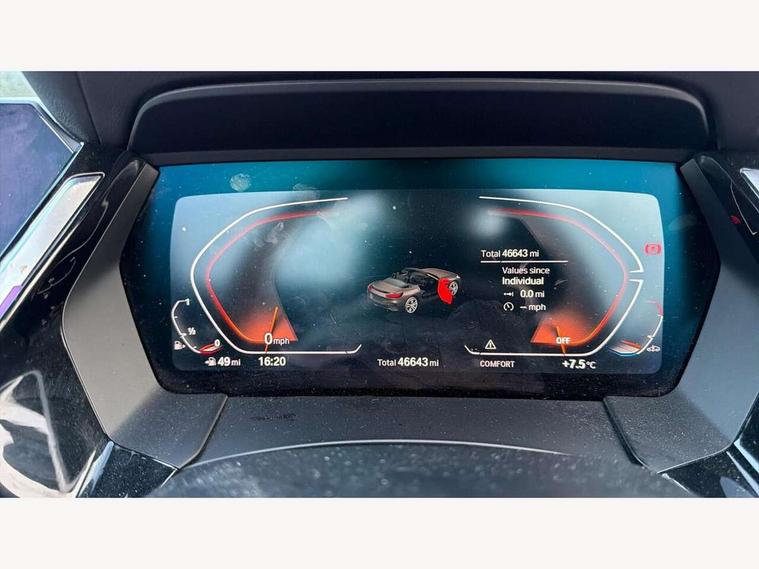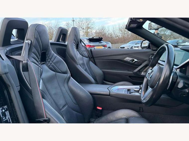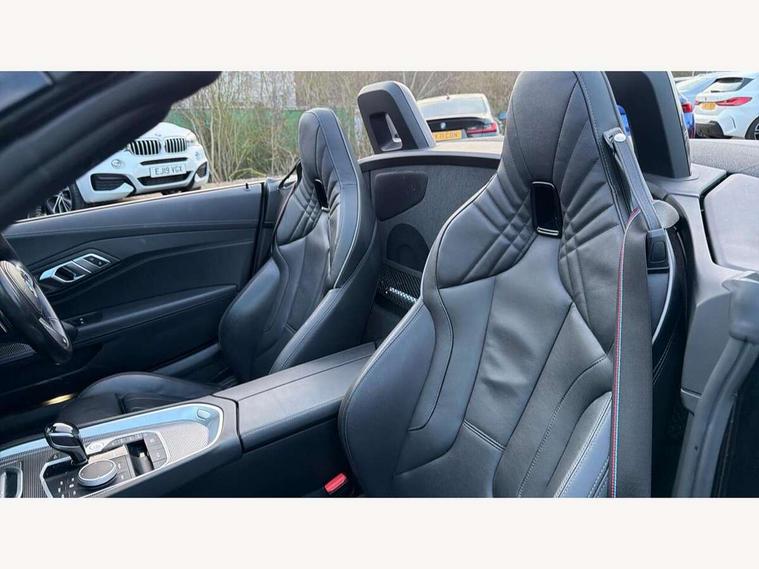 Active Guard, Auto start-stop, Bluetooth hands free telephone connection with USB audio interface + audio streaming, BMW ConnectedDrive online services, BMW Live Cockpit Professional with 10.25" high resolution instrument and control display, BMW Teleservices, Electric power steering, Fuel gauge, Instrument cluster, Oil sensor for level and grade, warning by check control system, Oil temperature gauge, Optimum shift indicator, Pull away assistant, Run flat indicator, Speedometer with mph readout, Tachometer, Variable sport steering, Double joint spring, Double VANOS, Drive performance control with ECO PRO comfort + sport mode, Eight speed steptronic sport transmission, with gearshift paddles, Electronic differential lock, Fuel tank breather system, High precision injection, M sport suspension, HiFi loudspeaker system, USB connection, Automatic headlight beam throw control with load dependent regulating reaction, dynamic compensation of braking dive and acceleration squat, Door sill finishers with M designation, Door sill strips, Dynamic braking lights comprising activated hazard warning flashers and third brake lights, Electric heated rear window, Exhaust tailpipe - split left and right, Exterior mirror housing finished in body colour, Exterior mirrors - electrically folding with anti-dazzle, Fingertip control / anti-trap function on electric window, Follow me home headlight function, Front and rear bumper system with replaceable deformation elements, Green tinted heat protection glazing, Heated windscreen washer jets, High gloss shadow line, Interior rear view electrochromatic mirror with automatic anti dazzle function, Kidney grille in mesh design, LED daytime driving lights, LED Indicators, LED rear lights, Lightweight engineering, M aerodynamic body kit, M Sport exterior styling, Matt black window recess finisher, Model logo, Tailgate release handle, Two stage brake force display, Visible VIN plate, Welcome lighting, Windscreen wipers with adjustable interval, 12V power socket in front storage compartment, Activation of interior lighting, Additional storage compartment - 4 lashing eyes, strap and storage net, Ambient lighting, Battery in luggage compartment, Child seat ISOFIX attachments for passenger seat, Cupholder, Driver and front passenger heated seats, Front and rear velour floor mats, Front headrests, Height adjustable mechanically and infinitely variable steering column, M sport leather steering wheel, M Sport seats for driver and passenger, Microfilter and active carbon filter, Sunvisors with vanity mirrors, Two zone automatic air conditioning, Vernasca leather upholstery, Connected package professional - Z4, 3 point front seat belts, Airbags - Front driver and passenger, front and side impact protection, Anti lock braking system (ABS) with brake assist, Automatic Stability Control (ASC), BMW emergency call, Brake energy regeneration, Braking readiness, Cornering brake control (CBC), Crash sensor activating central locking release, hazard warning lights, fuel cut off, interior lighting, safety battery terminal clamp and airbags, Deactivation of fuel pump in the event of a crash, Dry braking, Dynamic brake control, Dynamic stability control + (DSC+), Dynamic Traction Control - DTC, Electromechanical parking brake with automatic drive away release and auto hold function, Front and rear brake discs with interior ventilation, M Sport brakes with blue calipers M designation in front, Plastic fuel tank, Pyrotechnic seat belt tensioners, Roll over protection, Seat belt force limiter, Seat belt stopper, Seat occupancy protection, Two tone horn, Tyre pressure monitoring with three level warning strategy, Centre lock switch, Closing system with central locking, Electronic vehicle immobiliser, Start/stop button with Comfort Go keyless engine start and auto Start/stop deactivation button, Thatcham cat 1 remote alarm, Sensatec dashboard, 18" Double spoke M light alloy wheels in bicolour ferric grey - style 798M, Reduced rolling resistance tyres, Tyre repair kit,