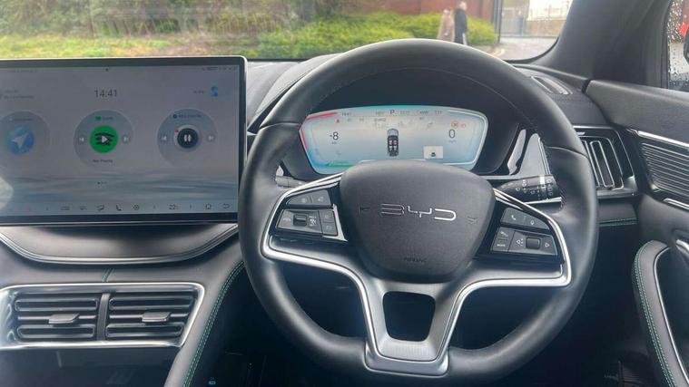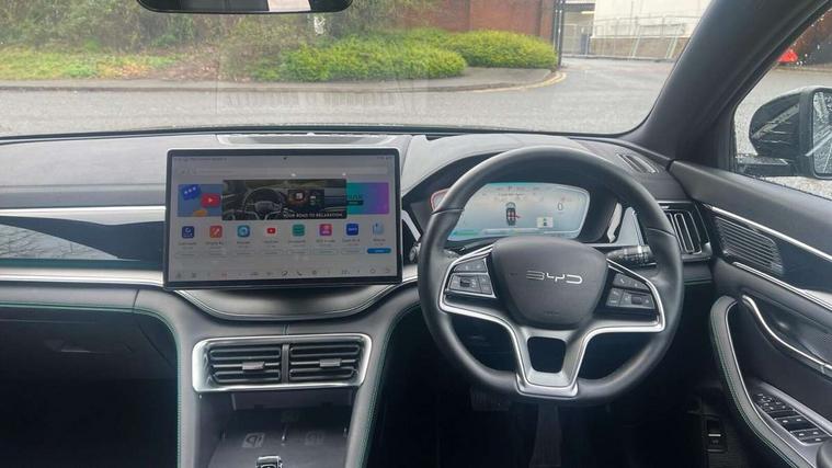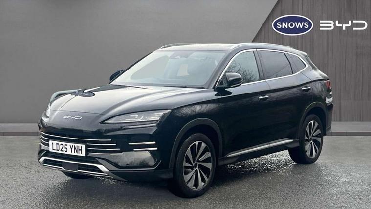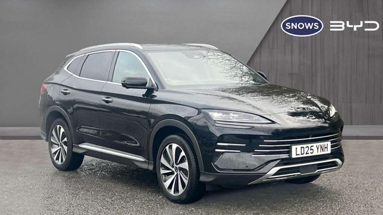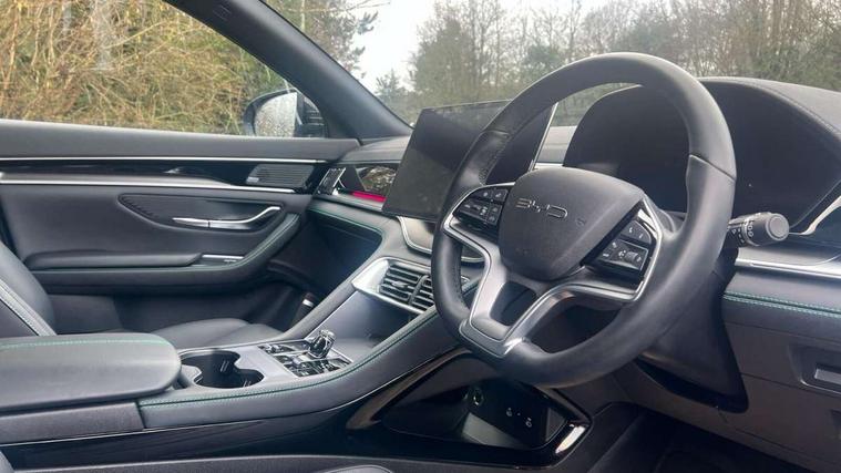 12.3" TFT full LCD instrument panel, 360 camera, Adaptive Cruise Control (ACC) and Intelligent Cruise Control (ICC), Automatic vehicle hold, Blind spot detection, BYD voice control assistant "Hi, BYD", Controller Deceleration Parking (CDP), Drive mode select (Eco, normal, sport, snow), e-Call (emergency call), Electric tailgate release, Emergency Lane Keeping Assist (ELKA), Forward collision warning, Front and rear parking sensors, Front cross traffic alert and front cross traffic brake, Head up Display, Indirect driver fatigue management, Intelligent Speed Limit Control (ISLC), Keyless system entry and start, Lane change assist, Lane Departure Assistant (LDA) and Lane Departure Warning (LDW), Lane departure prevention, PAS, Predictive collision warning, Rear collision warning, Rear cross traffic alert and rear cross traffic brake, Rollover Control System (RMI), Smartphone wireless charging, 2 x 15W, Traffic sign recognition (TSR), Vehicle-to-Load (V2L) function, 11kW on board charger, Mode 3 Type 2 charging cable (3 phase), V2L (Vehicle to load) power strip - Type F, 15.6" Electrically rotatable touchscreen, FM/DAB+ radio, Front USB ports, 1 x 18W Type C, 1 x 60W Type C, Infinity sound system with 10 speakers, Rear USB ports, 2 x 18W Type C, Aluminium roof rails, Auto dimming interior rear view mirror, Auto headlamps (on/off), Dynamic welcome lights, Electric folding and heated door mirrors, Emergency tow hook, Exterior mirror footlights, Follow me home headlights (The headlights turned on in advance and delayed off function), Front windscreen, UV protection, thermal insulation and sound proofing, High beam assist, LED 3rd brake light, LED daytime running lights, LED Headlights, LED taillights, One touch electric front/rear windows with pinch protection, Panoramic sunroof with anti-pinch sensor and electrically adjustable sunshade, Rain sensor windscreen wipers, Rear fog lights, Rear side wing doors, Rear window and rear windscreen with tinted glass, Rear wiper, 12V power outlet, 3 seat bench in 2nd row, 8 way electrically adjustable drivers seat, Adjustable rear headrests, Boot parcel shelf, Driver and passenger sunvisors with illuminated vanity mirrors, Driver seat memory function, Front centre armrest with 2 cupholders, Front LED reading lights, Front passenger seat with 4-way electric adjustment, Front seat footlights, Heat pump, Heated front seats, Heated steering wheel, Integrated headrest in front seats, ISOFIX and i-Size for front passenger and outer rear seats, LED front door lights, Nylon floor mats, PM2.5 air filter, PM2.5 air purification system, Rear air vents, Rear armrest with 2 cupholders, Rear side LED reading lights, Rhythm-reactive multi-colour ambient lighting, Single front passenger seat, Split folding rear seats - 40/60, Vegan leather multifunction steering wheel, Vegan leather upholstery, Ventilated front seats, 3x3 point rear seatbelts, ABS/EBD, Automatic emergency braking system, Brake override system (BOS), Child presence detection, Comfort stop, Door open warning, Driver airbag, Electric parking brake, Force limiting pre-tensioned front seat belts, Front centre airbag, Front passenger airbag, Front passenger airbag deactivation, Front side airbags, Hill descent control, Hill hold control, Hydraulic Brake Assist (HBA), Hydraulic brake boost, Mechanical child safety lock, Rear middle seat force limiting seat belt, Rear seat belt pretensioners, Reflective vest, Side curtain airbags, Traction control system (TCS), Tyre pressure monitoring system (TPMS), Vehicle Dynamics Control System (VDC), Warning triangle, 2 x Smart keys, Anti theft alarm system, Automatic door locking, 19" Bi-colour alloy wheels, Tyre nut covers remover, Tyre repair kit,