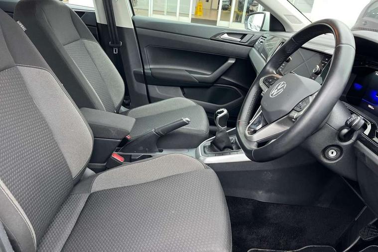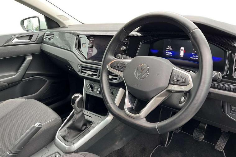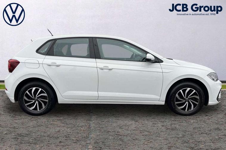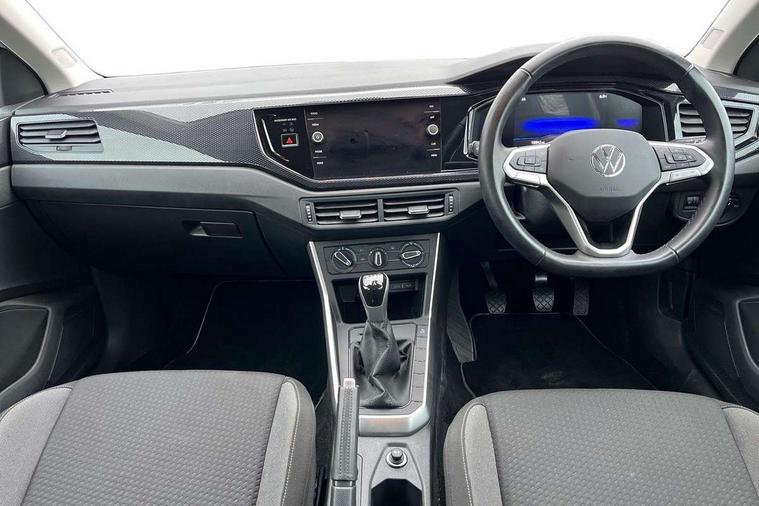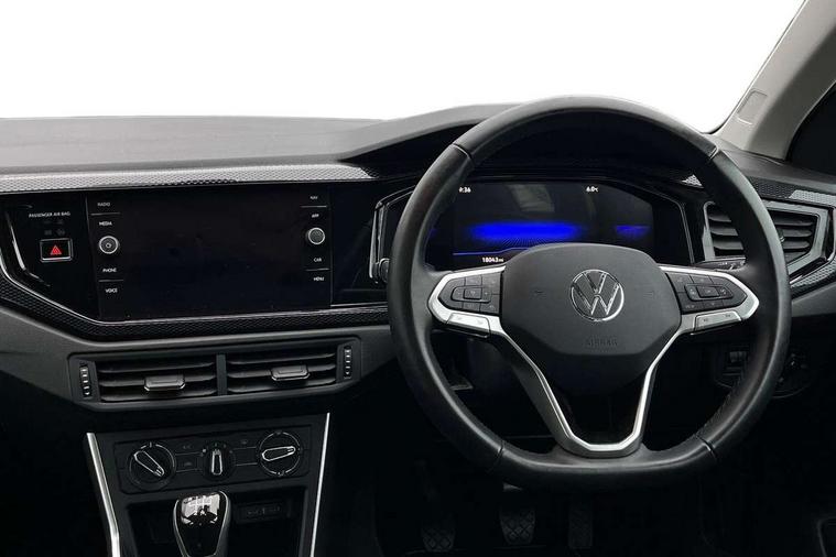 Adaptive cruise control without follow-to-stop and speed limiter, Advanced driver attention and drowsiness monitor, Bluetooth mobile phone interface, Dynamic road sign display, Emergency call service, Power assisted speed sensitive steering, Preparation for navigation system with media and internet package, Preparation for We connect and We connect plus, Speedo and rev counter, electronic odometer, trip, service interval display and exterior temperature gauge, Standard rear axle, Travel Assist - Lane keeping system and traffic jam assist, Travel assist including emergency assist, Trip computer, Warning signal and warning light for front and rear seatbelts not fastened, Washer fluid level indicator, Wireless app connect, Front wheel drive, Rear shock absorpion, Start-stop system with battery regeneration (recuperation - energy recovery during braking), DAB Digital radio, Diversity antenna for FM reception, Front and rear 6 speakers, Automatic dimming interior rear view mirror, Automatic headlight control with LED separate daytime running lights with coming/leaving home function, Body colour bumpers with chrome inserts, Body colour door handles, Body colour door mirrors, Electric front windows, Engine badge deletion, Headlight range adjustment, Heat insulating and laminated safety glass windshield, Heat insulating darkened glass in side and rear windows, Heat insulating glass windscreen, LED Headlights, LED rear combination lamps, Power folding adjustable/heated exterior mirrors and front passenger exterior mirror lowering function, Rain sensor, Rear electric windows, Rear fog light, Rear side wing doors, Rear windscreen washer and wiper with interval delay, Third brake light, 12V power socket in centre console, 2 front and 2 rear reading lights with switch off delay and dimmer, 2 USB-C ports in the front, 2 USB-C charging sockets on the center console in the rear, 3 rear head restraints, 60/40 split folding rear seat and rear seat bench not split, Ceramique roof lining, Chrome plated radiator grille inserts, air vent surrounds and light switch surrounds, Door and side trim panel, Driver and front passenger seat height adjustment, Driver/passenger sunvisors with illuminated vanity mirrors, Front centre armrest, Front seat backrest storage pockets, Front standard seats, Handbrake lever handle in leather, Hartley/Thomas cloth upholstery, Headliner in recycled material, Isofix child seat preparation easy-fit (for two outer rear seats, and front passenger seat) compatible with I-size, Leather trimmed gear knob, Luggage compartment cover, Luggage compartment lighting, Removable luggage compartment floor, Single front passenger seat, Standard climatic zones, Standard pedal cluster, Three spoke leather wrapped multifunction steering wheel, Light and vision pack - Polo, 3 point height adj front seatbelts + pretensioners, 3x3 point rear seatbelts, ABS, Driver and front passenger airbag with front passenger airbag deactivation, Drivers and front passengers safety optimised head restraints, ESC (Electronic stability control) + EDL (Electronic Differntial lock) and ASR (Traction control), Extended and predictive pedestrian/ cyclist protection, Front assist with autonomous emergency braking (for Adaptive Cruise Control ACC up to 130 mph), Front curtain and side airbags with center airbag, Front disc brakes, Hill hold control, Manual child lock in rear doors, Rear drum brakes, Single tone horn, Tyre pressure loss indicator, Alarm with interior protection, Anti-theft alarm system with interior monitoring, backup horn, and towing protection, Anti-theft wheel bolts, Electronic engine immobiliser, Lava stone black gloss/matt decorative inserts in dash and front door panels, Low rolling resistance tyres,