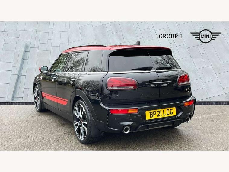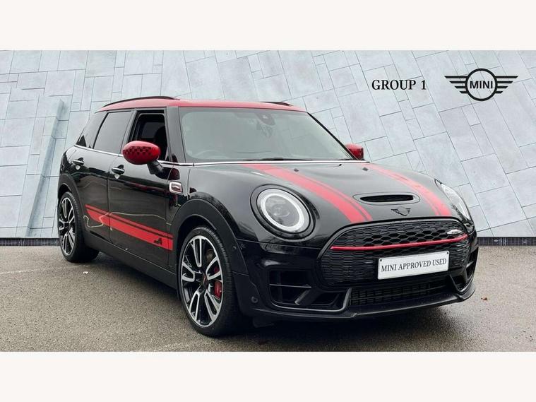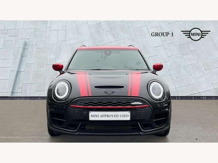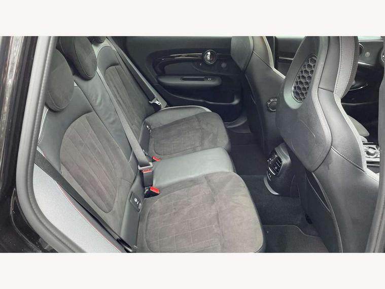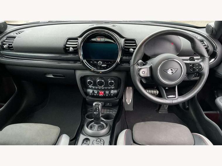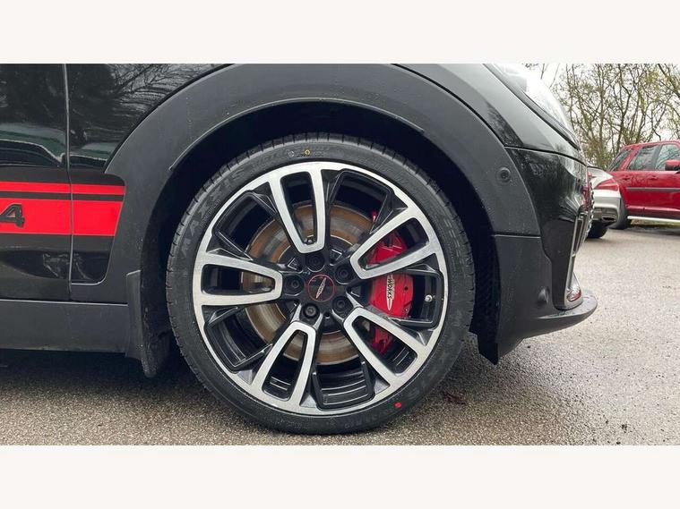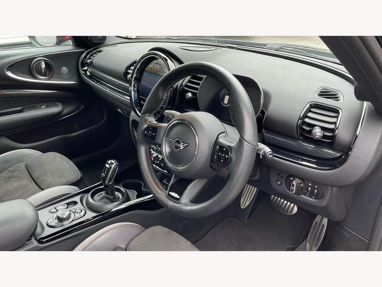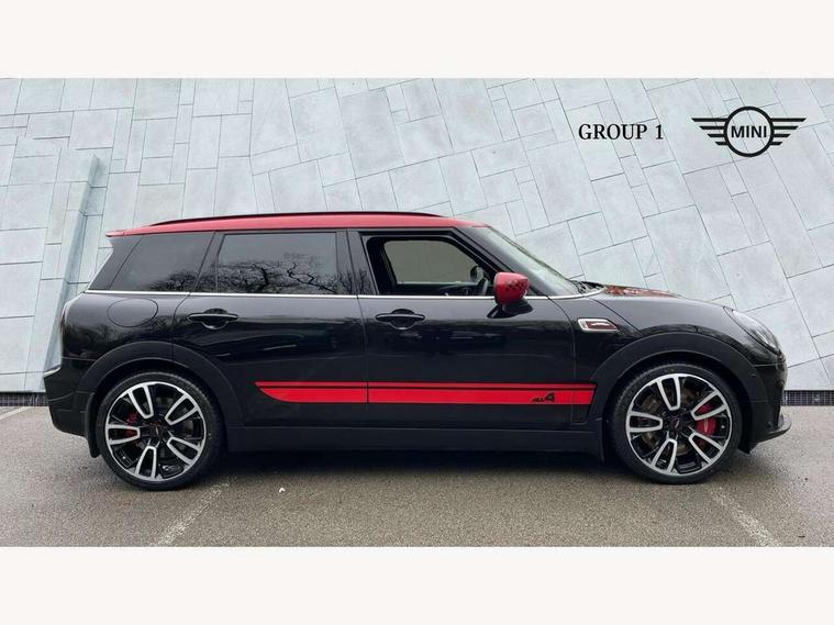 Active Guard incl speed limiting and lane departure functions with auto steering, and front collision warning with brake intervention, Automatic start/stop function with brake energy recuperation, Car sharing preparation, Compatible mobile phone bluetooth with audio streaming, Electro-mechanical speed dependant steering assistance, Instrument cluster, Mini E-call, MINI TeleServices, On board computer, 8 Speed steptronic sport transmission including electronic gear shifter and steering wheel paddles, All Wheel Drive (AWD), Double Vanos system, Fully variable valve control, High precision injection, Performance Control, 6 speakers, FM tuner and DAB digital radio, Bonnet scoop, Chrome fuel filler cap, Dynamic brake lights, Electric windows, Heated rear window, Heated windscreen washer jets, John Cooper Works - aerodynamic kit (front and rear apron, spoiler), front and rear sport bumpers and part-painted side sills with door sill finishers, John Cooper Works rear spoiler, LED rear light with union jack design, Metal door sill strips with Cooper S imprint, Model logo on rear doors, Piano black exterior, Radiator grille piano black border with honeycomb structure in matt black with John Cooper Works logo above an individual grille struct in chilli red, Rain sensor with auto headlights, Rear fog lights, Rear window wiper, Side scuttle with MINI John Cooper Works logo in high gloss black with red border, Split rear doors, Sun/heat protection glass, Twin exhaust tailpipe, White indicator lenses, 12V Accessory socket in centre console, 360L luggage compartment capacity, 4 lashing eyes in luggage compartment, 60/40 split folding rear seat, Anthracite headlining with grab handles and clothes hooks, Chrome interior highlights, Cupholders, English handbook, Floor mats, Glove compartment, Height and length steering column adjustment, Interior lighting with 12 basic colours selectable via toggle switch in roof, Isofix rear child seat preparation, John Cooper Works leather gearshift lever and handbrake gaiter, John Cooper Works sports seat with integrated headrest, adjustable thigh support and John Cooper Works logo, LED reading lights, vanity mirror lights, front foot well light and spotlight on front seats, Multifunction steering wheel, Nappa leather steering wheel with JCW badge, Rubberised stainless steel pedals, Storage compartments in doors, Sunvisors with vanity mirrors, Toolkit, Comfort plus pack with Park assist - Mini Clubman, Excitement pack - Clubman, Extended interior lighting pack - Mini Clubman, Navigation pack - Clubman, 17" front sport brake with 4 piston fixed calliper, 2 tone horn, 3 point seatbelts on all seats, 6 Airbags - front, side, head and seat belt tensioners, Anti-lock braking system (ABS), DSC - Dynamic Stability Control, Electronic handbrake, Front and rear disc brakes, Red brake callipers with John Cooper Works logo, Torsen mechanical limited slip differential, Tyre pressure monitoring system, Alarm system with tilt sensor, monitoring doors, bonnet interior and tailgate, Auto drive away locking, Comfort access system, Deadlocking function, Electronic vehicle immobiliser, Locking wheel bolts, Start/stop toggle with keyless go,