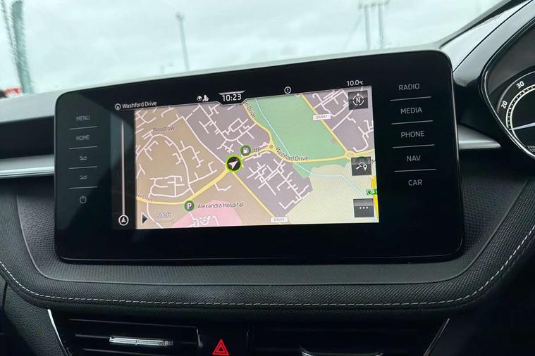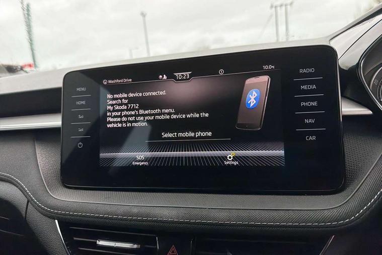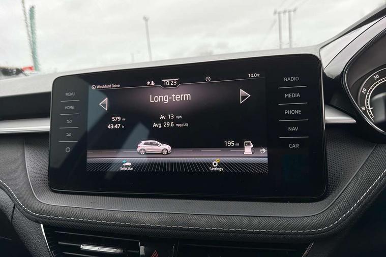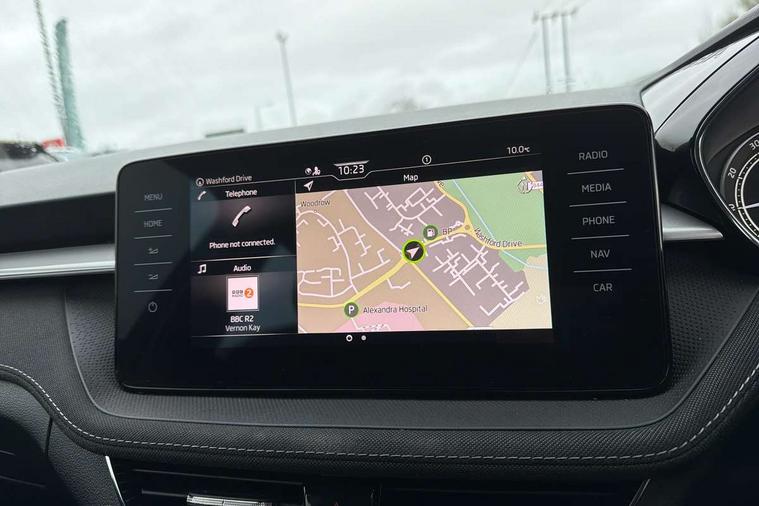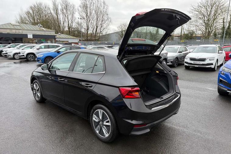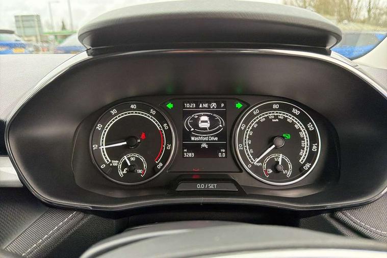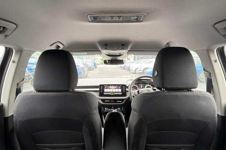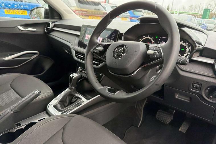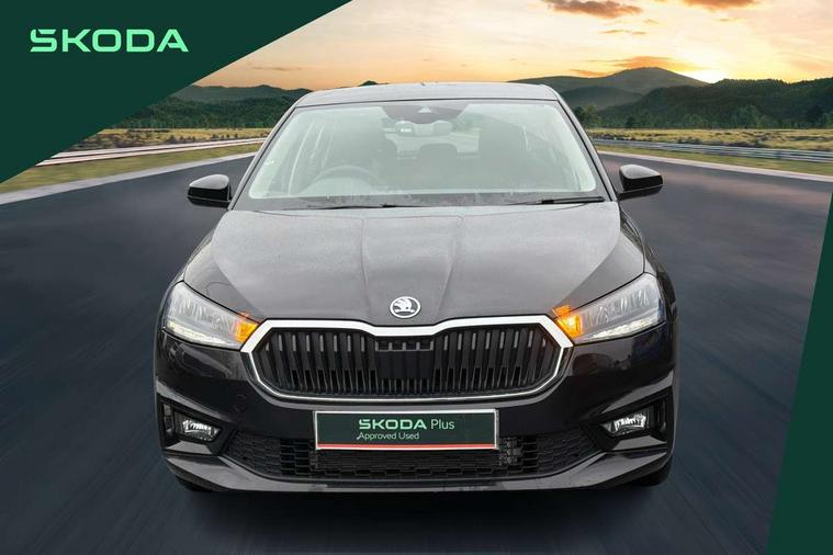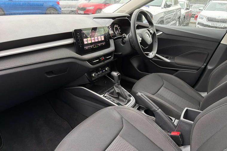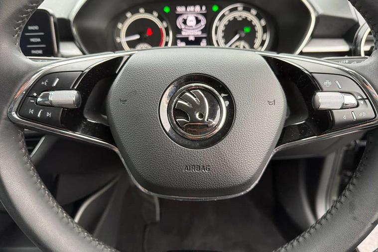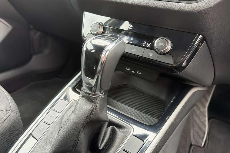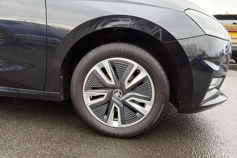 Bluetooth connection, Driver alert system - DAS, Electromechanical power steering, Exterior temperature gauge, Service interval indicator, 2x USB-C in the front (for data transmission and charging), 6 Speakers (4 in front and 2 in rear), Auxiliary socket for external MP3 player, DAB digital radio reception, Web radio, Auto dimming rear view mirror, Basic LED Headlights, Body colour door mirrors, Body coloured bumpers, Chrome window surround, Door mirror integrated indicators, Electrically adjustable and heated door mirrors, Front and rear electric windows, Front fog lights, Front window wiper intermittent control, Headlight range control - Automatic, Ice scraper in fuel cap, LED daytime running lights with coming and leaving home feature, Rain sensor, Rear LED fog light, Rear side wing doors, Rear window wiper with washing nozzles, Roof mounted spoiler, SKODA tailgate lettering in chrome, Third brake light, 3 rear headrests, Backrest split and folding, Central console with fixed cup holder and storage box, Chrome handbrake release button, Comfort seats, Fabric upholstery, Front centre armrest, Gearshift knob/handle in leather, Hand brake lever handle in leather, Height adjustable front headrests, Height adjustable front seats, Height adjustable steering wheel, ISOFIX and TopTether anchorage points to the outer rear seats, ISOFIX and TopTether on the front passenger seat, Luggage compartment lighting, Manually adjustable lumbar support in front seats, Pollen filter, Rear seat bench unsplit, Removable cup holder, Single front passenger seat, Storm grey headlining, Sun visors with mirror and airbag label on passenger side, Textile floor mats, Ticket holder, Umbrella in drivers door, 3-point height adjustable front seats belts with pretensioner and force limiter, Automatic warning lights in case of crash, Driver and passengers airbag with switch off function, e-Call+, ESC including ABS, MSR, ASR, EDS, HBA and XDS, Front and rear seat belt warning, FRONT ASSIST (AEB City and AEB Inter Urban), Front side airbags, Head airbags, Hill hold assist, One tone horn, Pedestrian protection, Three rear 3-points safety seat belts with pretensioner and force limiter including stop function for outer rear seat belts, Tyre pressure monitoring system, Anti-theft alarm system including immobiliser, interior monitoring, backup horn, and towing protection, Central locking with radio remote control, interior controls, SAFE function and 2 foldable keys, KESSY - Keyless engine start/stop, Chrome edged air vents, Satin black door and side trim panel in front, Anti-theft wheel bolts protection, Super-low rolling resistance tyres,