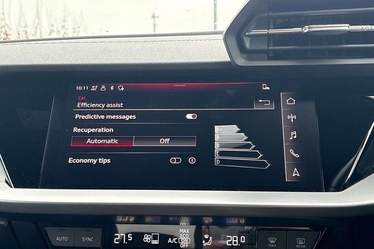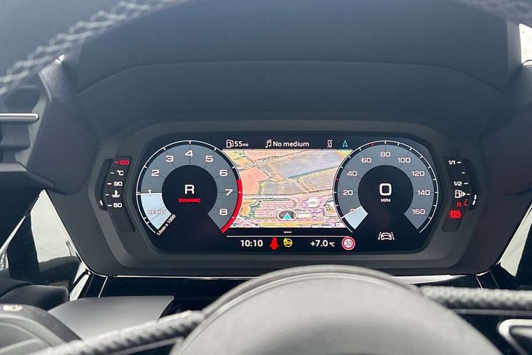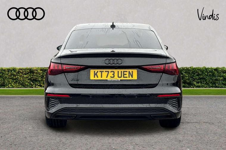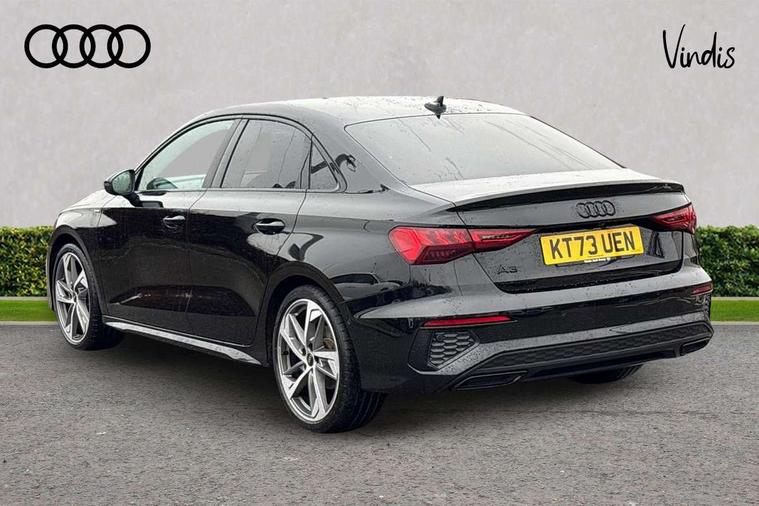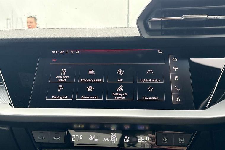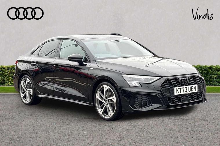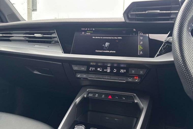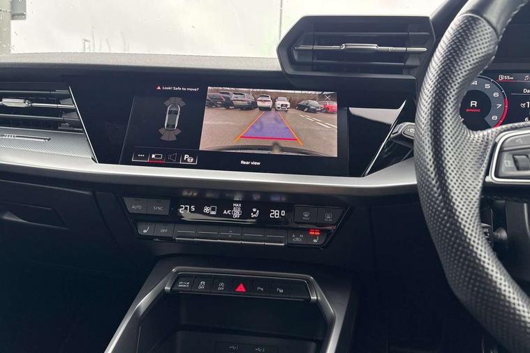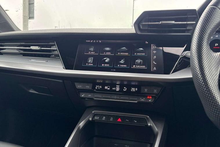 Audi drive select (Auto, Comfort, Dynamic, Efficiency and Individual), Audi smartphone interface, Audi Virtual Cockpit - 10.25" digital and colour instrument cluster, Automatic start/stop system with recuperation, Bluetooth interface, Camera based traffic sign recognition, Collision avoidance assistant, e-Call (emergency call), Electromechanical power speed sensitive steering, Lane departure warning system, MMI Navigation Plus with high resolution 10.1" colour touch screen display, Service indicator, Trip computer, Voice control system with natural language interaction, Sports suspension, 2xUSB-C connection with data and charging functions, 6 passive loudspeakers, CD player, DAB Digital radio, 3rd brake light, Acoustic glass windscreen, Audi beam uses LEDs to project the Audi logo onto the ground as you exit your A3, Auto dimming frameless rear view mirror, Electrically adjustable/heated/folding/auto dimming door mirrors with integrated LED indications + kerb view function for passenger side, Front electric windows, Illuminated door sills with aluminium inserts at the front with S logo, LED daytime running lights, LED headlights with LED rear lights and dynamic rear indicators, Light and rain sensors, Model and engine designation badges at rear, Privacy glass - dark tinted rear window, rear door and side windows, Rear boot, Rear electric windows, Rear side wing doors, S roof spoiler, 12V socket and storage compartment in front centre console, 3 seat bench in 2nd row, 3 spoke flat bottomed leather multifunction sport steering wheel with gear shift paddles, 4 way electrically adjustable lumbar support for driver and front passenger, 60/40 split folding rear seat bench, Black cloth headlining, Dual zone electronic climate control, Front and rear centre armrest in artificial leather, Front and rear headrests, Front/rear floor mats, Height and reach adjustable steering wheel, Interior lighting - glove compartment light and right hand side, Luggage compartment floor covering, Manual boot compartment lid, Single front passenger seat, Stainless steel pedals and front footrest in black, Twin leather upholstery with front sports seats S embossed logo, Aluminium interior elements pack - A3, Black styling pack - A3 Saloon/Black edition, LED interior lighting pack - A3 Saloon, 3x3 point rear seat belts, Driver and front passenger airbag with passenger airbag deactivation, Electronic Stabilisation Control (ESC) including ABS, ASR and EDL, First aid kit with warning triangle and 2 safety vests, Front side airbags with head airbags and interaction airbag, Pre-sense front with pedestrian and cyclist detection, Seatbelt monitoring, Tyre pressure loss indicator, Anti theft alarm, Anti-theft wheel bolts, Electronically operated child locks, Immobiliser, Remote control central locking, Aluminium air vent surrounds, Dark spectrum aluminium inlays, accent surfaces in the dashboard and centre console in platinum grey silk effect paint finish, 19" 5 arm trapezoid design alloy wheels in matt grey with diamond cut finish,