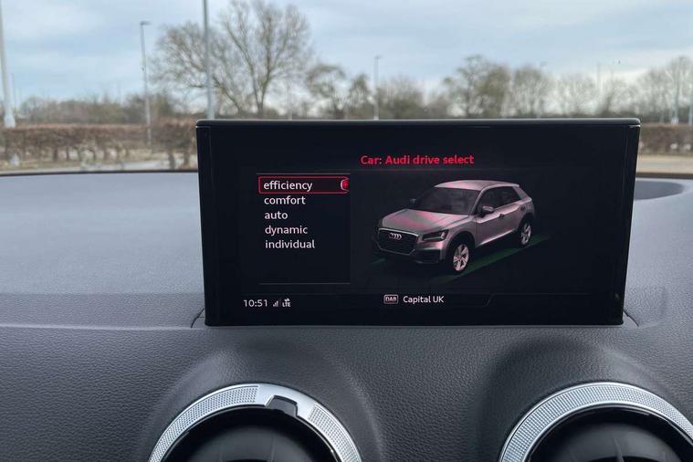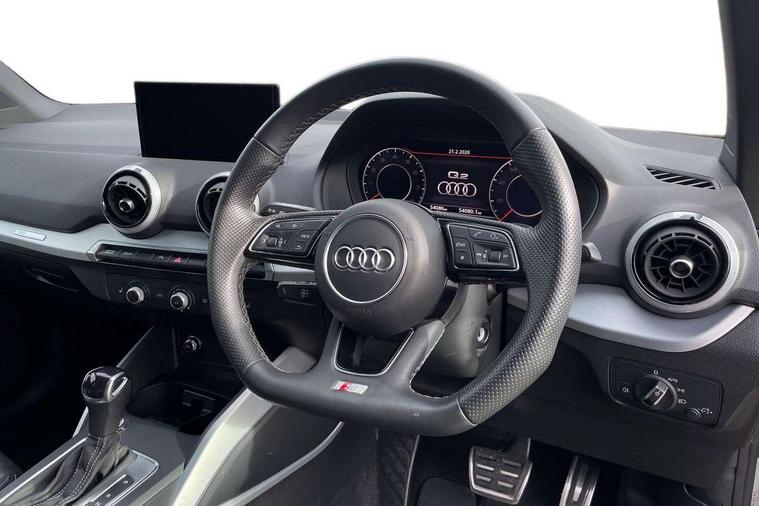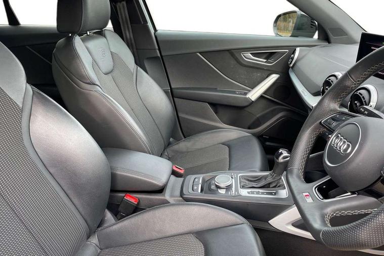 Audi connect navigation and infotainment includes innovative services, Audi connect remote and control connects your vehicle to your smartphone, Audi drive select, Audi drive select - Power steering assistance + engine + gearshift, Audi drive select with efficiency, Audi smartphone interface, Audi virtual cockpit, Automatic start/stop system with recuperation, Bluetooth interface includes bluetooth audio streaming, Cruise control, E-call, MMI navigation plus with MMI touch, Power operated tailgate, Progressive steering, Rear parking sensors, 2 x SDXC card reader, 8 passive loudspeakers, DAB Digital radio, DVD Drive, Auto dimming rear view mirror, Black window trims, Bumper in full body colour paint finish, Electrically adjustable, folding, auto dimming and heated door mirrors with integrated LED side indicators, Front windscreen with grey tinted sunband, LED daytime running lights, LED headlights with LED rear lights, LED third brake light, Privacy glass - dark tinted rear and rear side windows from B-pillar backwards, Rear side wing doors, Rear wiper, Variable front intermittent wipers, Wheel arch trims in manhattan grey, 12V socket in front, 3 seat bench in 2nd row, 3 spoke flat bottomed multi-function leather sport steering wheel with gear shift paddles, 4-way electric lumbar support for front seats including seat height adjustment for both front seat, 60/40 split folding rear seat bench, Black cloth headlining, Front and rear head restraints, Front centre armrest, Front/rear floor mats, Height/reach adjust steering wheel, Illuminated door sill trims with S logo, ISOFIX child seat mounting for front passenger with airbag deactivation and outer rear seat including top tether attachment point for outer rear seats, Single front passenger seat, Stainless steel pedals, Black styling pack - Q2, 3x3 point rear seatbelts, 6 airbags - Front, curtain and front side airbags, Electromechanical parking brake, Electronic stabilisation control including ABS, ASR and EDL, Hill hold assist, Pre-sense front with pedestrian recognition, Seatbelt monitoring, Tyre pressure warning light, Warning triangle and first aid kit, Anti theft alarm, Anti theft wheel bolts, Electronically operated child locks, Remote central door locking, Aluminium interior element, Matt brushed aluminium trim inlays, Tool kit,