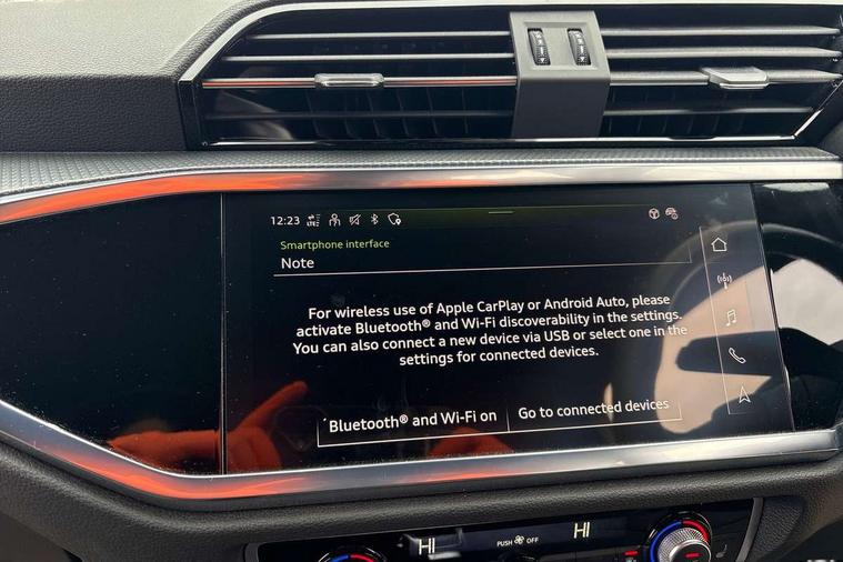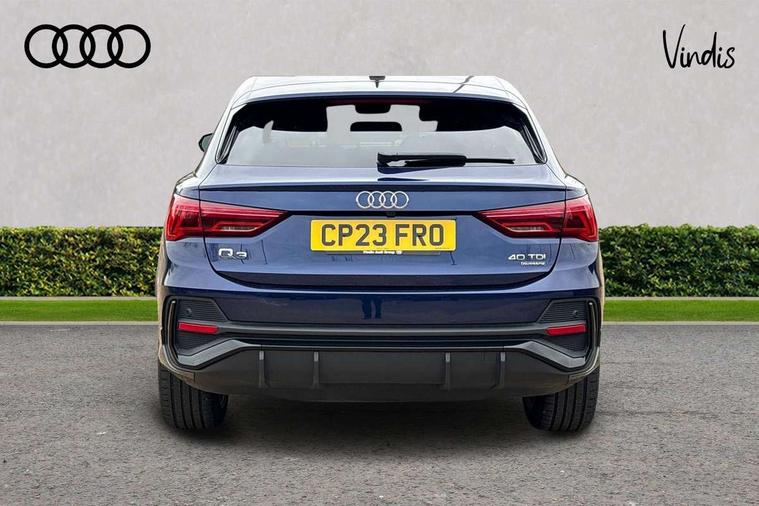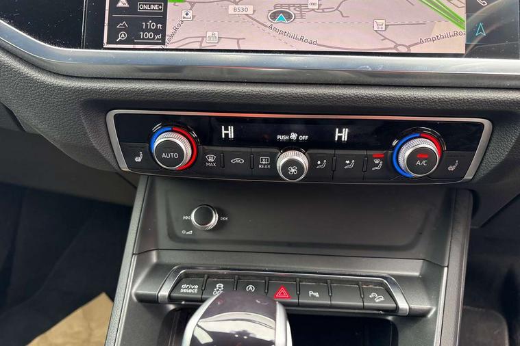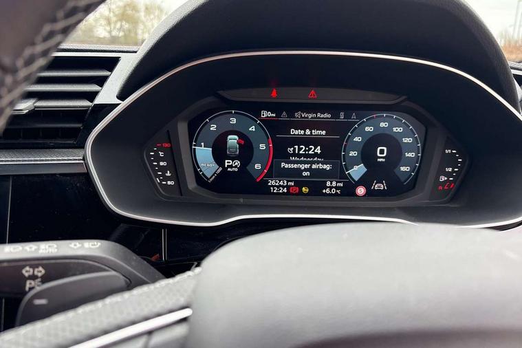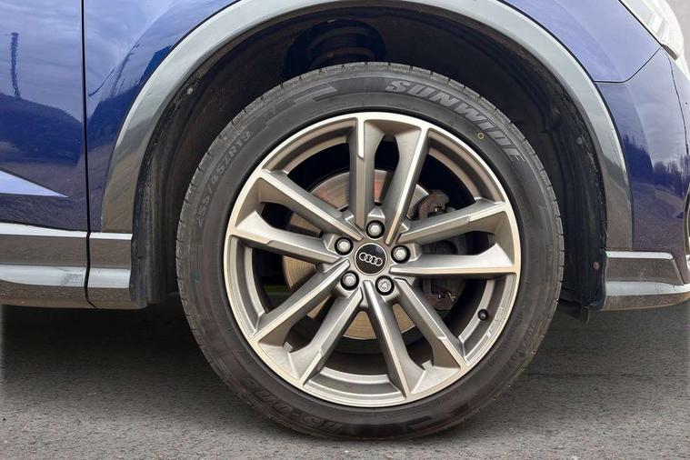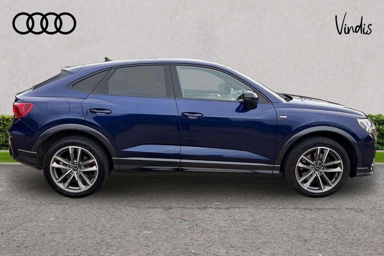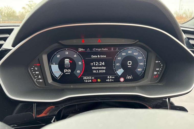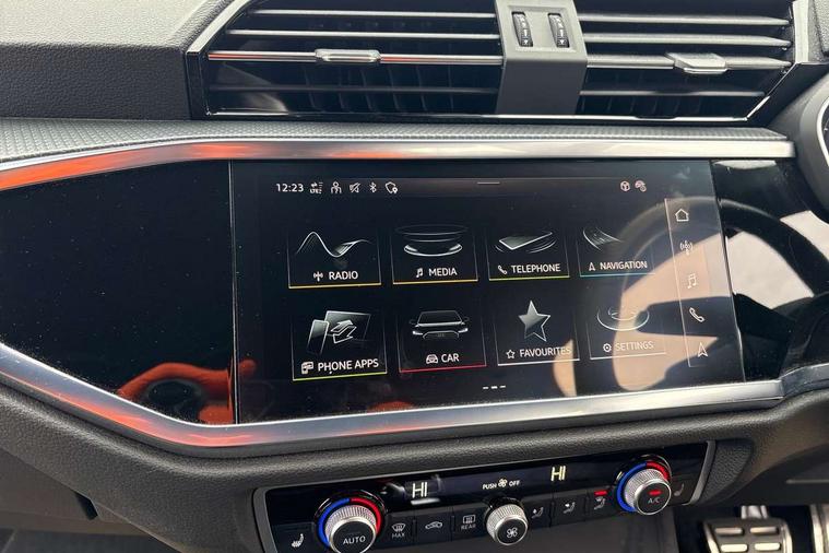 Audi drive select, Audi lane departure warning, Audi Virtual Cockpit - 10.25" display, Bluetooth interface, Camera based traffic sign recognition, Legal emergency call, MMI Navigation Plus with high resolution 10.1 inch touchscreen colour display, Power operated tailgate, Progressive steering, Service interval indicator, Smartphone interface includes wireless Apple carplay/Android Auto, Start stop system with recuperation, Voice control system with natural language interaction, Diesel particulate filter, Sports suspension, 2 USB-C ports with charge and data functions, 6 passive loudspeakers, DAB digital radio module, Acoustic windscreen, Auto dimming frameless rear view mirror, Diffuser grille in grained matt black, Diffuser trim in selenite silver, Electrically folding, adjustable and heated door mirrors with integrated LED side indicators and kerb view function for passenger side, Front and rear electric windows, Front fog lights, Front underbody protection in manhattan grey paint finish, High gloss black finish B and C pillars, LED Dynamic rear indicators, LED headlights with LED daytime running lights, LED rear lights, LED third brake light, Privacy glass dark tinted rear and rear-side windows (from B-pillar backwards), Rain and light sensors, Rear side wing doors, Rear underbody protection in matt black, Rear wiper, Variable front intermittent wipers, 12V socket in rear centre console, 3 seat bench in 2nd row, 40:20:40 folding with manual adjustment for 60:40 forwards/backwards position and backrest angle, Adjustable rear seat bench/backrest with centre armrest and cupholder, Black cloth headlining, Dual zone electronic climate control, Front and rear black floor mats with contrast stitching, Front and rear headrests, Front and rear roof module including reading lights, Front centre armrest, Glove compartment lighting, Height and reach adjustable steering wheel, Illuminated door sill trims with S logo, ISOFIX child seat mounting for front passenger with airbag deactivation and outer rear seat including top tether attachment point for outer rear seats, Luggage compartment light right in white, Luggage compartment sill protection in stainless steel, Manual front seats with height adjustment, Perforated leather gearknob, Single front passenger seat, Stainless steel pedals, Ambient lighting pack - Q3, Black styling pack - Q3, Non smoking pack - Q3, 3x3 point rear seatbelts, 6 airbags - Driver, front passenger, curtain and side windows, Audi pre-sense front with pedestrain and cyclist recognition, Electrically operated child locks on rear doors, Electromechanical parking brake, Electronic stabilisation control including ABS, ASR and EDL, Front seatbelt reminder, Hill descent control, Hill hold assist, Pre sense basic, Seatbelt monitoring, Tyre pressure warning, Warning triangle and first aid kit, Anti theft alarm, Anti theft wheel bolts, Immobiliser, Remote central locking, Aluminium look interior elements, Black dashboard, Detail dashboard around MMI touch colour display in glass look, black with surround in aluminium look, Leatherette door armrest, Piano black inlay, 19" 5 twin arm design diamond cut audi sport alloy wheels in matt grey look,