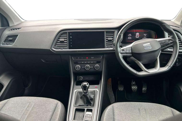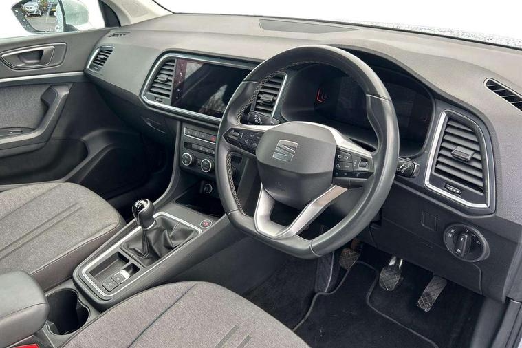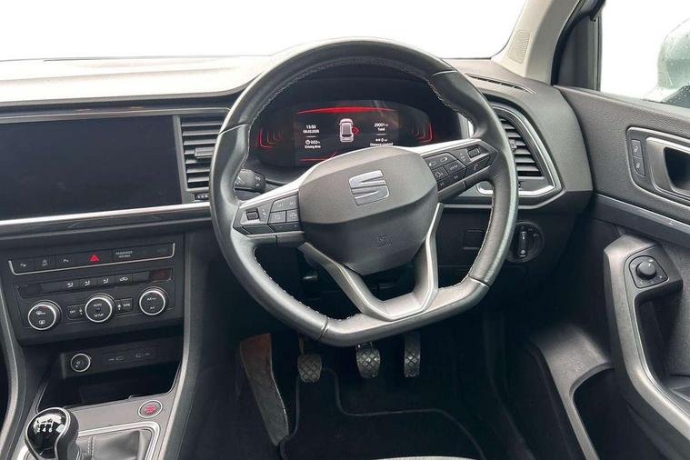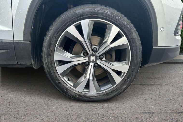 8" Digital cockpit, Colour multi-function on board computer display, Cruise control system with speed limiter, E-call, Outside temperature gauge, PAS, SEAT drive profile with driving experience button - Normal, Sport, Eco and Individual mode, steering and throttle response, Self parking functionality (includes front and rear parking sensors), Start/stop system, Tailgate, Trip computer, Wireless full link smartphone integration, Wireless phone charger, Steering wheel mounted audio/phone controls, Black wheel arch surrounds, Body colour bumpers, Chrome front grille frame, Chrome roof rails, Chrome side window trim, Daytime running lights, Door mirrors with welcome light silhouette, Dynamic headlight range control with self adjusting whilst driving, Electric adjustable/heated/folding door mirrors, Front and rear electric windows, Full LED headlamps with lens and LED front fog lamps with cornering function, LED rear tail lights with dynamic indicators, Rear fog lights, Rear side wing doors, Rear wash/wipe, Simulated exhaust pipes, Variable front intermittent wipers, 12V socket in front, 3 seat bench in 2nd row, 60/40 split folding rear seat, Cloth upholstery with front comfort seats, Drawer under right front seat, Dual zone climate control, Front and rear head restraints, Front centre armrest, Front seat back storage pockets, Height adjustable driver and passenger seat with lumbar adjustment, ISOFIX points in outer rear seats with top tether anchorage points, Leather steering wheel and gear knob, Rear armrest and easy back seat release mechanism from boot, Single front passenger seat, Interior lighting pack - Ateca, Navigation system pack with DAB - Ateca, 3x3 point rear seatbelts, ABS, Traction control system (TCS), Electronic stability control (ESC) and Electronic differential lock system (XDS), Airbags - Driver and front passenger airbag with deactivation, front side, two curtain and driver's knee airbags, Electric parking brake with auto hold function, Front and rear seatbelt reminder, Front assist with autonomous emergency braking, Hill hold control, Manual rear child locks, Single tone horn, Tiredness recognition system, Traction control, Tyre pressure monitoring system, Alarm, Keyless entry, Locking wheel bolts, Remote central locking, Chrome interior detailing, 18" Performance machined alloy wheels 36/2 in nuclear grey,