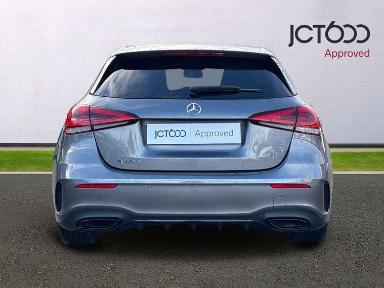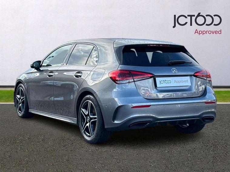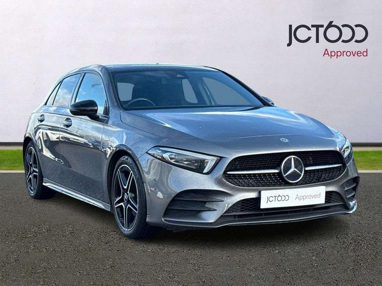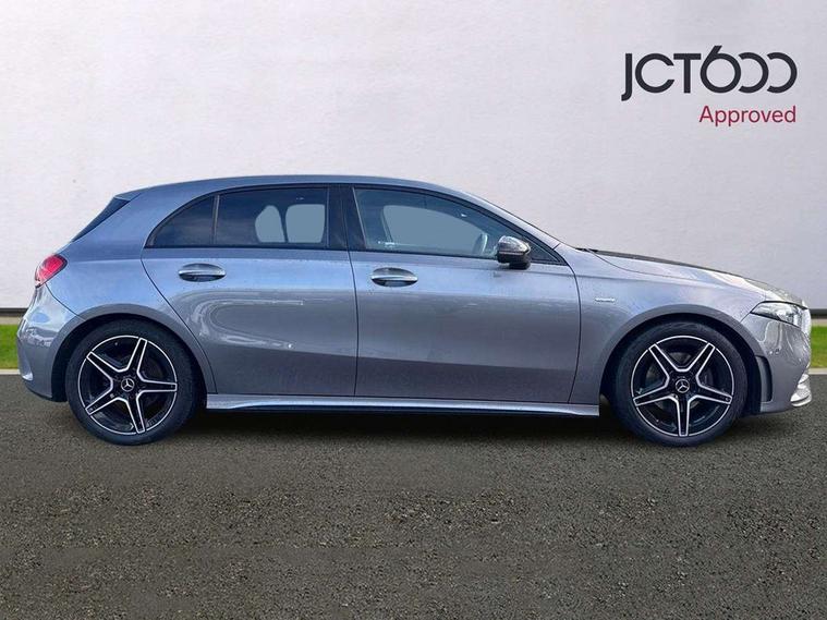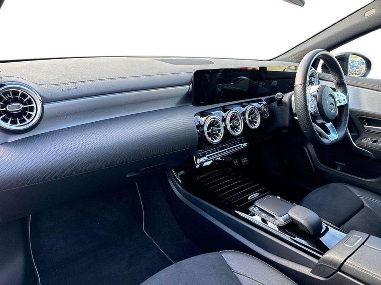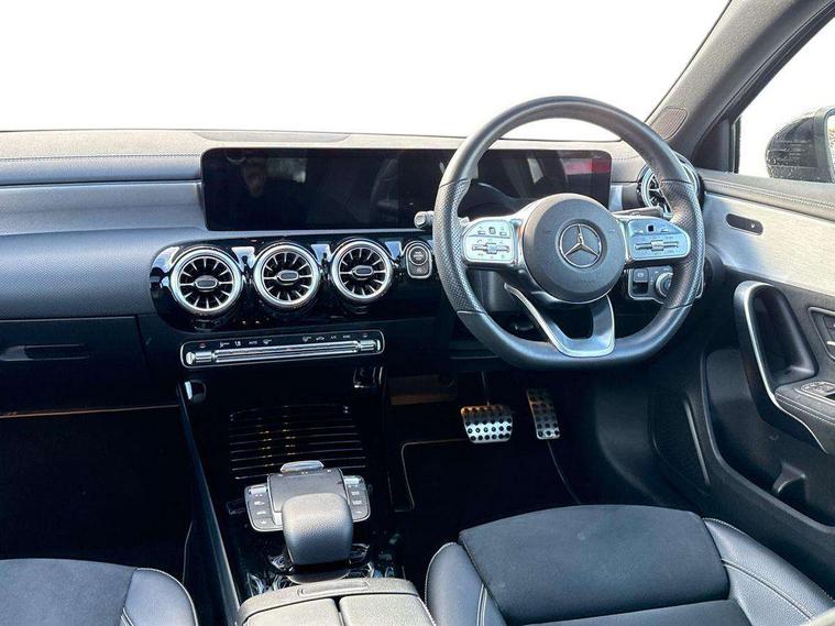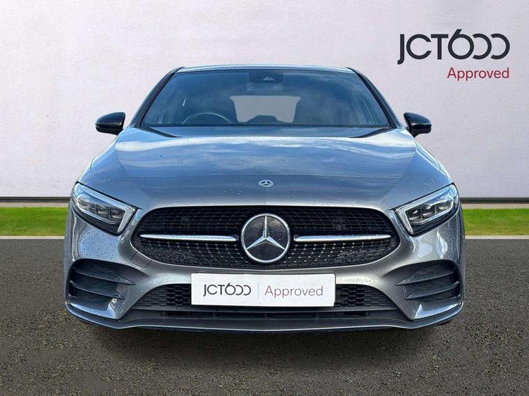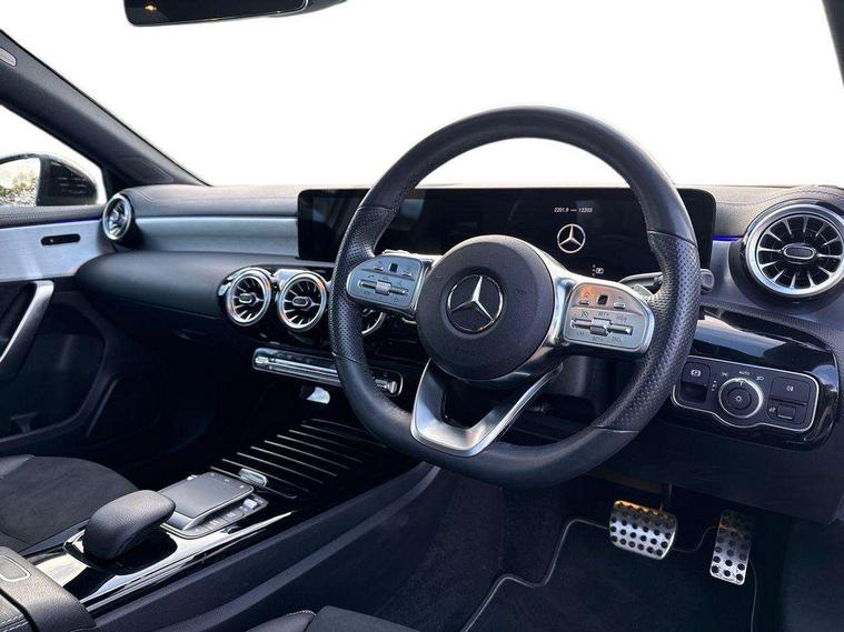 10.25" Digital instrument cluster display screen, 10.25" media display, 180 degree rear view camera with parking guidelines, Active parking assist with visual and audible warning of detected obstacles, Attention assist, Brake pad wear indicator warning light, Car wash mode, Direct steering, Dual bluetooth interfaces, DYNAMIC SELECT with a choice of driving modes (ECO, Comfort, Sport and Individual), ECO start/stop function, Fluid level warning indicator for fuel, oil, coolant and washer fluid, Hard-disk navigation, Hey Mercedes Voice activation, Lamp failure indicator, Lane keeping system, Mercedes me connect including emergency call system, accident recovery, breakdown and maintenance management, Mercedes me remote services, Outside temperature gauge, Owners manual in English, Pre-installation for private car sharing, Preinstallation for Mercedes Benz link, Service indicator (ASSYST), Smartphone integration with Apple CarPlay and Android auto, Traffic sign assist, Trip computer, Ultrasonic sensors positioned in the front and rear bumpers, Lowered comfort suspension, Rear axle torsion beam, 10 speakers, 2 USB ports (type C) in rear stowage compartment and one in front of center console, DAB Digital radio, MBUX multimedia system with DAB digital radio and touchpad including satellite navigation, Mercedes-Benz sound system - 100W, 4 Electric Front and Rear windows, Adaptive brake lights, AMG bodystyling - Front apron with splitter in chrome, rear apron with chrome trim and chrome visible trim elements in tailpipe, Black weather strip, Body colour bumpers, Body colour door handles, Body colour side skirt, Body coloured door mirrors, Electric adjustable and heated door mirrors with integrated LED side indicators, Exclusive diamond radiator grille, Exhaust system - Twin visible tailpipes in polished stainless steel, Headlamp assist automatic headlamp activation, Heated glass rear windscreen + timer control, High gloss black beltline, LED High level third brake light, LED tail lamp, Multibeam LED with adaptive highbeam assist plus, Panoramic sliding sunroof, Privacy glass, Radio aerial, Rain sensing windscreen wipers with two sensitivity settings, Rear fog lights, Rear wiper, Window line trim strip in high gloss black, 3 Spoke flat bottom leather multi function steering wheel with perforated leather in grip area, 40:20:40 split folding rear seats, Artico man-made leather/Microfibre Dinamica upholstery with contrast stitching in light grey, Auto Mercedes-Benz child seat recognition sensor, Black air vents with surround in silver chrome, Black roof lining, Brushed stainless steel sports pedals with rubber studs, Controller on centre console with chrome surround, Floor mats with black top stitching and embroidered edition logo and piping in light grey, Front centre armrest with storage compartment, Front seat backs luggage nets, Front seat cushion length adjustment, Galvanished gear shift paddles on steering wheel, Heated front seats, Height/reach adjustable steering column, Illuminated front door sills with changeable cover, Interior lighting - 64 colour Ambient lighting, Interior mirror with reading lamps in black and frameless, Rear armrest with 2 cupholders, Rear head restraints, Seat occupancy sensor for front passenger seat, Sports seats with integrated headrests, Stowage compartment in centre console with retractable cover, Sunvisors with illuminated vanity mirrors, Touchpad on center console, Twin front cupholders, Two zone thermotronic luxury automatic climate control, Light and sight pack - A Class, Mirror package - A Class, Night pack - A Class Saloon/Hatchback, Seat comfort pack - A Class, 3 rear 3 point seatbelts, ABS with Brake Assist, Active bonnet, Adaptive brake assist with hold function and hill start assist, Black seatbelts, Childproof locks manually operated for rear doors and electrically operated for rear power windows, Crash responsive emergency lighting, Driver and passenger head and side airbags, Drivers knee airbag, Dual stage driver/passenger airbags, Electronic parking brake, ESP curve dynamic assist, ESP with ASR, Front and rear seatbelt reminder, Front brake callipers with Mercedes Benz lettering, ISOFIX and top tether child seat fixing points in two outer rear seats, Tyre pressure monitoring system, Warning triangle and first aid kit, Window airbags, Alarm system/interior protection/immobiliser, Keyless entry lock/unlock, Keyless Go, Remote central locking and crash sensor with emergency opening function, Urban guard vehicle protection system with immobiliser and interior protection, Matrix look light longitudinal grain aluminium trim element, 18" AMG 5 twin spoke light alloy wheels aerodynamically optimised painted in black with highsheen finish, Summer tyres, Tirefit sealant kit,