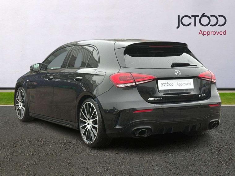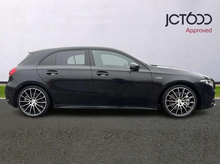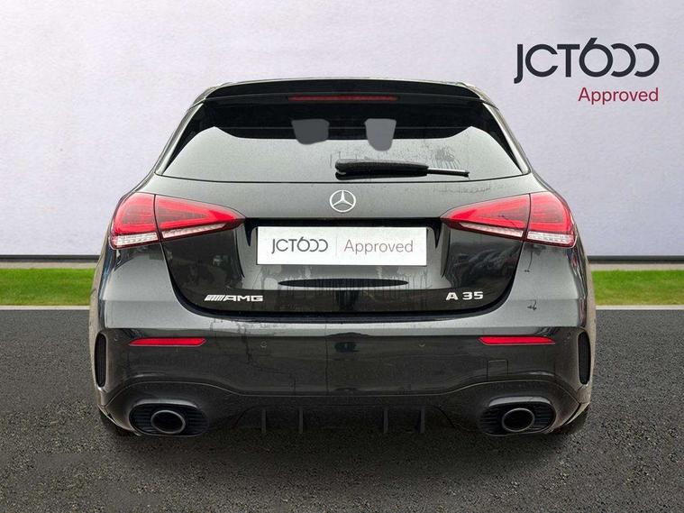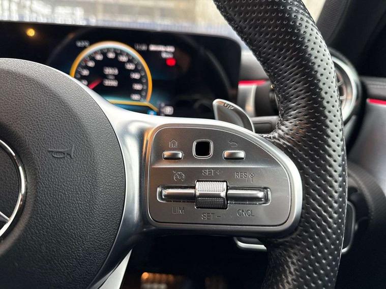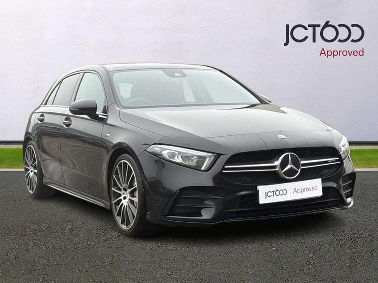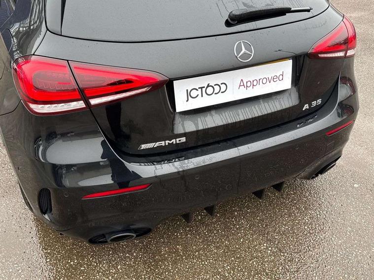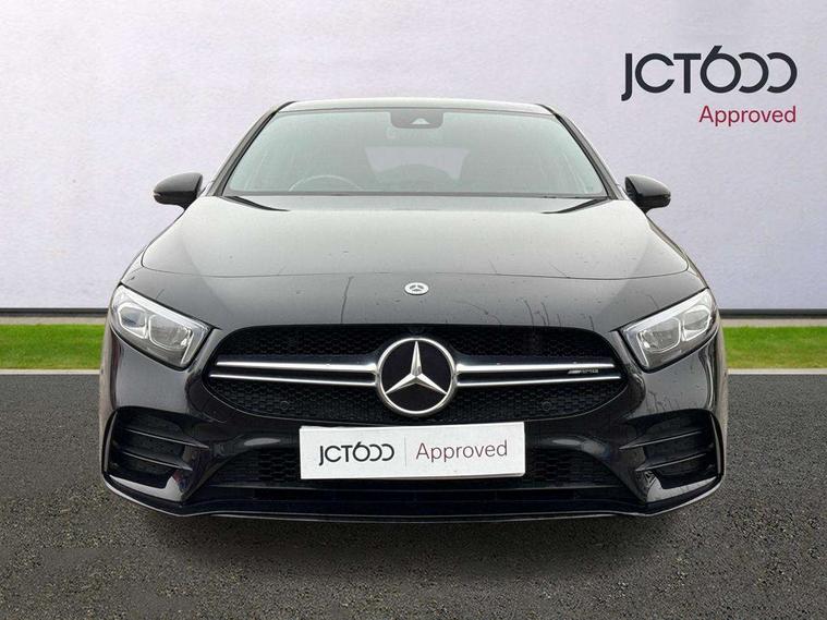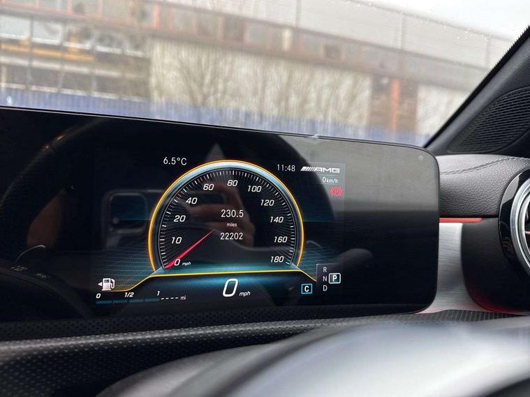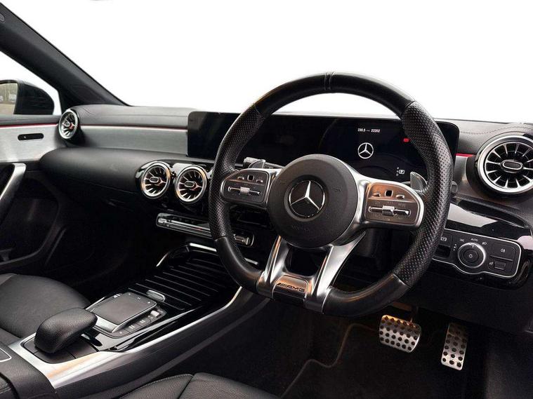 10.25" media display, 180 degree rear view camera with parking guidelines, 7" colour screen in instrument panel, Active parking assist with visual and audible warning of detected obstacles, Attention assist, Brake pad wear indicator warning light, Car wash mode, Cruise control + speed limiter, Direct steering, Dual bluetooth interfaces, DYNAMIC SELECT with driving programs (Slippery, Comfort, Sport, Sport+ and Individual), ECO start/stop function, Fluid level warning indicator for fuel, oil, coolant and washer fluid, Hard-disk navigation, Hey Mercedes Voice activation, Lamp failure indicator, Lane keeping system, Mercedes me connect including emergency call system, accident recovery, breakdown and maintenance management, Mercedes me remote services, Outside temperature gauge, Owners manual in English, Pre-installation for private car sharing, Preinstallation for Mercedes Benz link, Service indicator (ASSYST), Smartphone integration with Apple CarPlay and Android auto, Speed sensitive power steering, Trip computer, Ultrasonic sensors positioned in the front and rear bumpers, AMG performance suspension, Rear axle multi-link, 2 USB ports (type C) in rear stowage compartment and one in front of center console, 6 speakers, DAB Digital radio, MBUX multimedia system with DAB digital radio and touchpad including satellite navigation, Mercedes-Benz sound system - 100W, 4 Electric Front and Rear windows, Adaptive brake lights, AMG bodystyling - Front apron with splitter in chrome, rear apron with chrome trim and chrome visible trim elements in tailpipe, AMG Front apron with flics as air deflector elements on the outer air intakes, AMG radiator grille with twin blade lamella and AMG Lettering, AMG Rear apron with specific diffuser look with four vertical fins and two round chrome plated tailpipe trim elements with a diameter of 90 mm, AMG spoiler lip on roof, AMG Sports exhaust system with two round tailpipes measuring 90 mm in diameter attached in rear apron, AMG lettering plus ribbing on the inside of the, Automatic headlights, Black weather strip, Body colour bumpers, Body colour door handles, Body colour side skirt, Body coloured door mirrors, Electric adjustable and heated door mirrors with integrated LED side indicators, Front wings wheel arches with TURBO 4MATIC lettering, Headlamp assist automatic headlamp activation, Heated glass rear windscreen + timer control, High gloss black beltline, LED High level third brake light, LED high performance headlamps with integrated LED daytime running lights, LED tail lamp, Privacy glass, Radio aerial, Rain sensing windscreen wipers with two sensitivity settings, Rear fog lights, Rear side wing doors, Rear wiper, Trim elements on louvres in outer air inlets in high gloss black, Wider wheel arches for AMG wheels, Window line trim strip in high gloss black, 3 seat bench in 2nd row, 40:20:40 split folding rear seats, AMG Performance steering wheel in nappa leather, Auto Mercedes-Benz child seat recognition sensor, Black air vents with surround in silver chrome, Black roof lining, Brushed stainless steel sports pedals with rubber studs, Controller on centre console with chrome surround, Floor mats with stitched edging and AMG lettering, Front centre armrest with storage compartment, Front door sills with AMG lettering, Front seat backs luggage nets, Front seat cushion length adjustment, Heated front seats, Height/reach adjustable steering column, Interior lighting - 64 colour Ambient lighting, Interior mirror with reading lamps in black and frameless, Manual height adjustable front seats, Rear head restraints, Seat occupancy sensor for front passenger seat, Silver coloured aluminium gear shift paddles on steering wheel, Single front passenger seat, Sports seats with integrated headrests, Stowage compartment in centre console with retractable cover, Sunvisors with illuminated vanity mirrors, Touchpad on center console, Twin front cupholders, Two zone thermotronic luxury automatic climate control, AMG night pack - A Class, Light and sight pack - A Class, Mirror package - A Class, Seat comfort pack - A Class, 3 rear 3 point seatbelts, ABS with Brake Assist, Active bonnet, Active brake assist includes forward collision warning system with autonomous braking, Adaptive brake assist with hold function and hill start assist, Black seatbelts, Childproof locks manually operated for rear doors and electrically operated for rear power windows, Crash responsive emergency lighting, Driver and passenger head and side airbags, Drivers knee airbag, Dual stage driver/passenger airbags, Electronic parking brake, ESP curve dynamic assist, ESP with ASR, Front and rear seatbelt reminder, Front brake calipers with AMG lettering, ISOFIX and top tether child seat fixing points in two outer rear seats, Perforated front brake discs, Tyre pressure monitoring system, Warning triangle and first aid kit, Window airbags, Alarm system/interior protection/immobiliser, Keyless Go, Remote central locking and crash sensor with emergency opening function, Urban guard vehicle protection system with immobiliser and interior protection, Light aluminium with longitudinal grain interior trim, 19" AMG multi-spoke high gloss black painted light alloy wheels with high sheen finish, Summer tyres, Tirefit sealant kit,