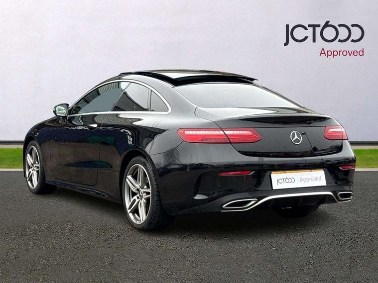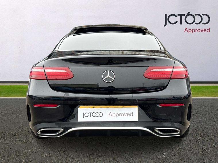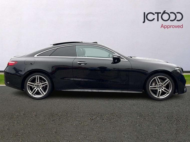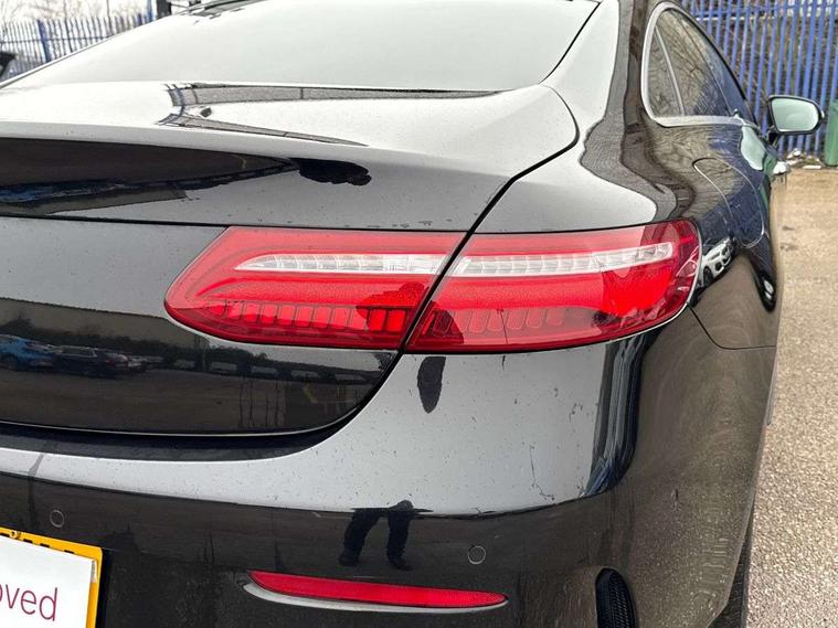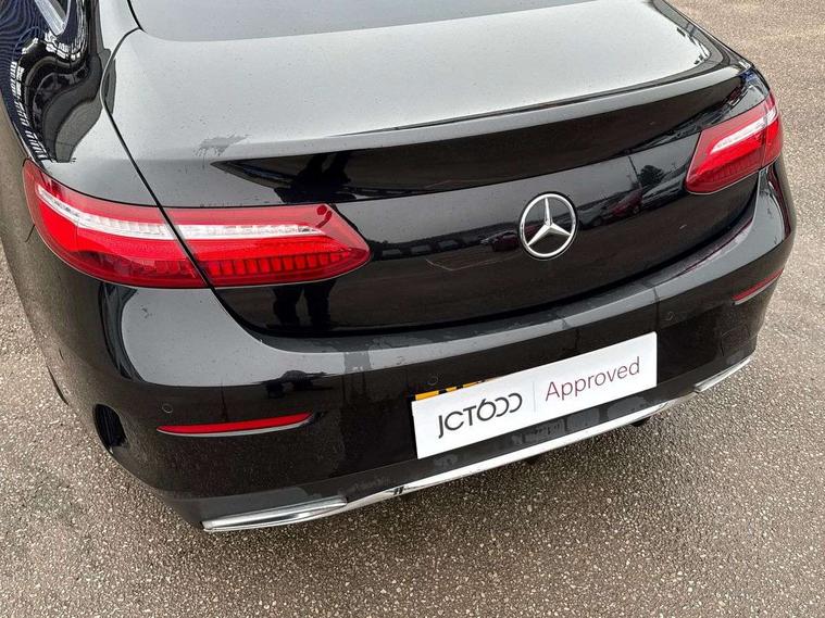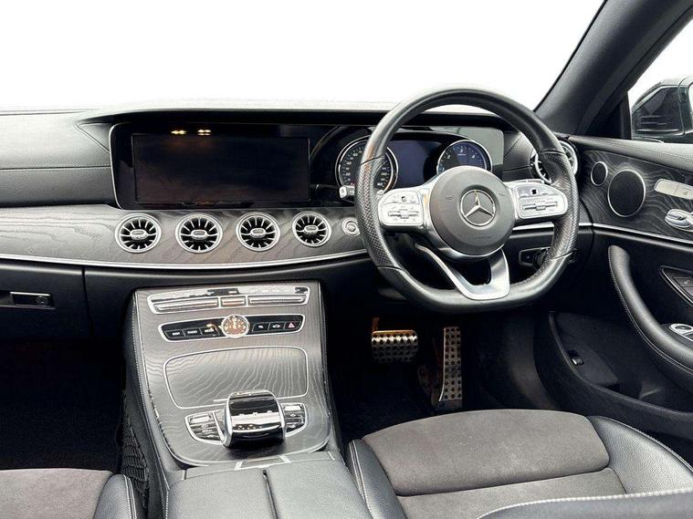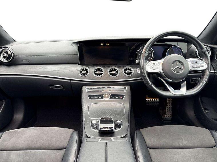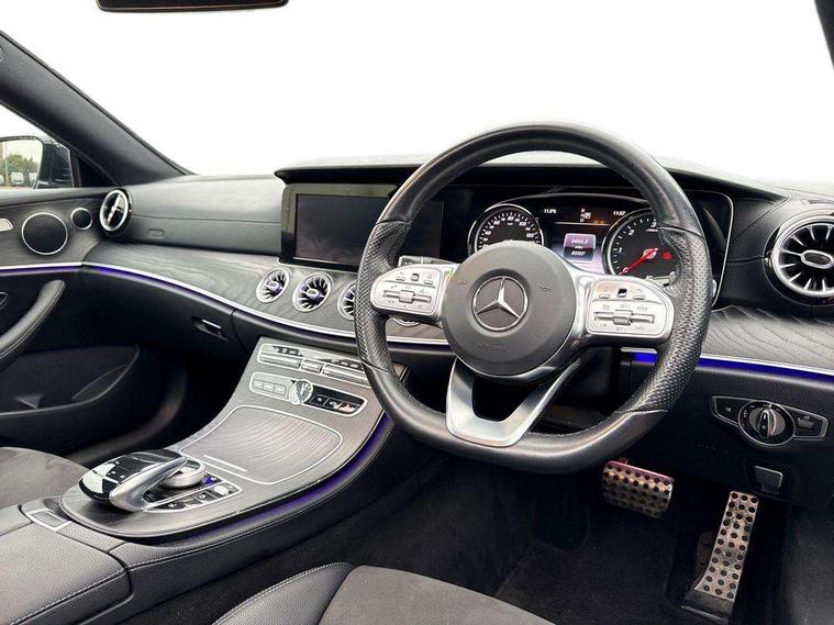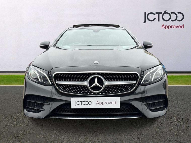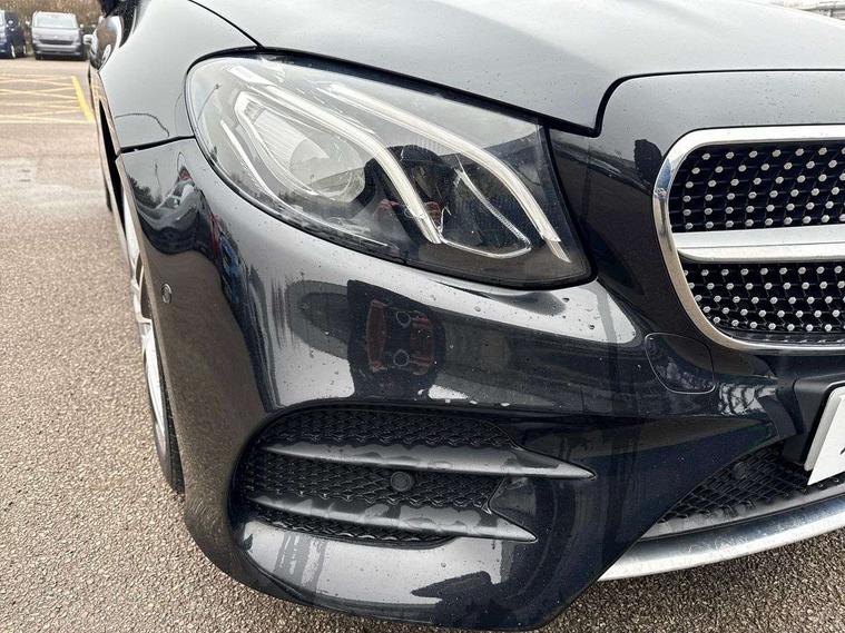 Active park assist with parktronic system, Analogue clock, Attention assist, Bluetooth interface for hands free telephone, Brake wear warning light, Collision prevention assist plus, Direct steering, DYNAMIC SELECT with a choice of driving modes (ECO, Comfort, Sport, Sport+ and Individual), Engine start/stop button, Instrument cluster with two tube-design round dials and 8.4-inch TFT multifunction display, Mercedes connect me, Multi function trip computer, Outside temperature display, Remote boot release, Reversing camera, Service indicator (ASSYST PLUS), Touchpad with control wheel, Diesel particulate filter, Incorrect fuelling protection, 2 USB ports in centre console, Audio 20 with USB, touchpad and control wheel with Media Interface with Bluetooth interface and hands-free function, DAB Digital radio, Steering wheel mounted audio controls, Adaptive brake lights, AMG bodystyling, AMG boot lid spoiler in body colour, AMG front, rear apron and side skirts, Automatic rain sensing wipers, Body colour door handles, Body coloured bumpers, Electric adjustable heated door mirrors, Electric front/rear windows with one touch/auto up/down, Electric tilt/slide panoramic sunroof, Illuminated front door sill panels with Mercedes-Benz lettering, LED daytime running lights, LED Headlights, LED tail lights, Magic Vision Control heated windscreen wiper system, Polished aluminium upper window surround, Pre-installation for roof rail systems, Twin exhaust pipes, 2 way rear head restraints, 3-spoke flat bottom multifunction AMG steering wheel with Touch Control buttons, trimmed in black nappa leather, 4 way adjustable front head restraints, 40:20:40 split folding rear bench seat, AMG floormats, Artico man-made leather upper dash trim, Bag hook in luggage compartment, Black roof lining, Centre armrest and door handle illumination, Child seat recognition sensor, Chrome door pins, Cupholders in centre console, Dual zone automatic climate control, Easy entry seats, Front and rear door pockets, Front centre armrest with storage compartment, Front footwell lights, Front seat back map pockets, Front seatbelt electric feeders, Heated front seats, Height/reach adjust steering wheel, Height/reach adjustable steering column, Illuminated air conditioned glovebox, Interior lighting - 64 colour Ambient lighting, Interior rear light/integral reading lights, Isofix rear child seat fastenings, Lockable glovebox, Multi contour front sports seats, Multi function steering wheel, Rear centre armrest with 2 cupholders + storage, Sports pedals with stainless steel surfaces and rubber studs, Steering wheel gearshift paddles, Storage net in luggage compartment, Stowage compartment with 12V socket, Sunglasses holder, Sunvisors with illuminated vanity mirrors, Twin front cupholders, Keyless Go comfort pack - E Class, Memory pack - E Class, Mirror pack - E Class, 3 point seatbelts, ABS, Active bonnet, Active brake assist, Adaptive brake system, Adaptive driver and front passenger airbags, Crash sensor (auto door unlocking), Drivers knee airbag, Electronic parking brake, ESP with ASR, Front and rear window airbags, Front seatbelt pretensioners, Front side airbags, Head airbags, Hill hold function, Perforated front brake discs with "Mercedes-Benz" lettering, Seat occupancy sensor, Seatbelt warning, Tyre pressure monitoring system, Warning triangle and first aid kit, Alarm system/interior protection/immobiliser, Chrome surround in electric key, Remote central locking, Open pore black ash wood centre console, Run flat tyres,