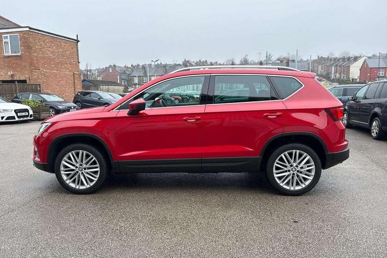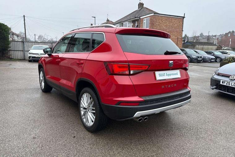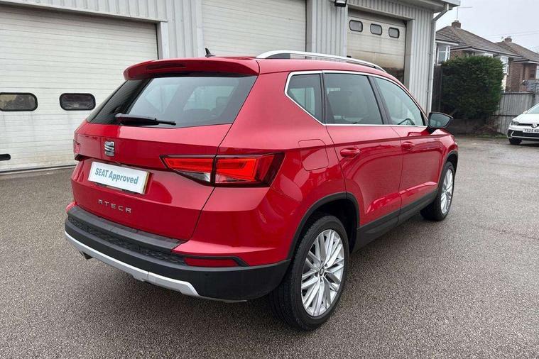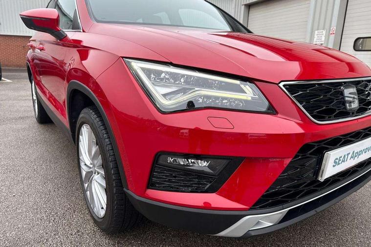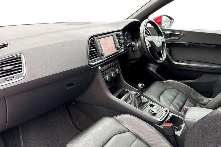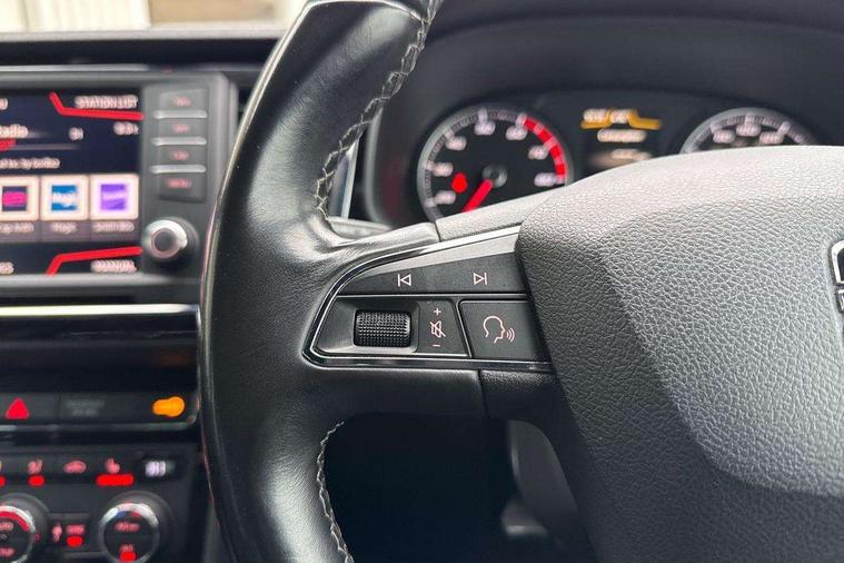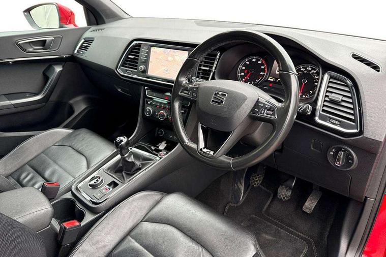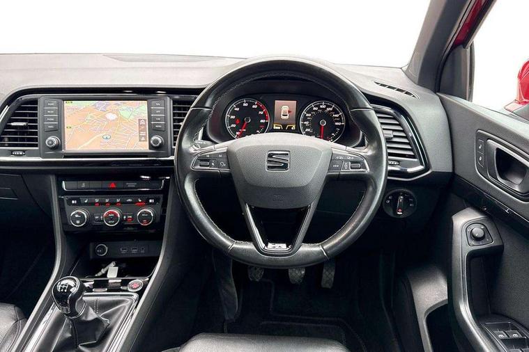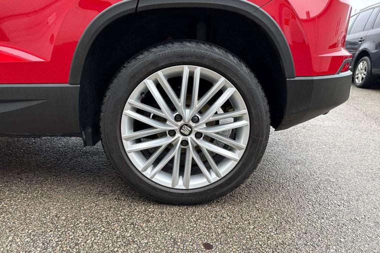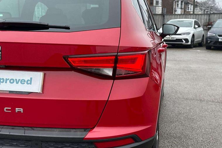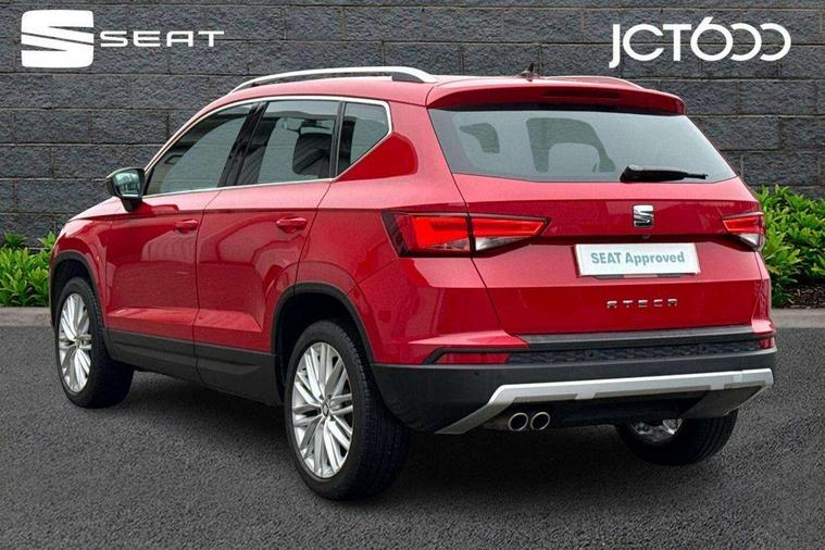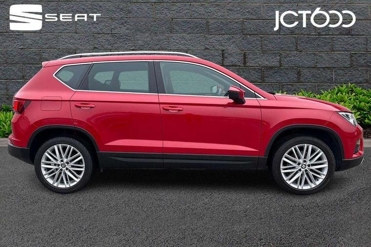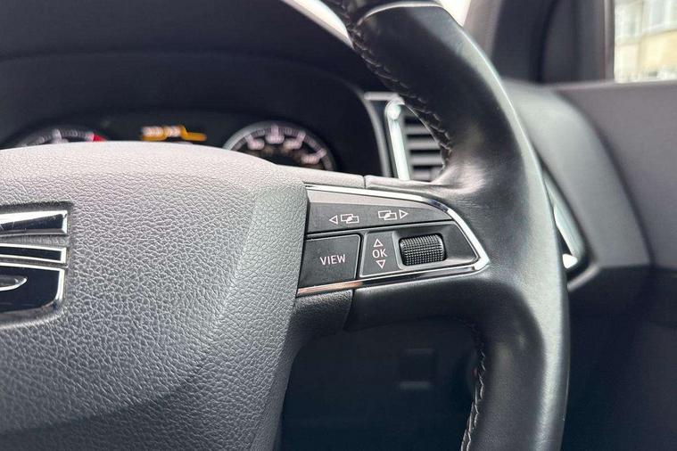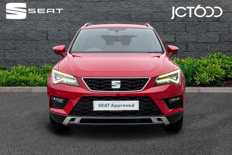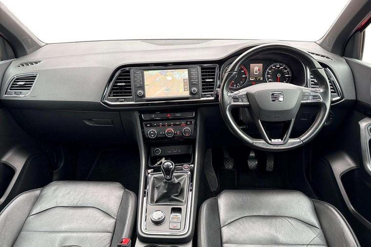 'Lights On' Reminder warning buzzer, Apple car play/Android Auto, Driver alert system, Low fuel warning light, Multi function display, Outside temperature gauge, Progressive power assisted steering, Rear parking sensor, Rear view camera, Remote fuel flap release, SEAT Drive profile, SEAT logo boot release, Trip computer, Comfort suspension, XDS electronic differential lock, 2 USB sockets in rear, Mirror link app interface, Steering wheel mounted audio/phone controls, Aluminium front door sills, Aluminium roof rails, Body colour bumpers, Body colour door handles, Body colour door mirrors, Chrome side window trim, Chromed centre radiator grille surround, Dark tinted rear windows, Electric folding door mirrors, Electrically adjustable and heated door mirrors, Front and rear electric windows, High gloss black grille, LED daytime running lights, LED front fog lights with static cornering light function, LED Headlights, LED tail lights, Rear wash/wipe, Twin chromed exhaust pipes, Welcome lighting, 12V power point front, 3 height adjustable rear headrests, 4 Lashing eyes in boot, 60/40 split folding rear seat, Active head restraints, Adjustable front armrest with storage compartment, Advanced multicolour ambient light with LED interior light and LED illuminated glovebox, Black roof lining, Card holder, Driver/passenger lumbar adjustment, Driver/passenger sunvisors with illuminated vanity mirrors, Dual zone climate control, Footwell illumination, Front cupholders x 2, Front reading lights, Front seat back storage pockets, Height adjustable front headrests, Height adjustable passenger seat, Illuminated boot, Isofix child seat preparation, Leather steering wheel and gear knob, Leather upholstery, Rear armrest, Rear central air outlet, Rear reading lights, Sports seats, Convenience pack - Ateca, Seat Media System Plus pack - Ateca, Winter Pack - Ateca, 3x3 point rear seatbelts, ABS, Auto hold function, Automatic post collision braking, Curtain airbags, Driver/Front Passenger airbags, Drivers knee airbag, Electronic parking brake, Electronic stability control, ESP+EBA, Front and rear seatbelt reminder, Front assist including city emergency braking, Front passenger airbag deactivation, Front side airbags, Hill hold control, Predictive pedestrian protection, Tiredness recognition system, Traction control, Tyre pressure monitoring system, Immobiliser, Keyless entry and go and connectivity hub with wireless charger, Locking wheel bolts, Remote central locking, Volumetric alarm with back up horn, Chrome effect dashboard facia,