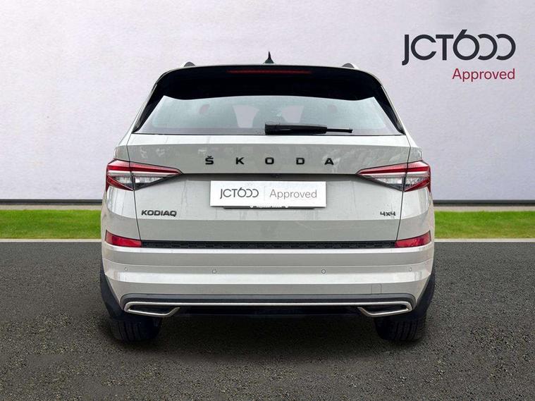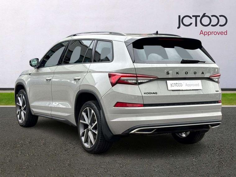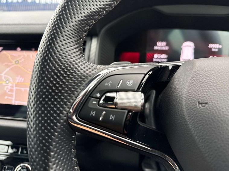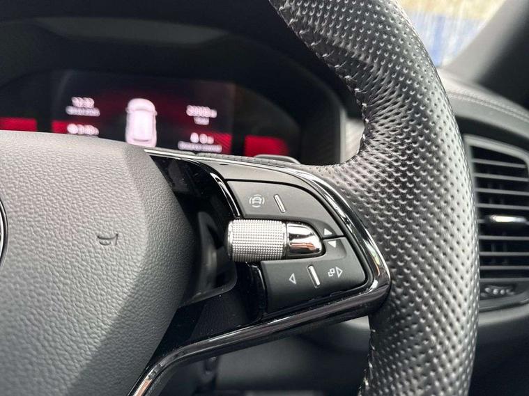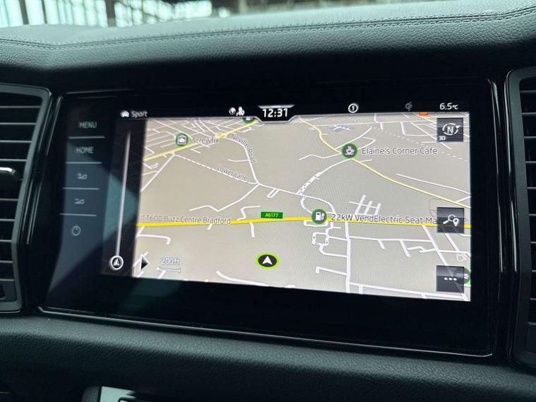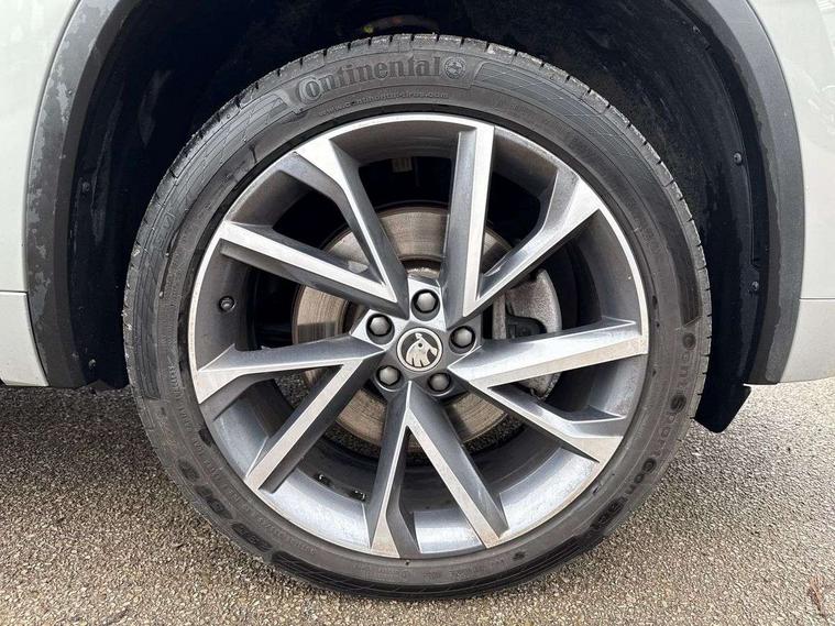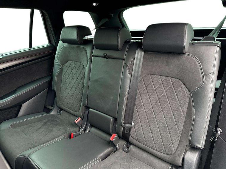 Bluetooth system, Columbus satellite navigation with 9.2" touchscreen, integrated Wi-Fi, web radio, Digital voice enhancement, E-call, ECO Stop/start function, Exterior temperature indicator, Progressive steering, Rear view camera, Smartlink wireless for apple carplay and wired for android auto, Speed limiter, Tailgate unlocking from outside, USB C Port x 2 in front centre console, Wireless charging, 8 Speakers, DAB Digital radio, Aero front windscreen wipers with intermittent function, Aero rear window wiper, Auto dimming rear view mirror, Black roof rails, Black sports styling including front grille and window surrounds, Black wheel arch surrounds, Body colour bumpers, Body colour door handles, Electric adjustable/heated/folding door mirrors, driver side auto dimming with boarding sports and memory function, Electric front and rear windows, Extended rear spoiler with finlets in gloss black, Front fog lights, Full LED matrix headlights with AFS (adaptive front light system), cornering function and AWL (all weather lighting system), Gloss black door mirrors, Headlight washers, Heated rear window, Invisible tailpipe, LED daytime running lights, LED rear fog light, LED third brake light in rear spoiler, Light assistant (coming/leaving home/tunnel light), Off-road style lower front bumper element, Privacy glass, Rain and light sensors, Rear diffuser, Rear LED lights (high functionality) with welcome effect and dynamic indicators, Rear side wing doors, Safety reflectors on front and rear doors, Sportline badge on front fender, Sports front and rear bumpers including lower rear chrome strip, Tailgate lettering in Black, Window control switches with black trim, Without engine designation, 12V socket in boot, 2 rails with 2 hooks, 2 seat bench in 3rd row, 3 seat bench in 2nd row, 4 foldable roof handles with rear coat hooks, 60:40 foldable rear seat with sliding adjustment and backrest angle adjustment, Aluminium pedals, Black roof headlining, Bottle holders in door panel in the 1.5 litre front and 1 litre rear, Cargo storage compartments, Chrome headlight control button, Chrome interior door handles, Coat hooks on B pillar, Covered storage compartment on driver side, Front centre armrest with storage compartment, cup holder and 12V socket, Front courtesy lights, Gear shift lever with chrome frame and black gloss insert, Grey stitching in front and rear armrests and door armrests + door inserts, Height adjustable front headrests, Illuminated and cooled glovebox, Illuminated luggage compartment, Isofix child seat fittings in outer rear seats with top tether, Manually adjustable steering column, Microsuede door panels, Net programme in boot (1x horizontal Net, 2x vertical Nets), Overhead glasses storage compartment, Pollen filter, Rear centre armrest with cupholders, Single front passenger seat, Sliding trunk cover, Small Bags on the inner sides of the front backrests, Sports seats, Sunvisors with illuminated vanity mirrors, Three rear height adjustable headrests, Ticket holder on A Pillar, Umbrella in door panel, Variable boot floor, LED Interior light pack - Kodiaq, Auto door release and activation of warning lights in the event of an accident, Child locks on rear doors, Driver and front passenger airbag with knee airbag and front passenger airbag deactivation, Electronic parking brake with hill start assist, Emergency rear braking signal, ESC (incl. ABS+MSR+ASR+EDS+HBA+DSR+RBS+MKB), Front assist with autonomous emergency braking, Front side airbags with curtain airbags, Fuel cut off safety device, Height adjustable front 3 point seatbelts + pretensioners, Hill hold control, Rear disc brakes, Safety vest holder in door, Seat belt reminder for all seats, Three point rear seat belts, Two tone horn, Tyre pressure monitor, Alarm with interior monitoring and tilt sensor with safe function, Anti-theft wheel bolts, Immobiliser, Keyless entry and start system (KESSY), Remote central locking with 2 keys, Black air vent surround, Carbon finish dashboard and door inserts, Grey stitching in dashboard, 20" Vega Anthracite alloy wheels, Temporary spare wheel (space saver),