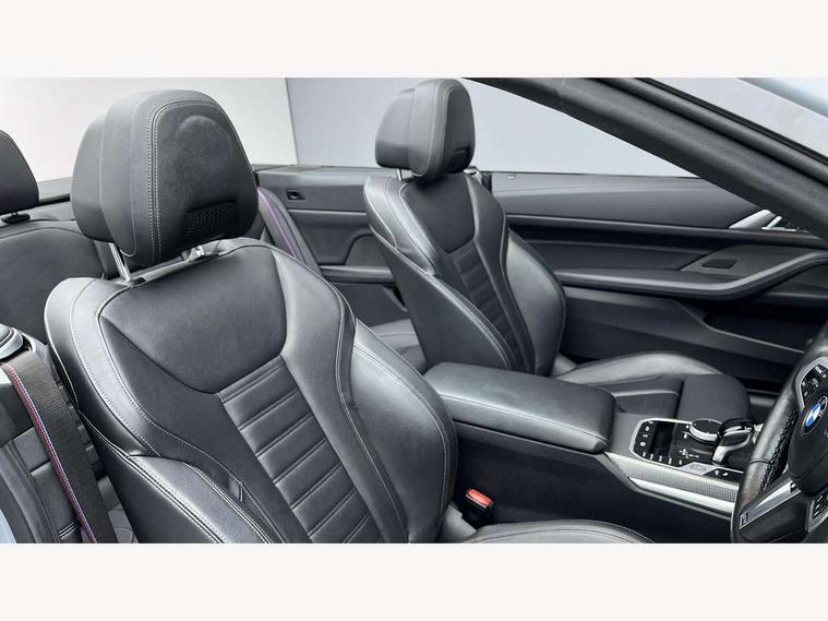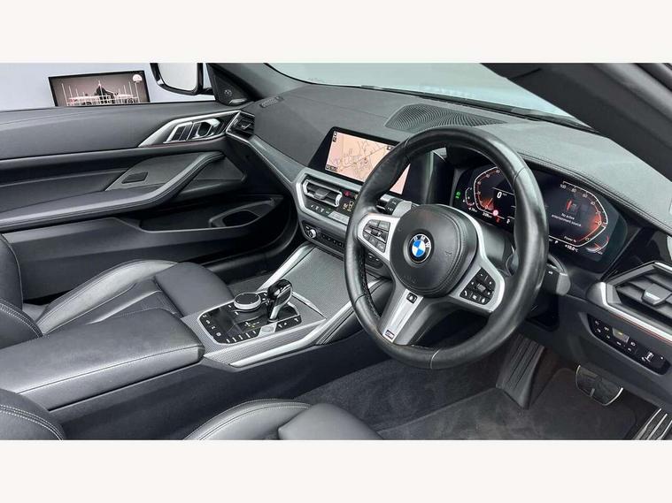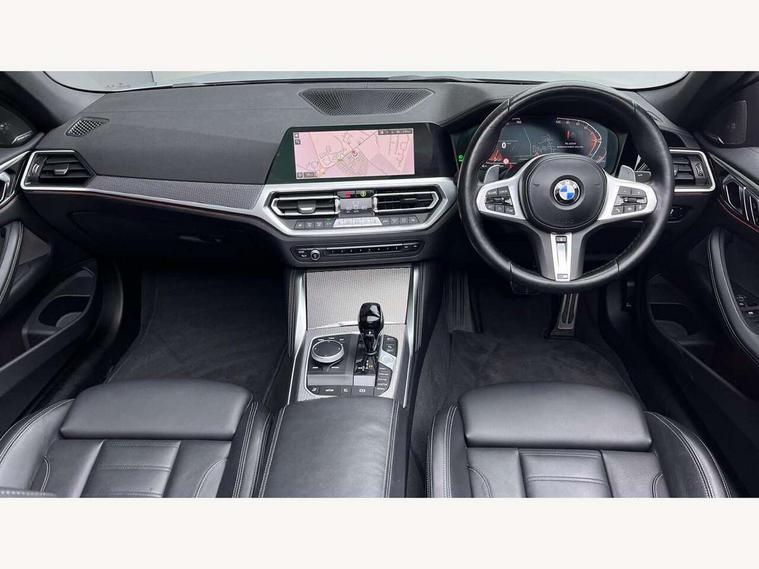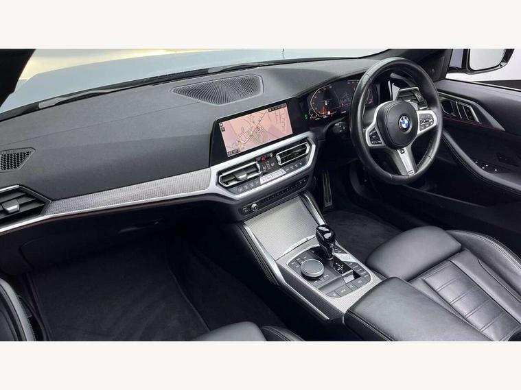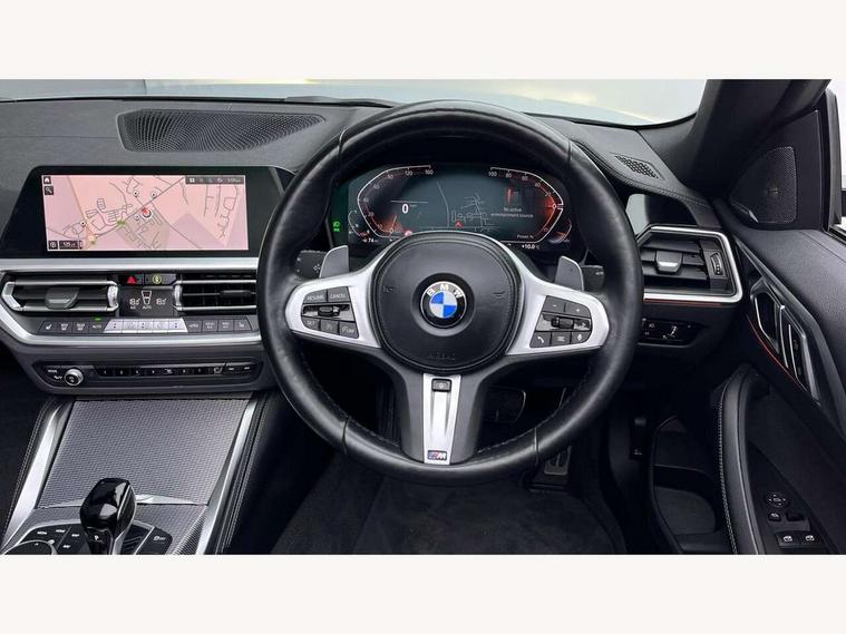 Active guard plus, Attentiveness assist, Auto start-stop, BMW ConnectedDrive online services, BMW iDrive controller on centre console, BMW Live Cockpit Professional Nav with 12.3" instrument display + 10.25" display, Intelligent Voice Assist, BMW OS 7, HDD, 2USB, 4G LTE connect, BMW service history, BMW Teleservices, Brake pad wear indicator in front and rear, Check Control warning system for monitoring of lights and door/luggage compartment open warning, Condition based service, Cruise control with brake assist, Electric power steering with Servotronic steering optimised at all speed ranges, Gearshift time display in manual mode, Instrument cluster with speedometer with mph readout, tachometer, fuel gauge and oil temperature gauge, Integrated owners handbook, Oil sensor for level and grade, warning by check control system, On board computer - average speed, fuel consumption, outside temp display with acoustic warning, clock/date, service interval, odometer/trip meter, Optimum shift indicator, Variable sport steering, 8 speed automatic steptronic transmission with gearshift paddles, Balanced 50/50 weight distribution, Double VANOS, Driving experience modes - Comfort, ECO PRO, Sport and Sport+ mode, Electronic differential lock control (EDLC), High precision injection, Low centre of gravity, M sport suspension, Petrol Particulate Filter, Stroke dependent dampers, VALVETRONIC engine management, DAB tuner, Electronic service booklet, Acoustic glazing, Automatic headlight beam throw control with load dependent regulating reaction, dynamic compensation of braking dive and acceleration squat, Automatic windscreen wipers and automatic headlight, Automatically dimming electrochromatic rear view mirror, BMW emblem on engine compartment lid and tailgate, BMW kidney grille with mesh grille front side of the nuggets in matt aluminium and frame in chrome high gloss, Body colour fuel filler flap, Body colour roof fin, Brushed aluminium inserts in the front door sill finishers with BMW designation, Dynamic brake lights, Electric windows - front and rear, with open/close fingertip control, anti trap facility and comfort closing function all round, Exhaust tailpipe - split left and right, Exterior mirrors - electrically folding with anti-dazzle, Fading support, Follow me home headlights, Front and rear bumper system, Front apron plastic in body colour, Green tinted heat protection glazing, High gloss shadow line exterior trim, Illuminated bow type door handles in body colour drivers side with door lock, Interior rear view electrochromatic mirror with automatic anti dazzle function, LED daytime running lights, LED front fog lights, Licence plate panel integrated into front bumper and tailgate, Lightweight engineering, M designation on front side panels, left and right, Model designation on right side of tailgate, One piece front bumper cover including towing eye cover in body colour, Preparation for high beam assistant, Rear boot, Reversing light, Side frame decorative moulding black matt, Third brake light, Two part LED tailights in L-shape with components in smoked glass, brake light, LED turn indicator and rear fog light, Visible VIN plate, Welcome lights in interior and door handle area, Widened track and increased camber values for max transverse dynamics, agility and steering precision, Window recess cover black high gloss, Windscreen wipers with integrated heated washing jets, 12V power socket in front centre console, 2 2nd row folding seats, 2 front cupholder in centre console with clamping elements and matt black inlay, 2 Rear seat headrests, 2nd row centre armrest with built-in cupholders, 3 spoke M sport leather multifunction steering wheel, 3 zone automatic air conditioning, 4 pieces lashing eyelets in luggage compartment, Ambient lighting with welcome carpet light, Armrest integrated in front and rear door trim + front centre console armrest, Electric seat adjustment with memory, Four grab handles integrated in roof lining, Front and rear door pockets, Front and rear footwell lights, Front and rear reading lights, Front headrests, Front sport seats, Heated driver and front passenger seats, Height adjustable mechanically and infinitely variable steering column, Illuminated armrest storage compartment, Illuminated glove compartment with separate small compartment, Luggage compartment light, Make-up mirror lights, Single front passenger seat, Storage compartment in rear centre console, Sunvisors with vanity mirrors and ticket pocket, Toolkit located in luggage compartment, USB type - C cable charging function in the rear centre console, Velour front floor mats, Vernasca leather upholstery, Connected professional package - 4 Series, M sport exterior styling pack - 4 Series, Park assist pack - 4 Series, 2 x 3-point rear seatbelts, Battery safety cut-off, BMW emergency call, Brake energy regeneration, Braking pre-tensioning, Child proof rear door locking, Child seat ISOFIX attachment for the two outer rear seats, Coasting in idle in ECO PRO mode, Cornering brake control (CBC), Crash sensor activating of airbags, Unlocking doors, hazard warning lights, interior light, safety battery terminal, Driver and front passenger side airbags, integrated in the door side seat backrest bolsters for all seat variants, Driver/Front Passenger airbags, Dry braking, Dynamic brake control, Dynamic stability control + (DSC+) - Anti-lock Braking System (ABS) with brake assist and cornering brake control + Automatic Stability Control (ASC), Dynamic Traction Control - DTC, Electric parking brake including automatic hold function and automatic release of the parking brake when driving off, Front and rear ventilated brake disc, Front passenger manual airbag deactivation, Head airbags for all 4 outer seats, Hill start assistant, Seat belt security check for driver and front passenger, Seat belt with belt stopper, pyrotechnic belt tensioners and belt force limiters, Side impact protection, Tyre pressure monitoring with three