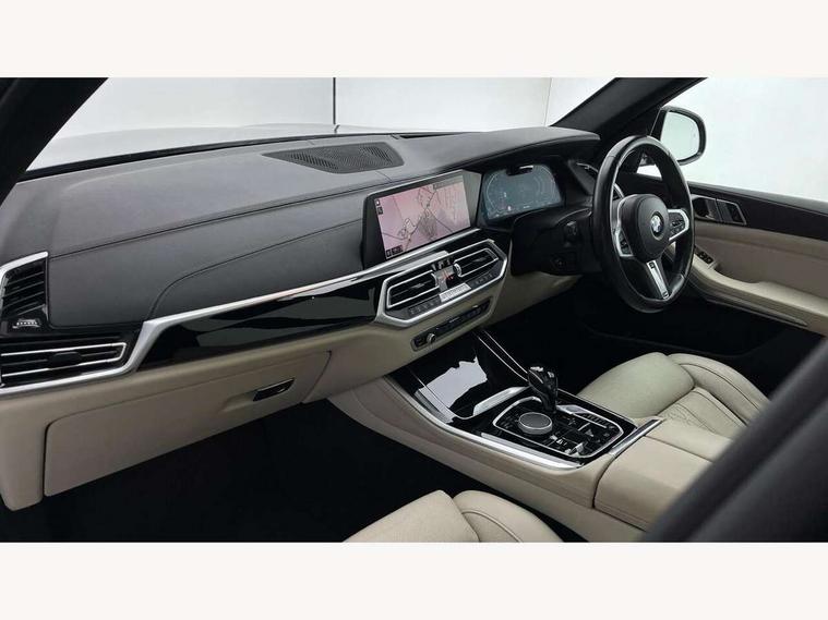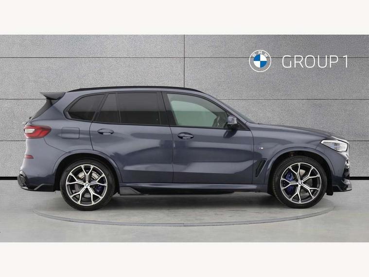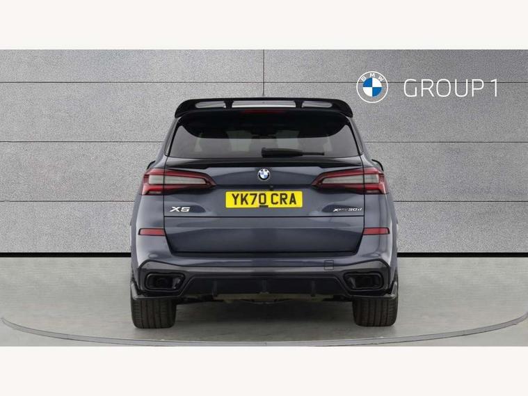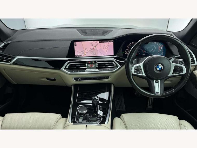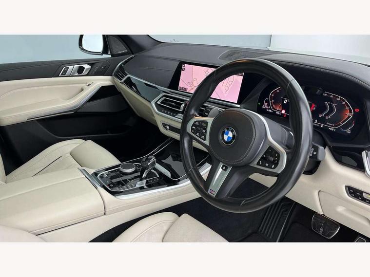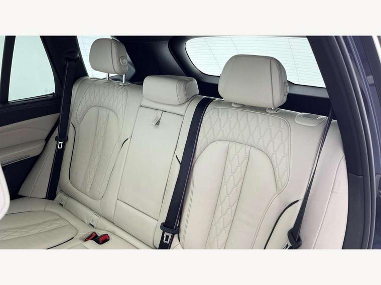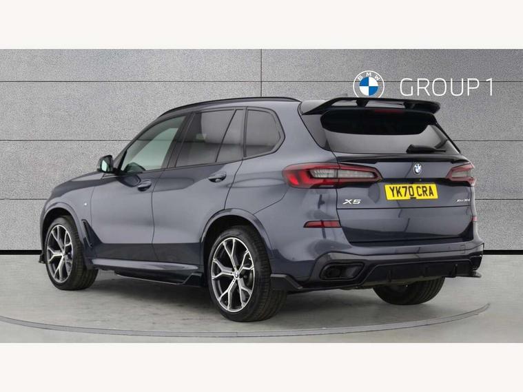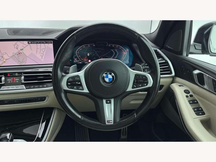 20GB hard disc drive (HDD) memory, Active guard plus, Attentiveness assist, Automatic tailgate with top hinged section open and manual bottom hinged section, BMW ConnectedDrive online services, BMW digital live cockpit professional - 12.3" digital instrument panel and 12.3" CID, with touch/voice command, BMW legal emergency call, BMW Teleservices, Brake force display, Brake pad wear indicator warning light, Enhanced bluetooth hands free facility with Telephony wireless charging, Front/rear park distance control, Galvanised plastic keyfob, iDrive touch controller with shortcut buttons, Infinity symbol with line graphic on reset of average consumption, Lights on warning, Oil sensor for level and grade, On board computer inc. average speed, fuel consumption, liquid crystal Info display, journey computer, outside temperature display, personal profile, Parking assistant with ultrasound based assistance system, reversing assistant, lateral parking aid and rear view camera, Service interval indicator, Speed limit info display, Wi-Fi hotspot, 48V Mild hybrid technology, Adaptive 2-axle air suspension, Diesel particulate filter, Double wishbone front axle, Drive performance control with ECO PRO comfort + sport mode, Eight speed steptronic sport automatic transmission and gearshift paddles on the steering wheel, Safety battery terminal clamp, Variable vane geometry, DAB Tuner enables digital radio reception, Favourite buttons, Hi-Fi loudspeaker system, USB connection, USB type A 1.5A in cupholder, USB Type C 3A in centre armrest, Active Air Stream kidney grille with high-gloss chrome, Adaptive air flap control bar in high-gloss black, Automatically dimming rear view mirror, Body colour bumpers, Body colour door handles, Dynamic brake lights with LED technology, Exhaust tailpipes - single, left and right with Chrome finisher, Follow me home headlight function, Front and rear electric windows with open and close fingertip control, anti trap facility and comfort closing, Heated windscreen washer jets, High gloss black outer and central air intakes on front bumper with pearlescent chrome finish, High gloss black Side elements, LED daytime running lights, LED fog lights, LED rear lights, M aerodynamic body styling, M designation on left and right front side panels, Pearlescent chrome front grille bars, Rain sensor with automatic headlight activation and windscreen wiper control, Satin aluminium side window graphic, Third brake light in rear spoiler, Variable intermittent rear wash/wipe, Welcome light carpet, X5 on left tailgate, xDrive designation on right tailgate, 12V - Power sockets with 2x centre console and 1x luggage compartment, 40:20:40 split folding rear seats, Ambient interior lighting with 6 pre-designed selectable lights including dynamic function, Centre and rear interior light, Child seat ISOFIX attachment with rear outer seats includes top tether, Electric front seat adjustment with driver and front passenger memory function, Electrical steering column with adjustable height and length with activation and control on the steering column, Foldable rear centre armrest with 2 cupholders and storage compartment, Front and rear cupholders x 2, Front and rear door pockets, Front and rear door sill inlays with illuminated BMW M designation, Front and rear side armrest integrated into door trim, Front footwell lights, Front reading lights, Light inside glove compartment, Lockable glove compartment, Luggage compartment floor panel with integral storage tray, Luggage compartment lighting, M leather steering wheel, M specific key, M specific pedals, M specific steering wheel, M specific velour floor mats, Make-up mirror lights, Multifunction controls for leather steering wheel, Multifunctional hooks, Rear head restraints, Seat back with flap pocket, Securing rings in luggage compartment, Storage bins on all doors, Storage tray and compartment with cover in centre console, Sunvisors with illuminated vanity mirrors, Toolkit located in luggage compartment, Connected Package Professional - X5, Expanded exterior mirror pack - X5/X5 M, Non-smokers pack - X5, Airbags - driver/front passenger, rear and side, first and second row seats head airbags, front passenger seat airbag deactivation + knee airbag, Anti-lock braking system (ABS), Automatic Stability Control (ASC), Brake drying, Brake energy regeneration, Brake fade compensation, Braking pre-tensioning, CBC - (Cornering brake control), Crash sensor activating central locking release, hazard warning lights, fuel cut off, interior lighting + activation of safety battery terminal clamp, Deformation zones - front and rear with door reinforcements and bumpers up to 2.5 mph, DSC - Dynamic Stability Control, Dynamic brake control, Dynamic Traction Control - DTC, Electromechanical parking brake with automatic drive away release and auto hold function, Electronic brake force distribution, Front and rear seatbelts with seatbelt stopper, seatbelt tensioner for front and outer rear seats and belt force limiter, Front head restraints with anti-whiplash, Height adjustable front seatbelts, Hill start assistant, Integrated brake system, M Sport braking system in blue high gloss + blue painted brake calipers with M designation, Mechanical child proof lock on rear doors, Passive protection for pedestrians, Seat occupancy detection for driver and passenger side, Side impact protection, Three 3 point inertia reel seatbelts, Two tone horn, Tyre pressure monitoring system, Ventilated front and rear disc brakes, Warning triangle and first aid kit, Closing system with central locking, Driver and front passenger door centre lock switch, Locking wheel bolts, Thatcham 1 alarm system with remote control and engine immobiliser, Start/stop toggle diamond shaped trim finisher in pearl chrome,