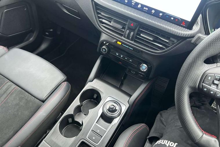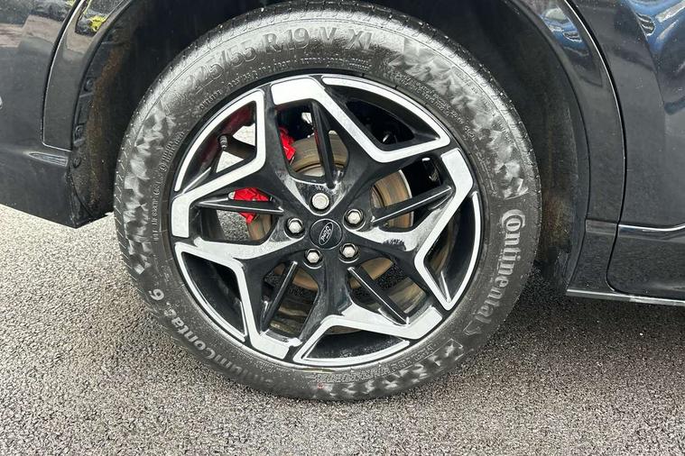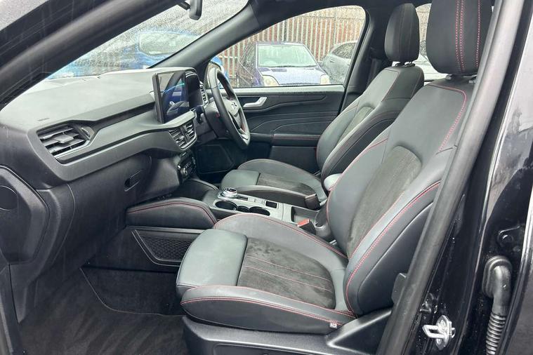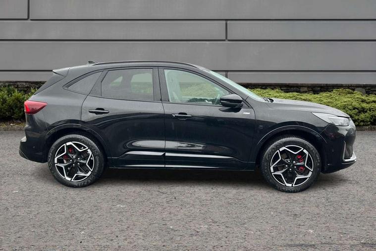 12.3" digital colour instrument cluster, 360 degree view camera, e-Call (emergency call), Ford easy fuel, Ford SYNC 4 Navigation with 13" touchscreen, DAB radio, emergency assistance, Andriod Auto/Apple CarPlay, 5G modem & Ford Pass connect, Front and rear parking sensors, Hands free power tailgate, Lane centering assist, Lane keeping aid with lane departure warning, Power assist steering, Selectable drive modes, Service interval indicator, 3-Pin Home charge cable (230V/16A Domestic socket), Sports suspension, Twist beam rear suspension, B&O premium audio system with 10 speakers, subwoofer and 2 USB ports, Auto headlamps with high and low beam, Black roof rails, Body colour bumpers, Front LED fog lamps, Large rear spoiler, LED daytime running lights, LED rear lights, Pop out door edge protectors, Power front/rear windows with global close, Power heated folding door mirrors with puddle lights, memory function and camera, Power opening panoramic roof, Quickclear heated windscreen, Rain sensing wipers, Rear privacy glass, Rear side wing doors, Rear wiper, ST-Line body styling kit, Third brake light, 12 way ergonomic power adjust driver's seat with memory (AGR certified), 12 way ergonomic power adjust passenger seat (AGR certified), 2nd row sliding seats, Electronic automatic temperature control (EATC), Front and rear head restraints, Partial premium touch sensico upholstery, Rear centre head restraint, Single front passenger seat, Sports seats, Driver assistance pack with intelligent adaptive cruise control - Kuga FHEV/PHEV, Winter pack - Kuga, 3x3 point rear seatbelts, Airbags - front driver/passenger, front and rear curtain, Drivers knee airbag, Dynamic brake support, Electronic stability control (ESC) and ABS, Evasive steering assist, Ford MyKey Gen 2 safety system, Manual child proof rear door locks, Pre collision assist with autonomous emergency braking, Rear seat Occupancy alert, Red brake calipers, Tyre pressure monitoring system, Engine immobiliser, Keyless entry and Ford power start button (Keyless start), Locking wheel nuts, Remote powered central double locking doors, Thatcham category 1 alarm,