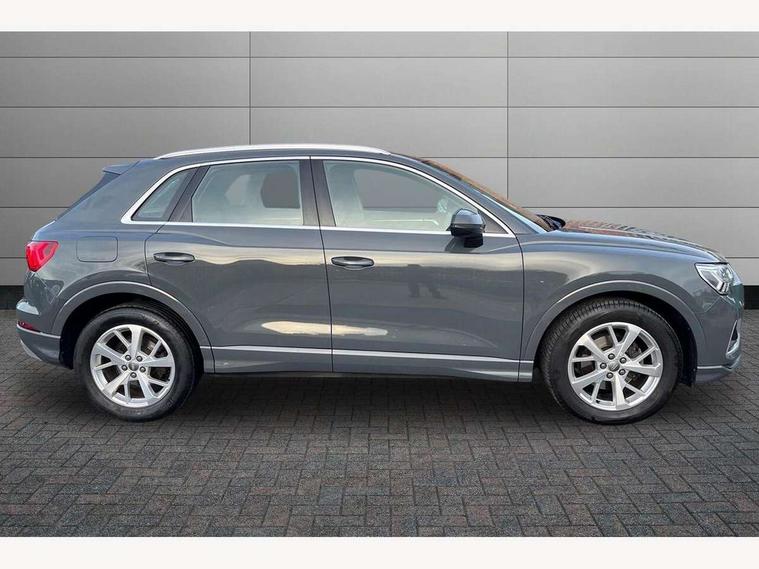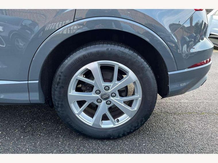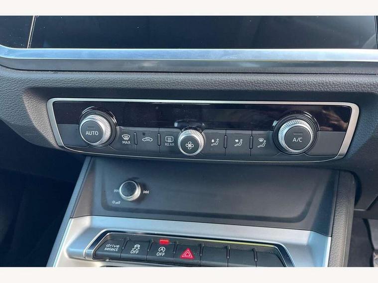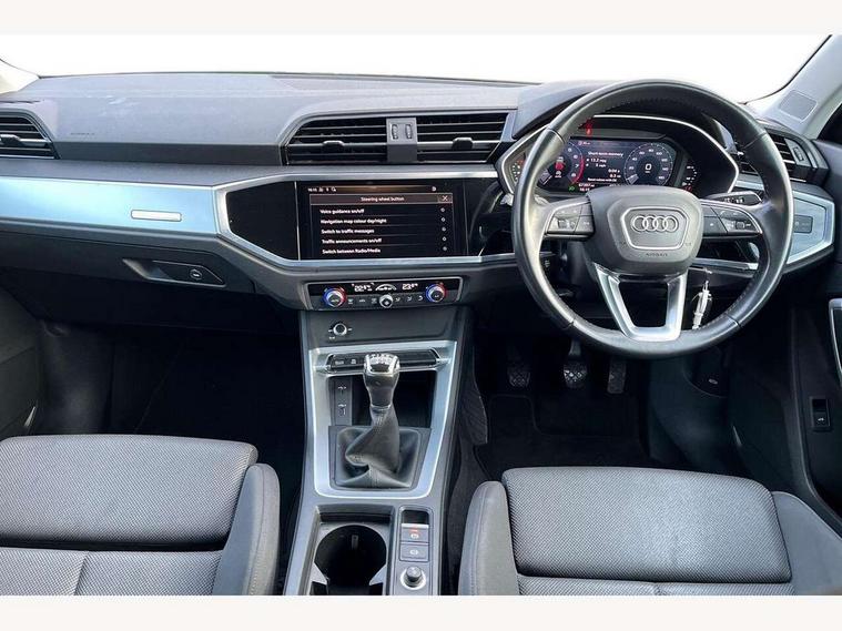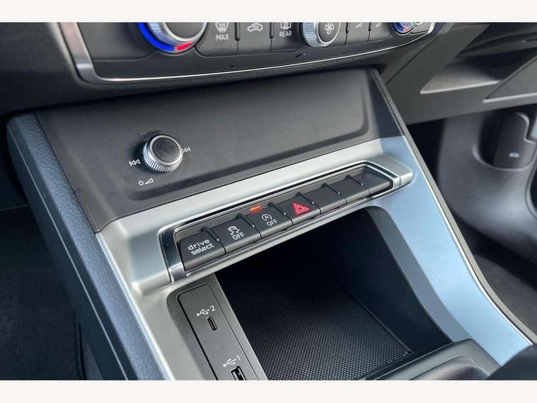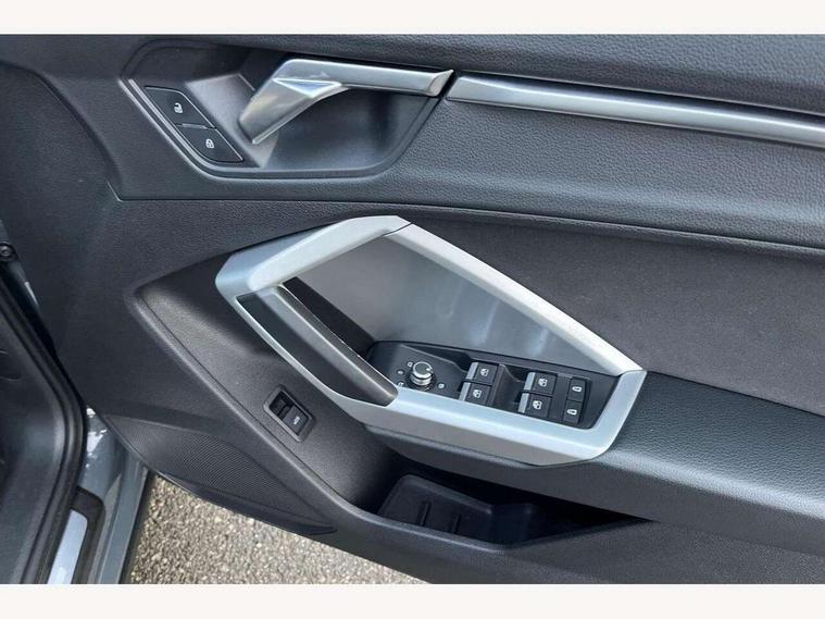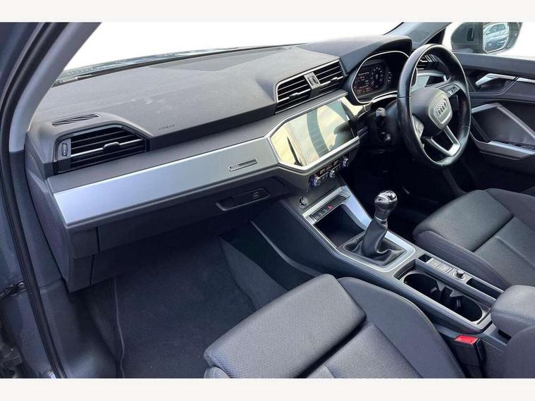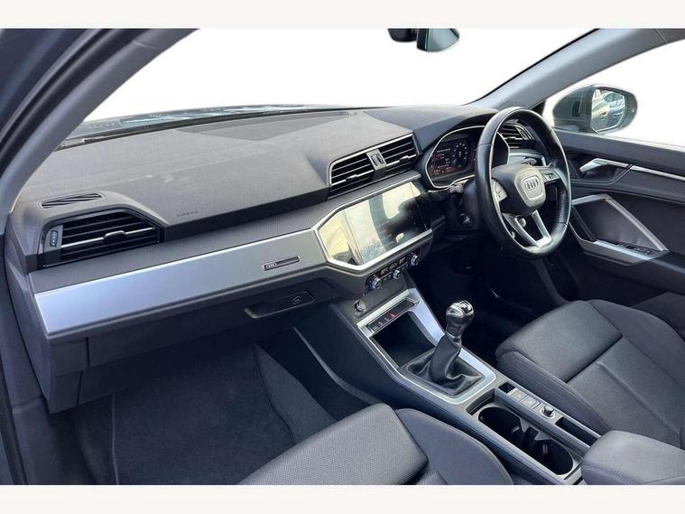 Audi connect safety and service (e-call), Audi drive select, Audi lane departure warning, Audi side assist, Audi smartphone interface, Audi Virtual Cockpit - 10.25" display, Bluetooth interface, Camera based traffic sign recognition, Cruise control + speed limiter, MMI navigation plus with MMI touch, Power opening/closing tailgate, Progressive steering, Rear parking sensors, Service interval indicator, Stop/start system, Voice control system, Standard suspension, 1 x USB type C and 1 USB type A charging points, 6 speakers, DAB digital radio module, Acoustic windscreen, Aluminium roof rails, Aluminium window trim, Auto dimming rear view mirror, Body coloured bumpers, Electrically adjustable and heated door mirrors with integrated LED side indicators, Front and rear electric windows, Front fog lights, Front side air inlets in matt selenite silver, Front spoiler in matt selenite silver, Grille vertical bars in aluminium silver/Matt, High gloss black finish B and C pillars, LED headlights with LED daytime running lights and dynamic rear indicator, LED rear lights, Rain and light sensors, Rear diffuser strip in selenite silver, Titanium black radiator grille, 12V socket in rear centre console, 40:20:40 split folding rear bench seat, Adjustable rear seat bench/backrest, Aluminium door sill trims, Dual zone climate control, Front and rear headrests, Front and rear roof module including reading lights, Front and rear velour floor mats, Front centre armrest with storage compartment and angle adjustment, Glove compartment lighting, Height and reach adjustable steering wheel, ISOFIX child seat mounting and Top Tether with front passenger airbag deactivation, Luggage compartment light, Lunar silver cloth headlining, Manual front seats with height adjustment, Stainless steel luggage compartment sill finisher, Non smoking pack - Q3, 3x3 point rear seatbelts, 6 airbags - Driver, front passenger, curtain and side windows, Audi pre-sense front with pedestrain and cyclist recognition, Electrically operated child locks on rear doors, Electromechanical parking brake, Electronic stabilisation control including ABS, ASR and EDL, Hill descent control, Hill hold assist, Pre sense basic, Seatbelt monitoring, Tyre pressure warning, Warning triangle and first aid kit, Anti theft alarm, Anti theft wheel bolts, Remote central locking, MMI touch colour display in gloss black with aluminium surround,