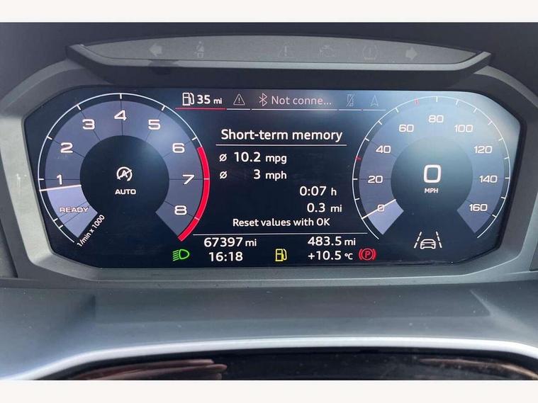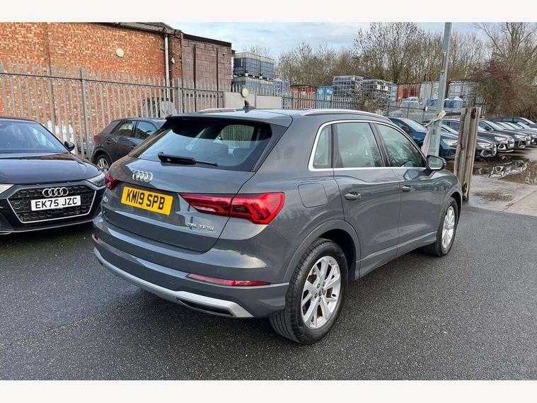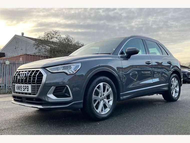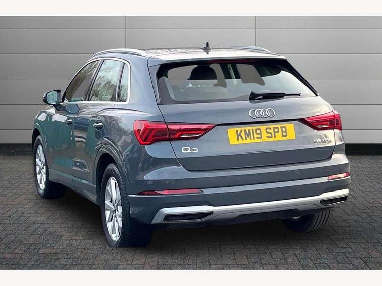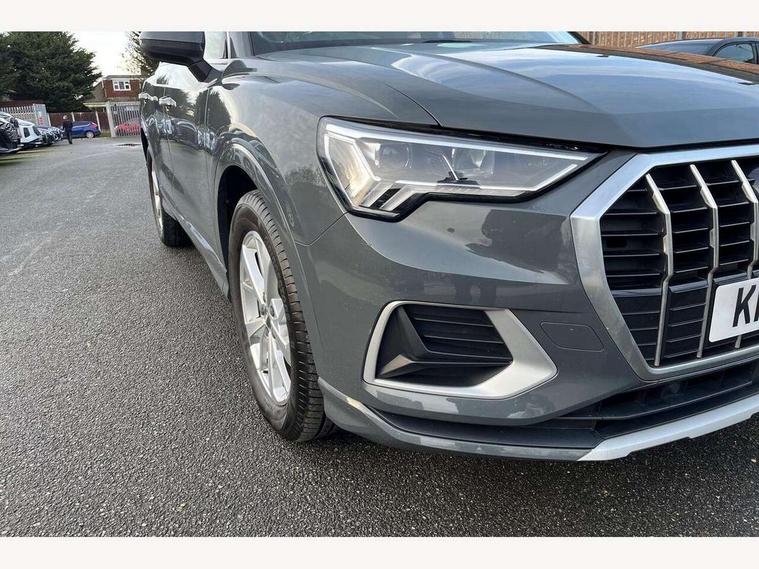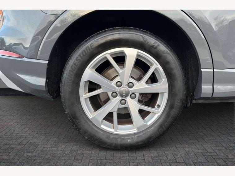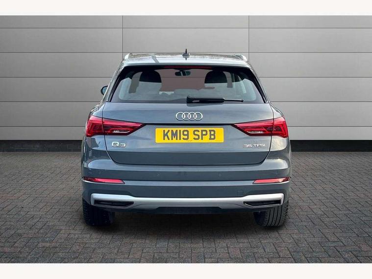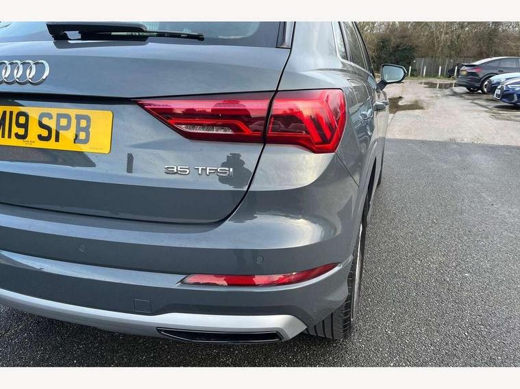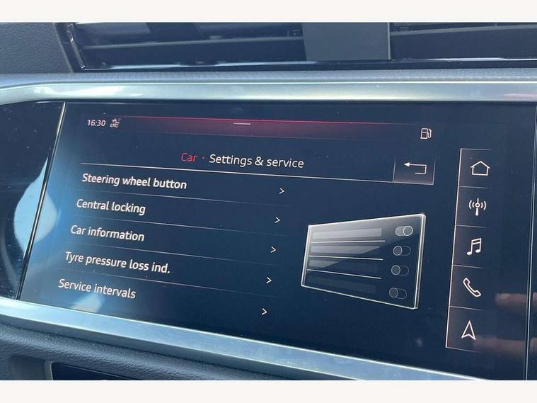 Audi connect safety and service (e-call), Audi drive select, Audi lane departure warning, Audi side assist, Audi smartphone interface, Audi Virtual Cockpit - 10.25" display, Bluetooth interface, Camera based traffic sign recognition, Cruise control + speed limiter, MMI navigation plus with MMI touch, Power opening/closing tailgate, Progressive steering, Rear parking sensors, Service interval indicator, Stop/start system, Voice control system, Standard suspension, 1 x USB type C and 1 USB type A charging points, 6 speakers, DAB digital radio module, Acoustic windscreen, Aluminium roof rails, Aluminium window trim, Auto dimming rear view mirror, Body coloured bumpers, Electrically adjustable and heated door mirrors with integrated LED side indicators, Front and rear electric windows, Front fog lights, Front side air inlets in matt selenite silver, Front spoiler in matt selenite silver, Grille vertical bars in aluminium silver/Matt, High gloss black finish B and C pillars, LED headlights with LED daytime running lights and dynamic rear indicator, LED rear lights, Rain and light sensors, Rear diffuser strip in selenite silver, Titanium black radiator grille, 12V socket in rear centre console, 40:20:40 split folding rear bench seat, Adjustable rear seat bench/backrest, Aluminium door sill trims, Dual zone climate control, Front and rear headrests, Front and rear roof module including reading lights, Front and rear velour floor mats, Front centre armrest with storage compartment and angle adjustment, Glove compartment lighting, Height and reach adjustable steering wheel, ISOFIX child seat mounting and Top Tether with front passenger airbag deactivation, Luggage compartment light, Lunar silver cloth headlining, Manual front seats with height adjustment, Stainless steel luggage compartment sill finisher, Non smoking pack - Q3, 3x3 point rear seatbelts, 6 airbags - Driver, front passenger, curtain and side windows, Audi pre-sense front with pedestrain and cyclist recognition, Electrically operated child locks on rear doors, Electromechanical parking brake, Electronic stabilisation control including ABS, ASR and EDL, Hill descent control, Hill hold assist, Pre sense basic, Seatbelt monitoring, Tyre pressure warning, Warning triangle and first aid kit, Anti theft alarm, Anti theft wheel bolts, Remote central locking, MMI touch colour display in gloss black with aluminium surround,