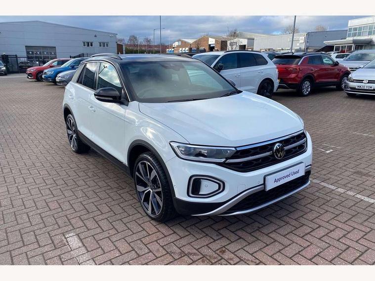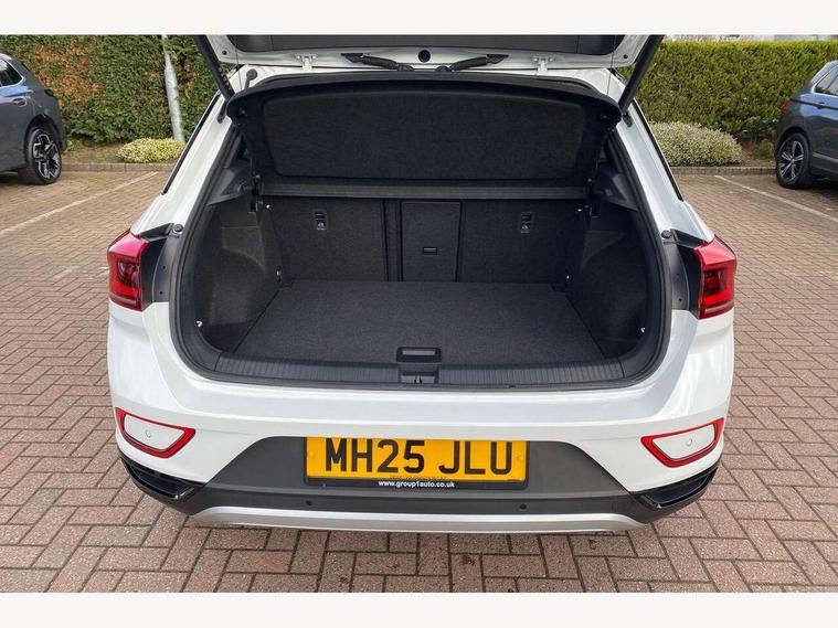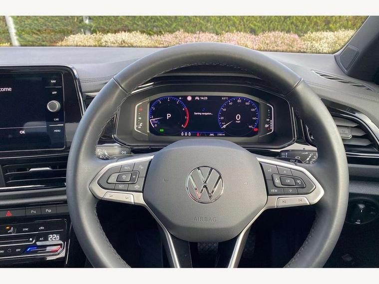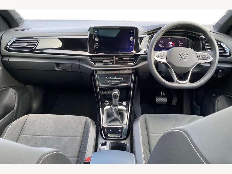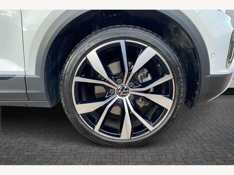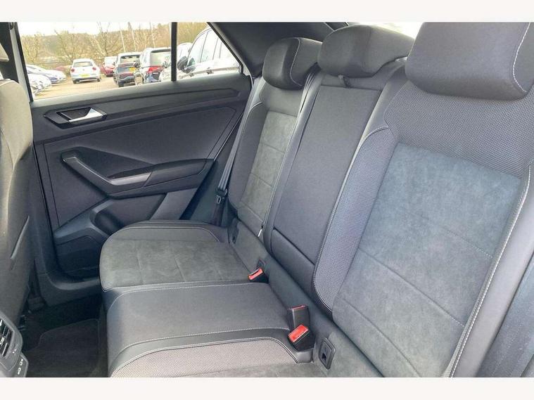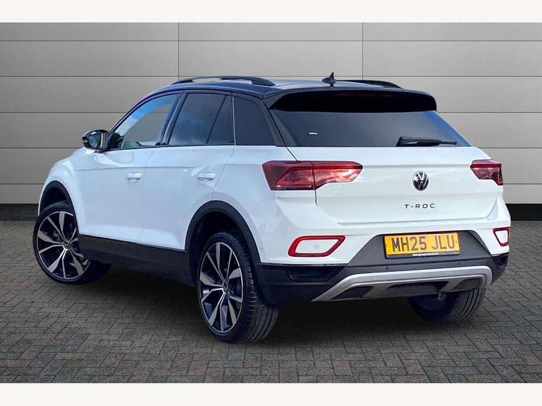 10.25" Digital cockpit pro, Advanced driver attention and drowsiness monitor, Dynamic road sign display, Emergency call service, Lane keeping system Lane Assist, Mobile phone interface, Modified key software - reduce switch off time for key status change to Long no motion, Online services, Park assist including front and rear parking sensors, Power assisted speed sensitive steering, Rear view camera, Service interval indicator, Tailgate/trunk lid release from outside, Think blue trainer driver tips and journey analysis, Warning sound and light for front seatbelts unfastened, Wireless app connect, Battery regeneration during braking, Start/stop function with battery regeneration, DAB Digital radio, Diversity antenna for FM reception, Music playback - MP3, WMA and AAC files, SD card slot, Simultaneous pairing of 2 compatible mobile devices, Title and cover art display, We Connect and We Connect Plus functionality, Adhesive film in carbon look on the C-pillars, Advanced dynamic light assist for LED matrix headlights, Auto dimming interior rear view mirror, Automatic hazard lights activation under emergency braking, Black roof rails, Body colour sports bumpers with silver metallic underbody fascia, Body coloured exterior mirror housings and door handles, Dynamic cornering light, Dynamic headlight range control with self adjusting whilst driving, Electrically adjustable and heated door mirrors, Extended roof spoiler, Exterior ambient lighting, Exterior mirrors aspherical on driver side, convex on front passenger side, External USB type C socket and charging sockets, Front windscreen wiper with intermittent wipe and 4 position delay, Heated rear window, Illuminated front grille, IQ LED matrix headlights, LED 3rd brake light, LED rear number plate lights, LED rear tail lights with dynamic turn signal, LED separate daytime running light, Light mode for poor weather, rain, fog or snow, Power windows with comfort operation and circuit breaker, Privacy glass for rear side windows and rear window, Rain sensor, Rear exhaust tailpipe, Rear fog light on one side and reversing lights on both sides, Rear side wing doors, Rear wash/wipe with intermittent wipe setting, Remote electrically foldable door mirrors, puddle lights and reverse activated passenger's door mirror, Tilting and sliding panoramic sunroof with rear panoramic sunroof, 12V power socket in centre console, 3 rear head restraints, 3 seat bench in 2nd row, 4 load lashing points in luggage compartment, Air care climatronic air conditoning system with active combination filter and 2-zone temperature control, Black roof lining, Chrome plated radiator grille inserts, air vent surrounds and light switch surrounds, Door and side trim panel with leatherette insert, Drawer under drivers seat, Front + rear carpet mats, Front centre armrest, Front comfort sports seats, Front cupholders x 2, Front footwell illumination, Front seat back storage pockets, Glove compartment door with light, Instrument lighting, white adjustable panel illumination, Interior ambient lighting and surround lighting, Interior light delay, Isofix child seat preparation, Leather gearshift handle, LED interior light with switch off delay/dimmer and 2 front/rear LED reading lights, Load-through provision with cup holder when folded down ('Unsplit rear seat bench, split folding backrest, with centre armrest), Luggage compartment lighting, Non-folding front passenger seat backrest, Single front passenger seat, Storage compartment in left and right luggage area, Storage compartment in rear doors, Storage compartments in driver and front passenger doors, Sunvisors with illuminated vanity mirrors, Variable boot floor, height adjustable and removable, Black design pack - T-Roc style design, Driver assistance pack without proactive passenger protection - T-Roc, Easy open package with safelock - T-Roc, 3 point height adj front seatbelts + pretensioners, 3 point seatbelts in outer rear with ECE label, ABS, Child locks on rear doors, City emergency braking and pedestrian monitoring, Driver and front passenger airbag with front passenger airbag deactivation, Driver and front passenger safety-optimised head restraints, Drivers seatbelt reminder, Electronic parking brake, Electronic Stability Control (ESC) inc EDL (Electronic Differential Lock) and ASR (Traction Control), Front and rear passengers curtain airbag system including front side airbags, Predictive pedestrian protection, Rear disc brakes, Two tone horn, Tyre pressure loss indicator, Volkswagen roadside assistance, Black decorative trims, Piano black decorative inserts in dashboard and front door trim panels, Tool kit, Trims for alloy wheels, Tyre mobility kit including compressor and sealing foam,