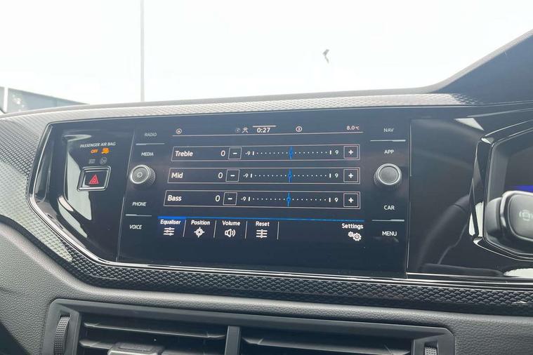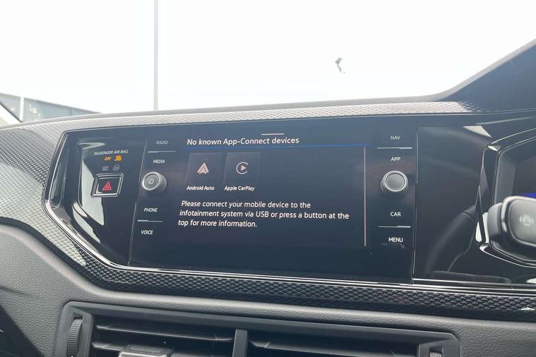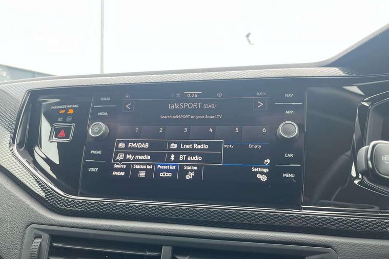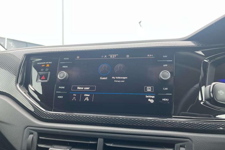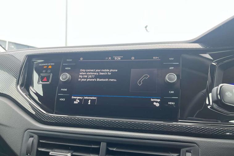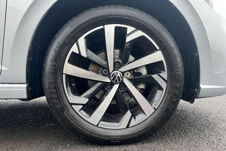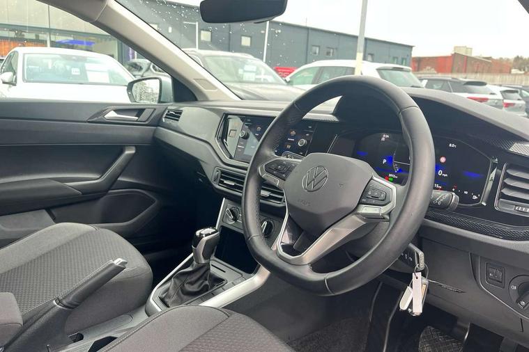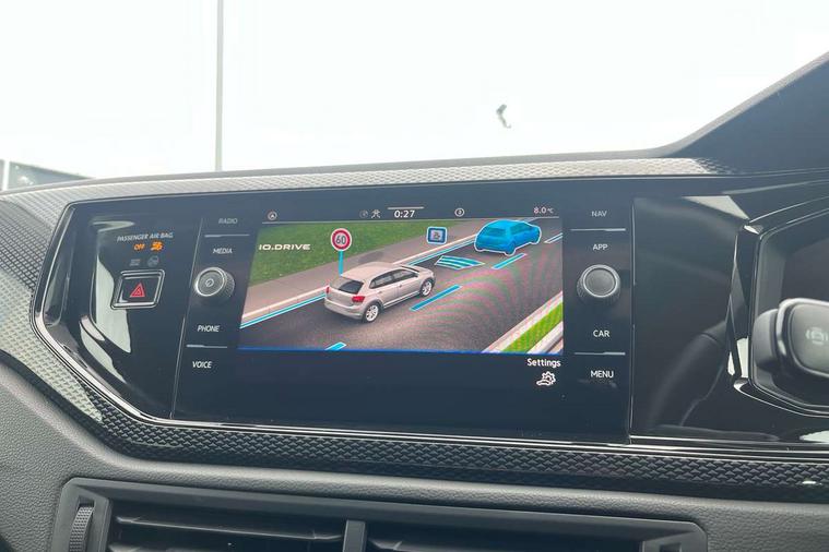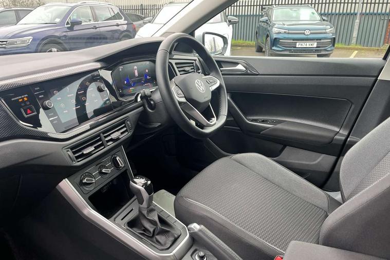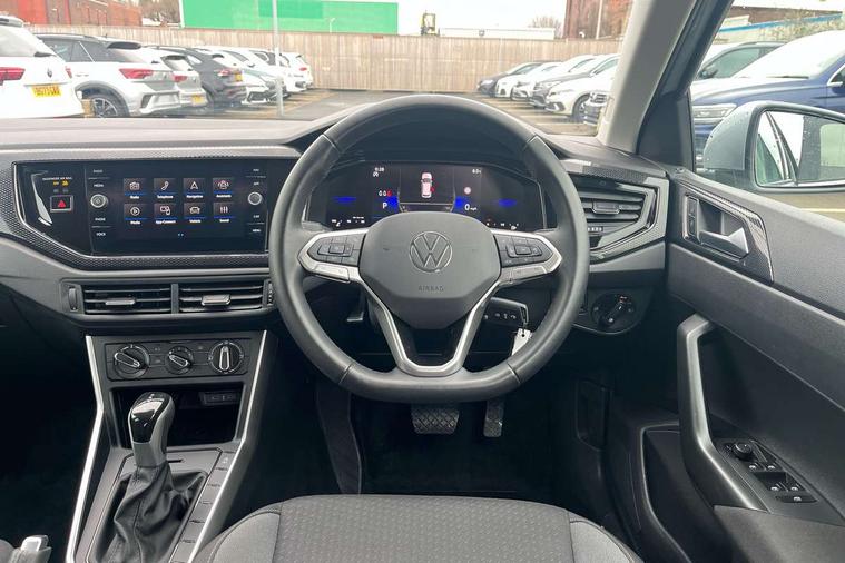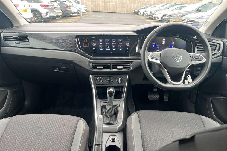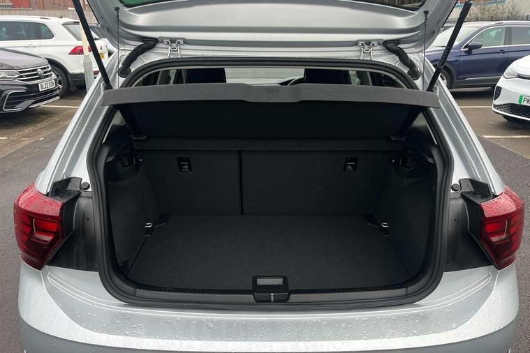 Advanced driver attention and drowsiness monitor, Bluetooth mobile phone interface, Dynamic road sign display, Emergency call service, Multifunction front facing camera for distance control, Park distance control, Power assisted speed sensitive steering, Predictive adaptive cruise control without follow-to-stop and speed limiter, Preparation for navigation system with media and internet package, Preparation for We connect and We connect plus, Rear view camera, Speedo and rev counter, electronic odometer, trip, service interval display and exterior temperature gauge, Standard rear axle, Travel Assist - Lane keeping system and traffic jam assist, Travel assist including emergency assist, Trip computer, Warning signal and warning light for front and rear seatbelts not fastened, Washer fluid level indicator, Wireless app connect, Front wheel drive, Rear shock absorpion, Start-stop system with battery regeneration (recuperation - energy recovery during braking), DAB Digital radio, Diversity antenna for FM reception, Front and rear 6 speakers, Automatic dimming interior rear view mirror, Automatic headlight control with LED separate daytime running lights with coming/leaving home function, Body colour bumpers with chrome inserts, Body colour door handles, Body colour door mirrors, Electric front windows, Engine badge deletion, Headlight range adjustment, Heat insulating and laminated safety glass windshield, LED Headlights, LED rear combination lamps, Power folding adjustable/heated exterior mirrors and front passenger exterior mirror lowering function, Rain sensor, Rear electric windows, Rear fog light, Rear side wing doors, Rear tinted glass from B-pillar backwards approx 65% tinted, Rear windscreen washer and wiper with interval delay, Third brake light, 12V power socket in centre console, 2 front and 2 rear reading lights with switch off delay and dimmer, 2 USB-C ports in the front, 2 USB-C charging sockets on the center console in the rear, 3 rear head restraints, 60/40 split folding rear seat and rear seat bench not split, Ceramique roof lining, Chrome plated radiator grille inserts, air vent surrounds and light switch surrounds, Door and side trim panel, Driver and front passenger seat height adjustment, Driver/passenger sunvisors with illuminated vanity mirrors, Front centre armrest, Front seat backrest storage pockets, Front standard seats, Handbrake lever handle in leather, Hartley/Thomas cloth upholstery, Headliner in recycled material, Isofix child seat preparation easy-fit (for two outer rear seats, and front passenger seat) compatible with I-size, Leather trimmed gear knob, Luggage compartment cover, Luggage compartment lighting, Removable luggage compartment floor, Single front passenger seat, Standard climatic zones, Standard pedal cluster, Three spoke leather wrapped multifunction steering wheel with shifting paddles, Light and vision pack - Polo, 3 point height adj front seatbelts + pretensioners, 3 point seat belt for centre rear seat, 3 point seatbelts, outer rear with ECE lable, ABS, Driver and front passenger airbag with front passenger airbag deactivation, Drivers and front passengers safety optimised head restraints, ESC (Electronic stability control) + EDL (Electronic Differntial lock) and ASR (Traction control), Extended and predictive pedestrian/ cyclist protection, Front assist with autonomous emergency braking (for Adaptive Cruise Control ACC up to 130 mph), Front curtain and side airbags with center airbag, Front disc brakes, Hill hold control, Manual child lock in rear doors, Rear drum brakes, Single tone horn, Tyre pressure loss indicator, Alarm with interior protection, Anti-theft alarm system with interior monitoring, backup horn, and towing protection, Anti-theft wheel bolts, Electronic engine immobiliser, Lava stone black gloss/matt decorative inserts in dash and front door panels, 16" Torsby alloy wheels, Low rolling resistance tyres,