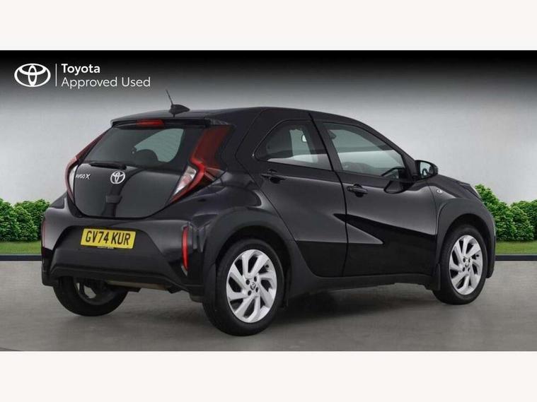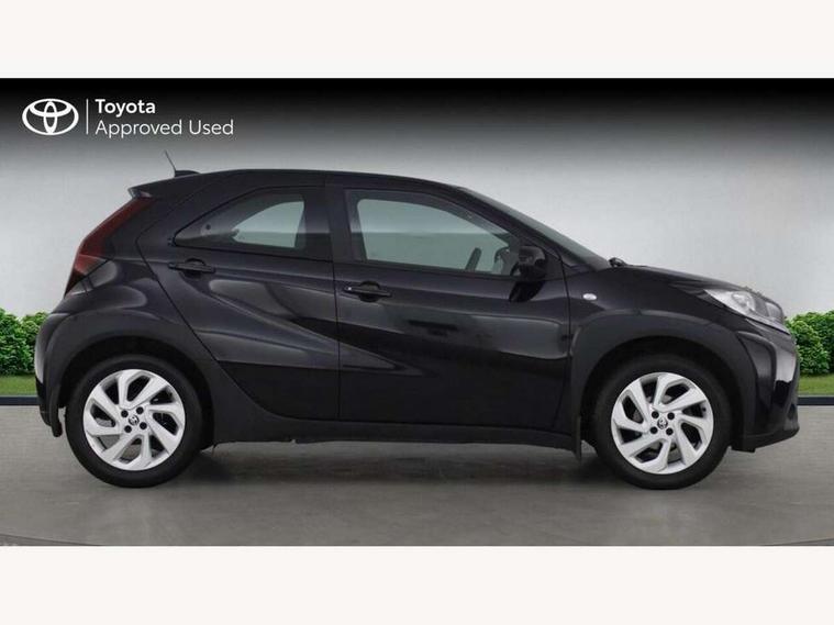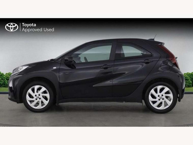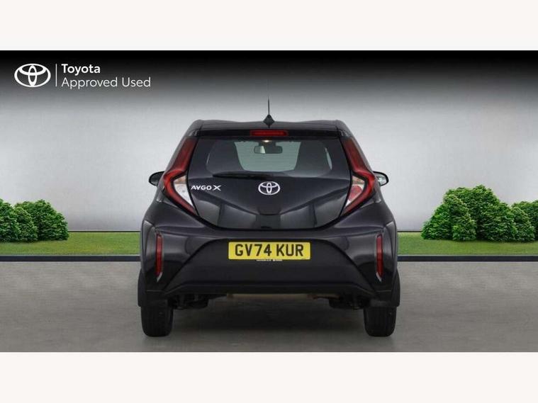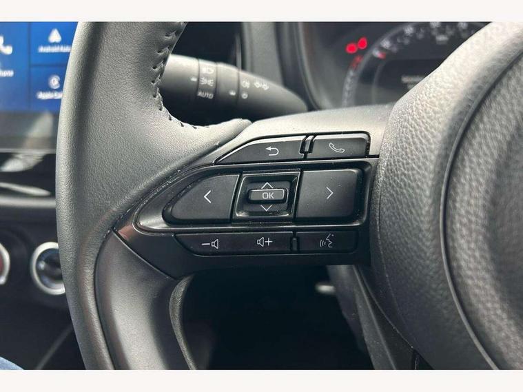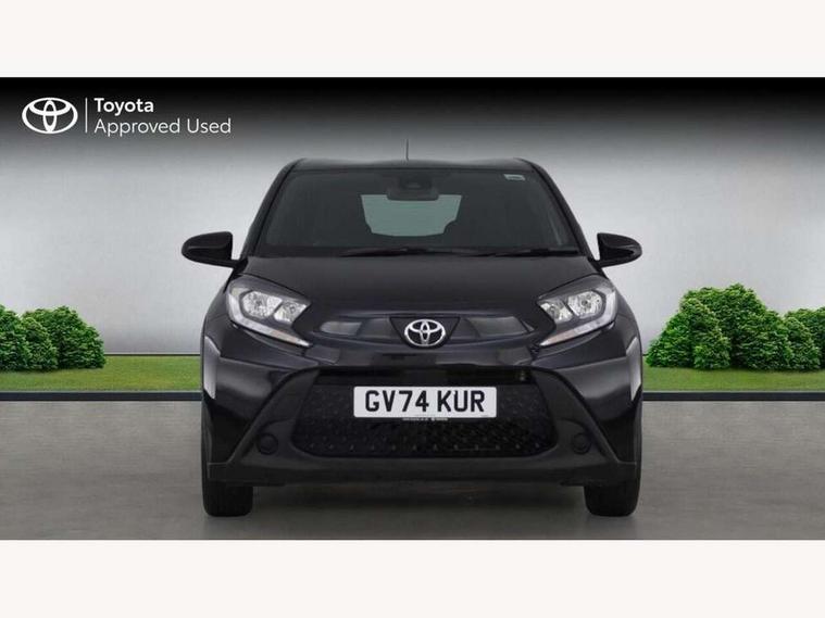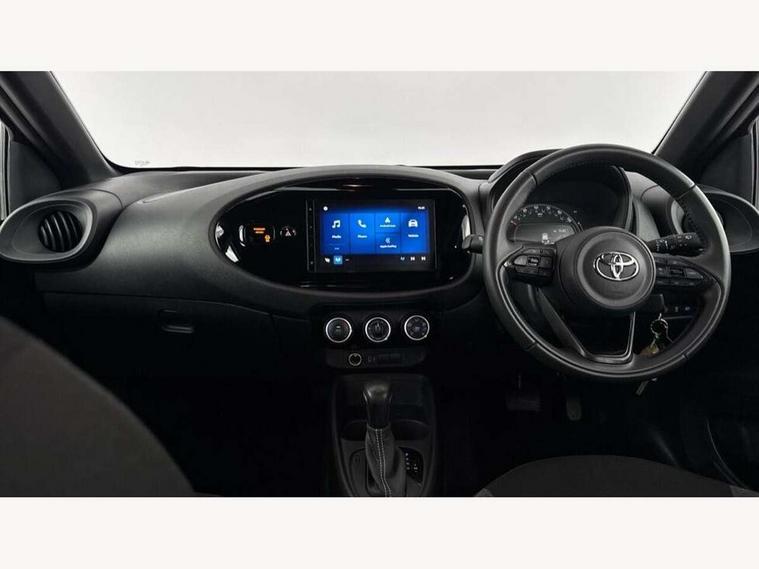 4.2" TFT colour screen, Adjustable speed limiter, Analogue speedometer, Bluetooth connectivity, Digital tachograph, Driver attention alert system, eCall emergency call system, ECO-driving indicator, Electric power steering, Intersection turn assist, Key reminder warning, Noise reduction kit, Pre collision system with emergency steering assist, Reversing camera with static guide lines, Smart phone integration with Apple car play/Android Auto, Speed limit display, Start and stop, Vehicle Stability Control (VSC), 4 speakers, 9" HD multimedia display touch screen with Toyota smart connect, DAB digital audio broadcast, USB connector, Auto headlights, Automatic headlights cut-off, Bicycle towing hook, Black lower front grille, Black rear bumper, Black side protection mouldings, Black upper front grille, Black wheel arch mouldings, Body colour door handles, Body coloured front bumper, Boot door scuff plate, Electric heated door mirrors, Follow me home headlights, Front power windows, Gloss black door mirrors, Headlight cut-off reminder, LED daytime running lights, LED front light guide, LED High mounted stop lamp, Manual day/night rear view mirror, Manual headlight levelling, Pagoda roof, Power adjustable door mirrors, Power back door, Projector halogen headlights, Rain sensor, Rear combination lights LED bulb type, Rear side wing doors, Rear windscreen defogger, Rear windscreen wiper, Short antenna, Variable intermittent windscreen wipers, 12v power outlet - front, 2 seat bench in 2nd row, 3 spoke leather steering wheel, 50/50 split folding rear seat, Adhesive roof headlining, Adjustable speed limiter switch on steering wheel, Audio and telephone switches on steering wheel, Black insert on steering wheel, Boot light, Centre room light, Chrome interior door handles, Chrome surround on air conditioning buttons, Clean air filter, Fabric upholstery, Floor mats, Front and rear cup holders, Front head rest deco art, Front head restraints, Gear shift indicator, Height adjustable driver seat, Intelligent adaptive cruise control switch on steering wheel, ISOFIX child restraint system on rear seats, Lane departure alert switch on steering wheel, Leather gearshift knob, Light grey roof lining, Manual air conditioning, Manual tilt steering wheel, Manually reclining and sliding driver seat, Manually reclining and sliding front passenger seat, Multimedia switches on steering wheel, Pollen filter, Rear door pockets, Rear head restraints, Resin console box storage, Satin silver insert on gear shift knob, Silver stitching on gear shift knob, Single compartment glovebox with lights, Single front passenger seat, Soft tonneau cover, Sun visors with mirror on driver and passenger side, Voice recognition switch on steering wheel, Toyota safety sense pack - Aygo X, Anti lock braking system + Electronic brake force distribution, Child safety door lock, Emergency brake light signal (EBS), Hill start assist control (HAC), Passenger airbag on/off switch, Seat belt reminder for front and rear seats, Supplement restraints system (SRS) - 6 airbags, Traction control, Tyre pressure warning system, Immobiliser, Remote power door locks, Black air vent surround, Black wheel centre caps, Tyre repair kit,