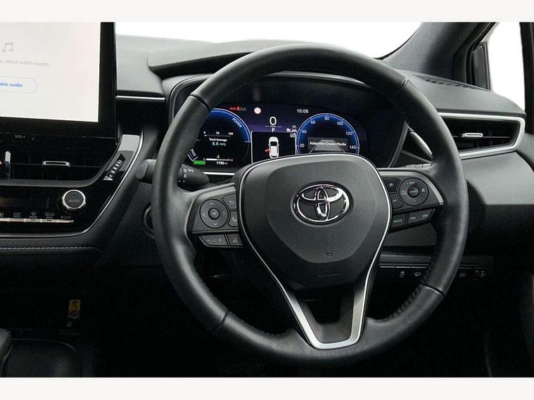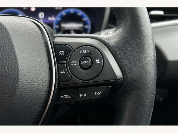 10.5" Multimedia display screen, Bluetooth telephone connectivity, Connected car functionality upgrade, tracker, remote status and e-care, Drive mode select (Eco, Normal), E-call, Electrically assisted power steering, EV drive indicator, Front and rear parking sensors with auto brake, Full Digital 12.3" TFT Digital Combimeter, Key reminder warning, Lane Departure Alert (LDA) switch on steering wheel, Memory on adjustable speed limiter, MyT connected services, Proactive driving assist (PDA), Reversing camera, Smart entry and push button start, Smartphone integration with Apple CarPlay and wired android auto, Tailgate, Toyota remote services, Toyota smart connect navigation, Wireless charger, Gasoline particulate filter, Vehicle Stability Control (VSC), 6 speakers, AM/FM radio, DAB Digital radio, Front USB-C in dashboard, Smart voice assist/ Voice recognition, USB and Aux in connectors + 12V front outlet, Anti-jam protection on power windows, Auto up and down function on all power windows, Automatic headlights with high beam assist, Black centre and side air vents, Black meshed front grille, Black toyota logo in front, Body coloured bumpers, Body coloured door mirrors, Body coloured front spoiler, Body coloured outside door handles, Body coloured rear under guard, COROLLA alloy door scuff plates, Follow me home headlights, LED daytime running lights, LED front fog lights, LED High mounted stop light, LED multi beam headlights, LED multi reflector in headlights, LED rear combi lights with LED lightguide, Manual day/night rear view mirror, Manual headlight levelling system, New grille pattern, Noise reduction layer on windscreen, Piano black diffuser, Power adjustable heated door mirrors, Power front windows, Power rear windows, Rain sensor, Rear side wing doors, Rear window defogger, Rear window wiper, Satin chrome insert on front air vents, Satin chrome insert on front door assist grips, Shark fin antenna, Time adjustment on intermittent wiper, Turning signal integrated indicators in door mirrors, Unique lower skirt, Unique side rocker with black insert, UV-filter on driver and passenger windows, 2 Shopping bag hooks in luggage compartment, 3 rear headrests, 3 seat bench in 2nd row, 3 spoke leather steering wheel with satin insert + gear knob, 4 tie down hooks in luggage compartment, 60/40 split folding rear seat, Adaptive cruise control (ACC) switch on steering wheel, Adjustable speed limiter switch on steering wheel, Audio, multimedia and telephone switches on steering wheel, Black armrest on centre console box, Black gear shift console, Boot light, Centre room light, Driver and front passenger personal light, Driver and passenger assist grip, Driver and passenger sun visor with mirror and light, Dual zone automatic air conditioning with ECO mode switch, Fabric upholstery, Front and rear cup and bottle holders, Front door pockets, Front head restraints, Front passenger seat, Front sliding fabric armrest, Heated seats, Illuminated entry system in room lamp, ISOFIX seat fixing (2 fixings on rear outer seats), Leather gear shift with satin chrome on gear shift console, Manual height adjustable for driver and front passenger seat, Manually tilt with sliding driver and front passenger seat, Parcel shelf, Passenger seat back pocket, Pollen filter, Power adjustable lumbar support on driver seat, Power window switches with satin chrome inserts, Rear armrest with 2 cupholders, Rear passenger coat hooks (2), Remote air conditioning, Satin chrome inside door handles, Satin chrome surround on heater control panel, Satin chrome surround on speedometer, Sliding armrest on centre console box, Slow opening glovebox with lights, Textile floor mats, Tilt/telescopic steering column, Voice recognition switch on steering wheel, Whiplash Injury Lessening (WIL) feature (active headrest) for seats, Toyota safety sense 3 pack - Corolla, 3x3 point rear seatbelts, Adjustable driver and front passenger seat belt extender to top anchor point, Anti lock braking system + Electronic brake force distribution, Brake assist function, Child locks on rear doors, Downhill Assist Control (DAC), Electronic parking brake, Emergency brake light signal (EBS), Front passenger airbag on/off switch, Front seatbelt reminder, HAC - Hill start assist control, Rear seat belt reminder, Seatbelt pretensioners and force limiters, Supplemental restraint system (SRS) 7 airbags - dual driver, dual side curtain, side impact and driver knee airbags, Traction control, Tyre pressure warning system, Acoustic vehicle alert system (AVAS), Alarm with motion sensor and immobilizer, Power passenger window lock, Remote central locking + deadlocks, Satin chrome dash trim, Soft touch texture on upper dashboard, Stitching on lower dashboard, 16" 5 double spoke alloy wheels, Tyre repair kit, Unique wheel finish with red wheel cap,
