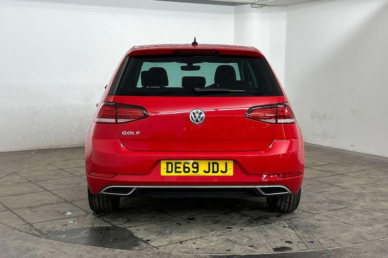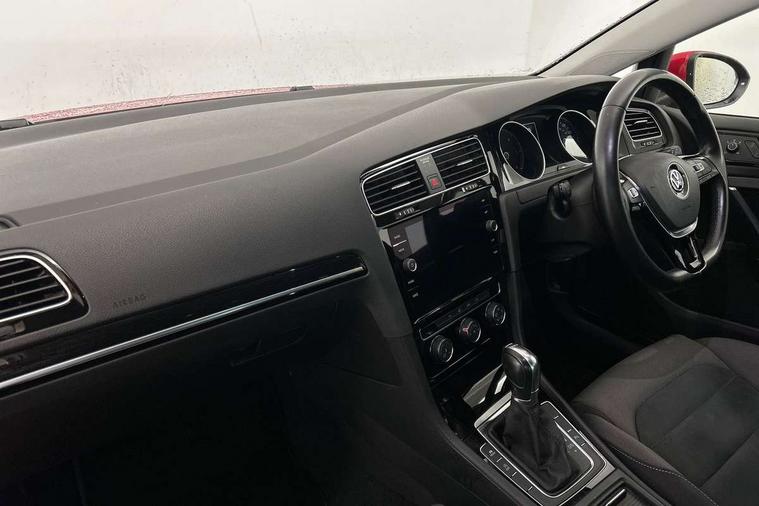'Lights On' Reminder warning buzzer, ACC - Adaptive cruise control with front assist, forward collision warning, distance monitoring, city emergency brake and speed limiter, Bluetooth telephone and audio connection for compatible devices, Brake pad wear indicator warning light, Driver alert system, Driving Mode Selection with four preset modes - Eco, normal, sport or individual modes, Instrument cluster in white, Misfuelling protection device, Multifunction computer with visual gear change recommendation for fuel consumption, Power assisted speed sensitive electro-mechanical steering, Push tank flap, Speed limit display, Speedo, rev counter, electronic odometer, trip, service interval display, exterior temperature and fuel gauge, Stop/start system, Think blue trainer driver tips and journey analysis, Warning buzzer and light for front seatbelts unfastened, Battery regeneration during braking, Diesel particulate filter, XDS electronic differential lock, Composition media system, DAB Digital radio receiver, Driver Personalisation profile selection, MP3/WMA compatability, Multi device interface (MDI) with USB connection, Premium USB cable in choice of either Apple or Android smartphone compatibility, SMS Functionality, USB and SD card connectivity, Volkswagen media control, Auto dimming rear view mirror, Black front air intake and radiator grille with chrome insert, Black rear diffuser, Body colour bumpers, Body colour door handles, Body colour door mirrors with integrated indicators, Chrome trimmed front air intake surrounds, Dusk sensor + automatic driving lights, Electric front windows, Electric rear windows, Electrically adjustable and heated door mirrors, Fully galvanised body, Heated rear windscreen, Hidden exhaust pipe, High level 3rd brake light incorporating LED Technology, LED front fog lights with static cornering light function, Range adjustable headlights via infotainment system with LED daytime running lights, Rear fog lamp, Rear number plate lights incorporating LED technology, Rear tinted glass 65% light absorbing from B pillar backwards, Rear window aerial, Rear window wash/wipe with intermittent wipe, Reflectors in all doors, Remote electrically foldable door mirrors, door mirror puddle lights and reverse activated kerb-view adjustment on passengers door mirror, Tailgate with integrated rear roof spoiler, Windscreen wipers/ intermittent wipe + 4 position delay, 12V socket in luggage compartment, 3 rear headrests, 4 load lashing points in luggage compartment, 60/40 split folding rear seat backrest, Bag hook in luggage compartment x 2, Black decorative sleeve on gear handles, Cooled glovebox, Cover for storage compartment in centre, Dust/pollen filter, Front + rear carpet mats, Front centre armrest with storage compartment and two rear air vents, Front seat back storage pockets, Grab handles front x 2, rear x 2 with integrated coat hooks, Height and reach adjustable steering wheel, Illuminated vanity mirrors, Instrument lighting white adjustable panel illumination, Interior light delay, Isofix preparation for 2 rear child seats, Load through provision with rear centre armrest and cupholders x2, Luggage compartment lighting, Overhead storage box, Pearl grey headlining, Storage box in luggage compartment, Storage compartment in roof console with cover, Storage compartments in front doors, Storage compartments in rear doors, Stowable luggage compartment cover, Sun visors, Variable boot floor, height adjustable and removable, Ambient lighting pack - Golf, Convenience Pack - Golf, Light and Sight pack - Golf, Mirror pack - Golf, 3 rear three point seatbelts, Airbags - Driver's and front passenger's, curtain airbag, Driver's knee, front side impact and passenger's airbag deactivation switch, Anti-lock Braking System (ABS) with Hydraulic Brake Assist (HBA), Automatic post collision braking system, Child locks on rear doors, Driver/Passenger optimised head restraints, Electronic parking brake with auto hold, Electronic stability control (ESC) including Electronic differential lock (EDL) and ASR (Traction control) with deactivation via infotainment system, Front ventilated disc brakes and rear disc brakes, Pre crash preventive occupant protection, Three point height adjustable front seatbelts with tensioners, Tyre pressure loss indicator, Alarm with interior protection and deactivation via infotainment system, Electronic engine immobiliser, Chrome plated air vent surround, Chrome plated electric mirror adjustment switch surround, Chrome plated electric window button surround, Chrome-plated light switch surround, Piano black decorative inserts in centre console, Tumbler decorative inserts, Steel space saver spare wheel,