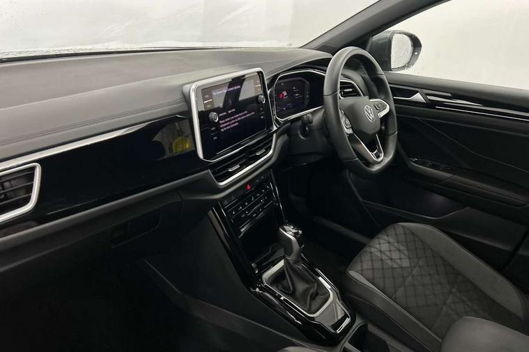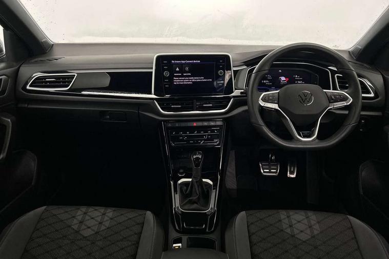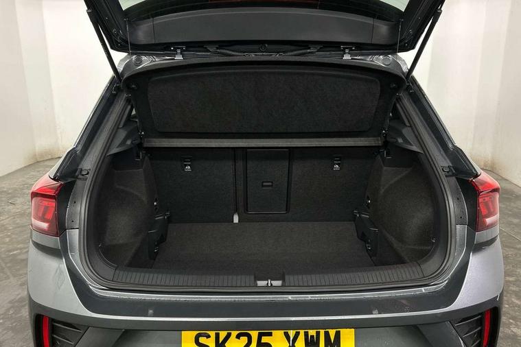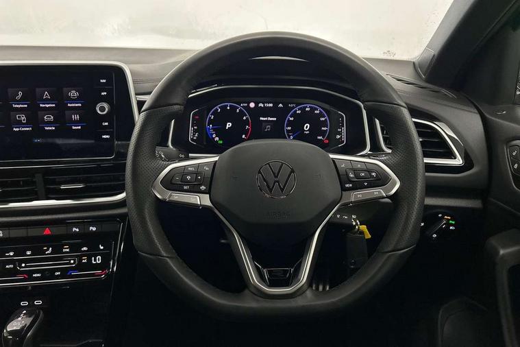 10.25" Digital cockpit pro, Advanced driver attention and drowsiness monitor, Emergency call service, Lane keeping system Lane Assist, Mobile phone interface, Modified key software - reduce switch off time for key status change to Long no motion, Online services, Park assist including front and rear parking sensors, Service interval indicator, Tailgate/trunk lid release from outside, Think blue trainer driver tips and journey analysis, Warning sound and light for front seatbelts unfastened, Wireless app connect, Battery regeneration during braking, Start/stop function with battery regeneration, DAB Digital radio, Diversity antenna for FM reception, Front and rear 6 speakers, Music playback - MP3, WMA and AAC files, Premium USB cable in choice of either Apple or Android smartphone compatibility, SD card slot, Simultaneous pairing of 2 compatible mobile devices, Title and cover art display, We Connect and We Connect Plus functionality, Auto dimming interior rear view mirror, Automatic hazard lights activation under emergency braking, Automatic headlight control with LED separate daytime running lights with coming/leaving home function, Body coloured exterior mirror housings and door handles, Electrically adjustable and heated door mirrors, Extended roof spoiler, Exterior mirrors aspherical on driver side, convex on front passenger side, External USB type C socket and charging sockets, Front windscreen wiper with intermittent wipe and 4 position delay, Heated rear window, LED 3rd brake light, LED rear combination lamps, LED rear number plate lights, Power windows with comfort operation and circuit breaker, Privacy glass for rear side windows and rear window, R-Line design body coloured bumpers, Rain sensor, Rear exhaust tailpipe, Rear fog light on one side and reversing lights on both sides, Rear side wing doors, Rear wash/wipe with intermittent wipe setting, Remote electrically foldable door mirrors, puddle lights and reverse activated passenger's door mirror, 12V power socket in centre console, 3 rear head restraints, 3 seat bench in 2nd row, 4 load lashing points in luggage compartment, Air care climatronic air conditoning system with active combination filter and 2-zone temperature control, Black roof lining, Chrome plated decorative trims, Chrome plated radiator grille inserts, air vent surrounds and light switch surrounds, Door and side trim panel with leatherette insert, Front + rear carpet mats, Front centre armrest, Front cupholders x 2, Front footwell illumination, Front reading light, Front scuff plates with R Line logo, Front seat back storage pockets, Glove compartment door with light, Instrument lighting, white adjustable panel illumination, Interior ambient lighting and surround lighting, Interior light delay, Isofix child seat preparation, Leather gearshift handle, Load-through provision with cup holder when folded down ('Unsplit rear seat bench, split folding backrest, with centre armrest), Luggage compartment lighting, Single front passenger seat, Stainless steel pedals, Storage compartment in left and right luggage area, Storage compartment in rear doors, Storage compartments in driver and front passenger doors, Sunvisors with illuminated vanity mirrors, Variable boot floor, height adjustable and removable, Driver assistance pack without proactive passenger protection - T-Roc, 3 point height adj front seatbelts + pretensioners, 3 point seatbelts in outer rear with ECE label, ABS, Child locks on rear doors, City emergency braking and pedestrian monitoring, Driver and front passenger airbag with front passenger airbag deactivation, Driver and front passenger safety-optimised head restraints, Drivers seatbelt reminder, Electronic parking brake, Electronic Stability Control (ESC) inc EDL (Electronic Differential Lock) and ASR (Traction Control), Front and rear passengers curtain airbag system including front side airbags, Hill start assist, Predictive pedestrian protection, Rear disc brakes, Two tone horn, Tyre pressure loss indicator, Volkswagen roadside assistance, Piano black decorative inserts in dashboard and front door trim panels, Trims for alloy wheels,