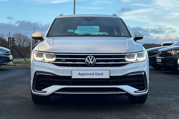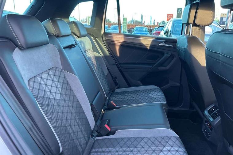 Adaptive cruise control ACC stop and go including speed limiter, App-Connect incl. App-Connect Wireless for Apple CarPlay and Android Auto, Bluetooth phone integration system, Distance control assist, Driver alert system, Driver profile selection, Dynamic road sign display, eCall emergency call system, Electromechanical speed sensitive power steering, Engine start/stop button, Lane keeping system Lane Assist, Lights on warning, Multifunction front facing camera, Outside temperature display, Premium multifunction display with multi colour display, Remote control boot opening, Rev counter, Revision / skills operating concept travel assistant, Service interval indicator, Speed limit display, Start/stop system with regenerative braking, Trip computer, Warning sound and light for doors and tailgate open, All wheel drive - 4Motion, Battery regeneration during braking, XDS electronic differential lock for improved traction and handling, 4 X 20 watt output, 8 Speakers, Diversity antenna for FM reception, Radio, SD card slot, Simultaneous pairing of 2 compatible mobile devices, SMS functionality - read, compose and send SMS messages using touch-screen display, Title and cover art display, Auto dimming interior rear view mirror, Automatic headlight control system, Body colour door handles, Body coloured bumpers in R Line style, Body coloured door mirrors with integrated indicators, Chrome moldings on the side windows, Coming/leaving home lighting function, Dynamic headlight range control, Front and rear electric windows, Heated rear window, High level 3rd brake light, Laminated safety glass windshield, heat and sound insulating, LED headlamps with LED separate daytime running light and dynamic cornering light, LED rear combination lamps, LED rear number plate lights, License plate carrier in front and rear, Poor weather light and cornering light, Privacy glass for rear side windows and rear window, R Line body kit, R Line side sills, Rain sensor windscreen wipers, Rear exhaust tailpipe, Rear fog lamp, Rear side wing doors, Rear spoiler in R style, Rear windscreen washer and wiper with interval delay, Side and rear windows in heat insulating glass, Trailer Stability Programme, Unique R Line badging, Windscreen wipers/ intermittent wipe + 4 position delay, 12V outlet in center console rear and in luggage compartment, 12V outlet in front and tray, 2 cup holders in front, 2 LED front reading lights, 2 LED rear reading lights, 3 bench rear seats in 2nd row, 3 rear headrests, 4 load lashing points, 40:20:40 split folding rear seats, Air Care Climatronic 3 zone automatic climate control with enhanced air filter and controls in the rear, Backrest release for left front seat, Black headlining, Brushed stainless steel pedals and footrest, Carpet mats in front and rear with decorative stitching in Gray, Climate control unit rear with touch function, Door and side trim panel in foam film, insert in leatherette, Front centre armrest, Front footwell illumination, Front seats head restraints (x-adjustment), Height adjustable front seats, Height/reach adjust steering wheel, Instrument lighting white adjustable panel illumination, Interior light with delay, Isofix Preparation 2 Rear child seats, Leather gear knob, Lockable cooled glovebox, Luggage compartment lighting, Luggage net, Rear bench seat asymetrically split folding, longitudinally movable and folding with load-through hatch and center armrest, Remote unlocking for rear seat backrest, Removable luggage cover, Removable rear headrests, Safety optimised front head restraints, Single front passenger seat, Sliding/reclining rear seats, Standard rear seat release, Storage compartment in driver's door, Storage compartment in passenger's door, Storage compartment in rear doors, Storage compartments in luggage area left and right, Storage tray on dashboard, Sun visors with illuminated vanity mirrors, Top front comfort seats, Variable boot floor, height adjustable and removable, Driver assistance pack plus - Tiguan DSG, 3 point seat belt for centre rear seats, 3 point seat belts with seat belt pretensioners for the outer rear seats, Active bonnet, Curtain airbags for front and rear passengers, Driver/Front Passenger airbags, Drivers knee airbag, Electronic parking brake with auto hold, Electronic Stability Control with driver steering recommendation, ABS, ASR, EDL, EDTC and trailer stabilization, Front assist with autonomous emergency braking (for Adaptive Cruise Control ACC up to 130 mph), Front disc brakes, Front passenger airbag deactivation, Front side airbags, Height adjustable front 3 point seatbelts + pretensioners, Hill hold control, Manual child proof rear door locks, Pedestrian monitoring system, Power assisted brakes, Proactive passenger protection system in combination with front assist, Rear disc brakes, Rigid safety cell with front and rear crumple zones, Two tone horn, Warning sound and light for front seat belts if unfastened, Anti theft alarm system with interior monitoring, backup horn and towing protection, Anti theft wheel bolts, Electronic engine immobiliser, 20" Misano black with diamond turned surface alloy wheels with Airstop tyres, Tool kit,