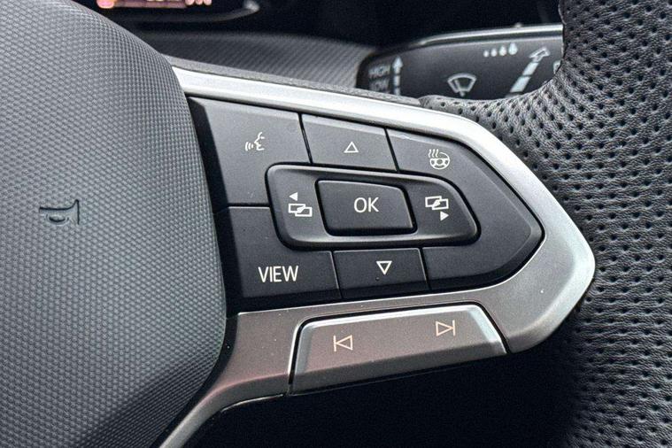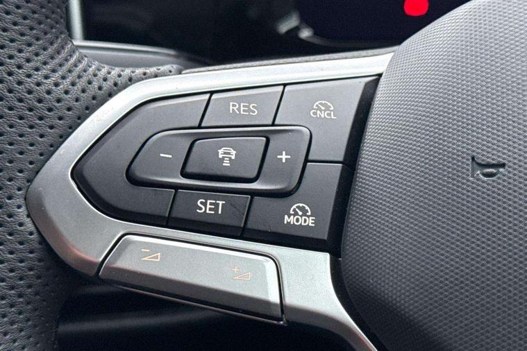 Activated carbon canister, Adaptive cruise control (ACC), Advanced driver attention and drowsiness monitor, Dynamic road sign display, Dynamic steering, E-Sim card for online connectivity, eCall emergency call system, Multi-color Digital cockpit pro, selection of different info profile possible, Multifunction front facing camera for distance control, Navigation system, Oncoming vehicle braking when turning including swerve support, Speed limiter, Speedo, rev counter, electronic odometer, trip, service interval display, exterior temperature and fuel gauge, Traffic jam assist, Voice enhancer and voice control, Warning signal and warning light for front and rear seatbelts not fastened, We connect plus preparation, We connect preparation, Wireless app connect, Petrol Particulate Filter, Start-stop system with battery regeneration (recuperation - energy recovery during braking), XDS electronic differential lock for improved traction and handling, 2 USB C ports in front, 2 USB charging sockets on the centre console in the rear charging capacity upto 45W, Digital radio reception (DAB), Diversity antenna for FM reception, Gaming platform via car app, Infotainment system with 12.9" display, Mobile phone interface with inductive charging feature, 3rd brake light, Automatic headlamp activation with Coming home and Leaving home feature, Body colored bumpers in R-Line style, Body colour door handles, Exterior mirrors convex on the left and aspherical on the right, Front and rear electric windows, Heat insulating windshield made of laminated glass, LED separate daytime running light, Rear exhaust tailpipe, Rear fog light on one side and reversing lights on both sides, Rear side wing doors, Rear windscreen washer and wiper with interval delay, Remote electrically foldable door mirrors, puddle lights and reverse activated passenger's door mirror, Welcome light with surround lighting, 12V socket in front centre console, 12V socket in luggage compartment, 3 rear head restraints, 3 seat bench in 2nd row, Ambient lighting with 30 colour including LED light unit in front footwell with selectable light colour, Black roof lining, Brushed stainless steel pedals, Chrome plated radiator grille inserts, air vent surrounds and light switch surrounds, Front + rear black carpet mats, Front centre armrest, Integrated front head restraints, ISOFIX anchors for child seats on outer rear bench seats and on front passanger seat compatible for i-Size, Leather gearshift handle, Luggage compartment lighting, Premium sports seats in front, Rear cupholder and loadthough, Single front passenger seat, Split folding backrest with centre armrest and unsplit rear seat bench, Sun visors with illuminated vanity mirrors, Titanium black instrument panel, 3 point height adj front seatbelts + pretensioners, 3 rear three point seatbelts, ABS, Autonomous emergency braking front assist with pedestrian and cyclist monitoring, Child locks on rear doors, Driver and front passenger airbag with front passenger airbag deactivation, Electronic parking brake with auto hold, ESC (Electronic Stability Control), Extended pedestrian protection measures, Rear disc brakes, Two tone horn, Tyre pressure loss indicator, Volkswagen roadside assistance, Anti theft wheel bolts, Preparation for alcohol interlock, Decorative inserts carbon grey for dashboard and front door trim panels, Tool kit for tyre mobility set, Tyre mobility kit Includes 12V compressor and tyre sealant,