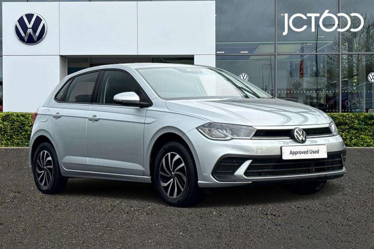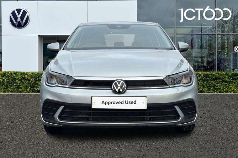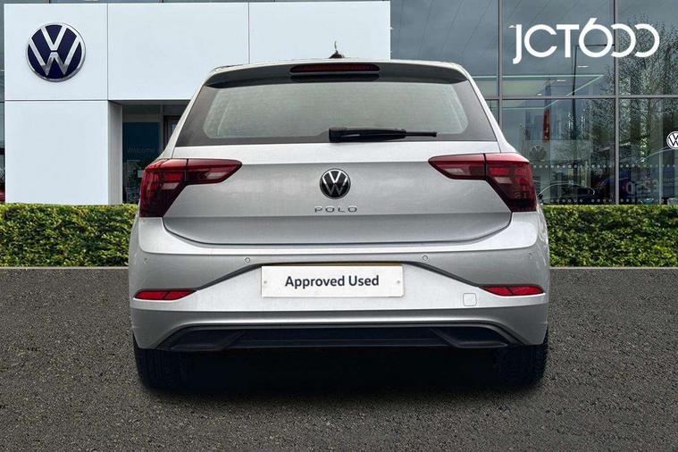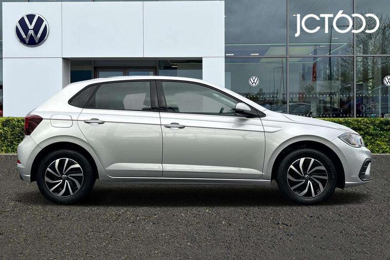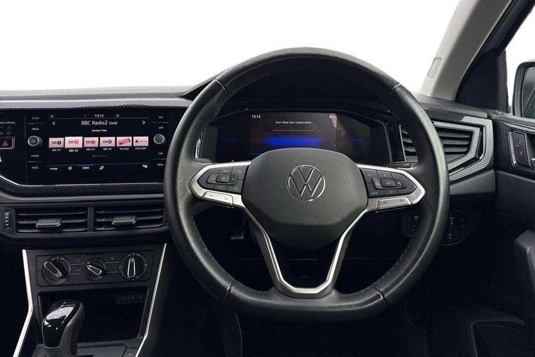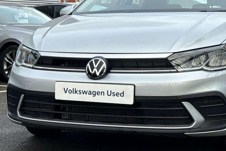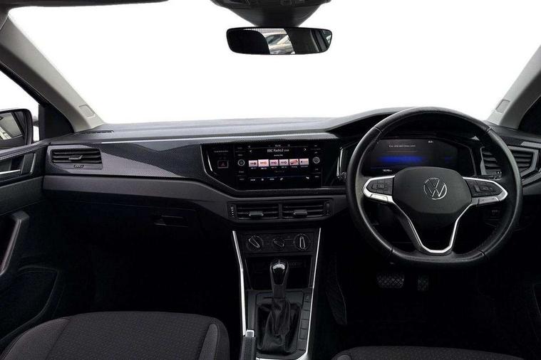Adaptive cruise control with follow-to-stop and speed limiter, Advanced driver attention and drowsiness monitor, Bluetooth mobile phone interface, Dynamic road sign display, Emergency call service, Power assisted speed sensitive steering, Preparation for navigation system with media and internet package, Preparation for We connect and We connect plus, Speedo and rev counter, electronic odometer, trip, service interval display and exterior temperature gauge, Standard rear axle, Travel Assist - Lane keeping system and traffic jam assist, Travel assist including emergency assist, Trip computer, Warning signal and warning light for front and rear seatbelts not fastened, Washer fluid level indicator, Wireless app connect, Front wheel drive, Rear shock absorpion, Start-stop system with battery regeneration (recuperation - energy recovery during braking), DAB Digital radio, Diversity antenna for FM reception, Automatic dimming interior rear view mirror, Automatic headlight control with LED separate daytime running lights with coming/leaving home function, Body colour bumpers with chrome inserts, Body colour door handles, Body colour door mirrors, Electric front windows, Engine badge deletion, Headlight range adjustment, Heat insulating and laminated safety glass windshield, Heat insulating darkened glass in side and rear windows, Heat insulating glass windscreen, LED Headlights, LED rear combination lamps, Power folding adjustable/heated exterior mirrors and front passenger exterior mirror lowering function, Rain sensor, Rear electric windows, Rear fog light, Rear side wing doors, Rear windscreen washer and wiper with interval delay, Third brake light, 12V power socket in centre console, 2 front and 2 rear reading lights with switch off delay and dimmer, 2 USB-C ports in the front, 2 USB-C charging sockets on the center console in the rear, 3 rear head restraints, 60/40 split folding rear seat and rear seat bench not split, Ceramique roof lining, Chrome plated radiator grille inserts, air vent surrounds and light switch surrounds, Door and side trim panel, Driver and front passenger seat height adjustment, Driver/passenger sunvisors with illuminated vanity mirrors, Front centre armrest, Front seat backrest storage pockets, Front standard seats, Handbrake lever handle in leather, Hartley/Thomas cloth upholstery, Headliner in recycled material, Isofix child seat preparation easy-fit (for two outer rear seats, and front passenger seat) compatible with I-size, Leather trimmed gear knob, Luggage compartment cover, Luggage compartment lighting, Removable luggage compartment floor, Single front passenger seat, Standard climatic zones, Standard pedal cluster, Three spoke leather wrapped multifunction steering wheel with shifting paddles, Light and vision pack - Polo, 3 point height adj front seatbelts + pretensioners, 3x3 point rear seatbelts, ABS, Driver and front passenger airbag with front passenger airbag deactivation, Drivers and front passengers safety optimised head restraints, ESC (Electronic stability control) + EDL (Electronic Differntial lock) and ASR (Traction control), Extended and predictive pedestrian/ cyclist protection, Front assist with autonomous emergency braking (for Adaptive Cruise Control ACC up to 130 mph), Front curtain and side airbags with center airbag, Front disc brakes, Hill hold control, Manual child lock in rear doors, Rear drum brakes, Single tone horn, Tyre pressure loss indicator, Alarm with interior protection, Anti-theft alarm system with interior monitoring, backup horn, and towing protection, Anti-theft wheel bolts, Electronic engine immobiliser, Lava stone black gloss/matt decorative inserts in dash and front door panels, Low rolling resistance tyres,