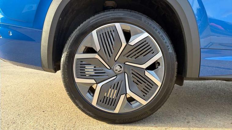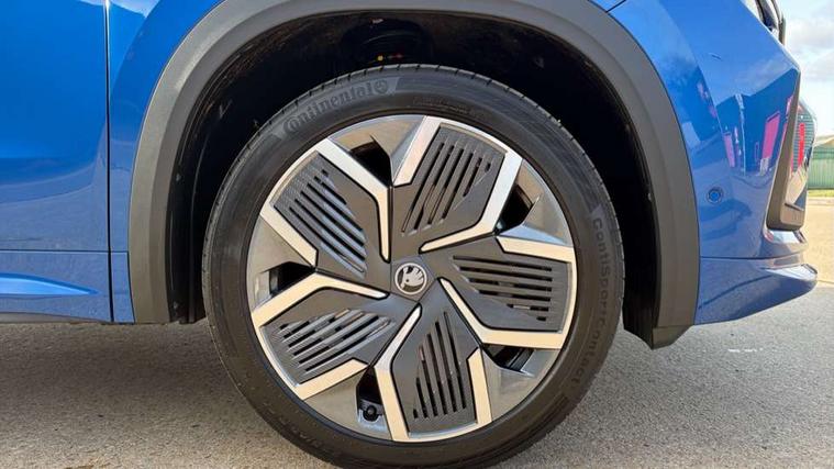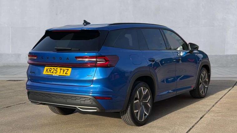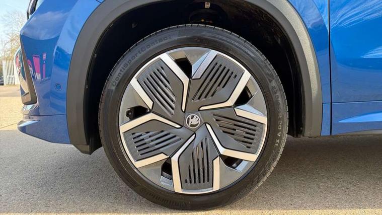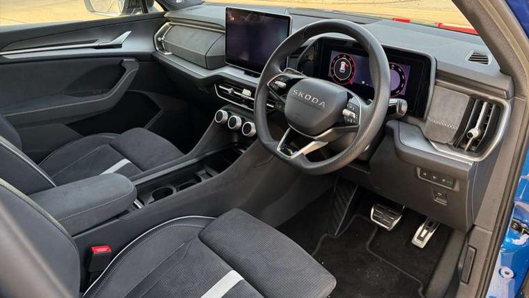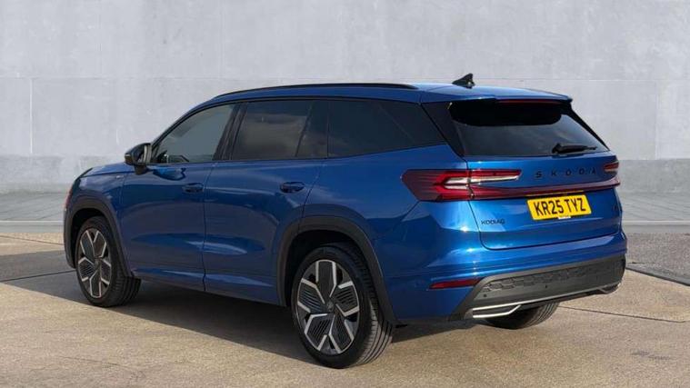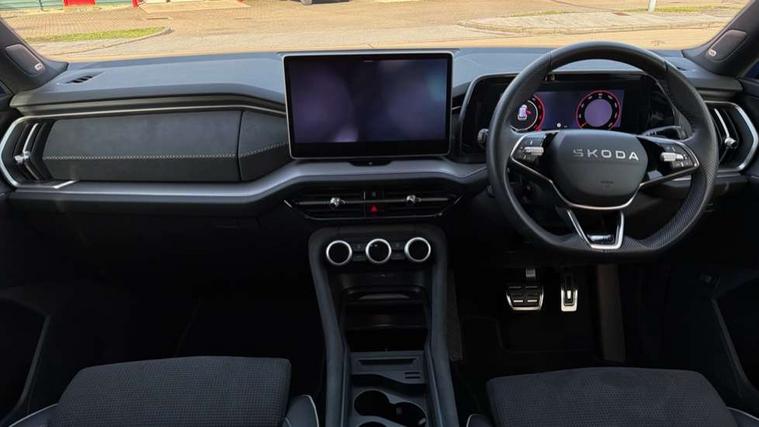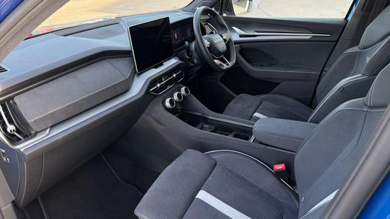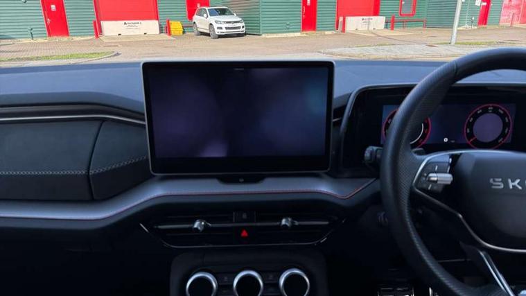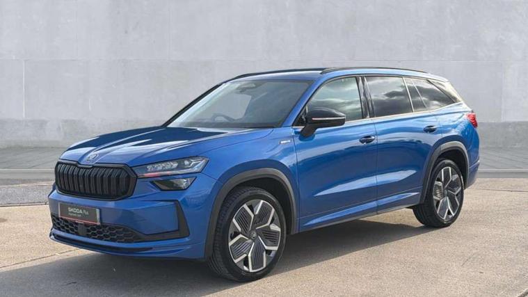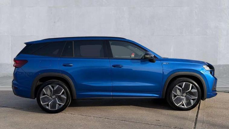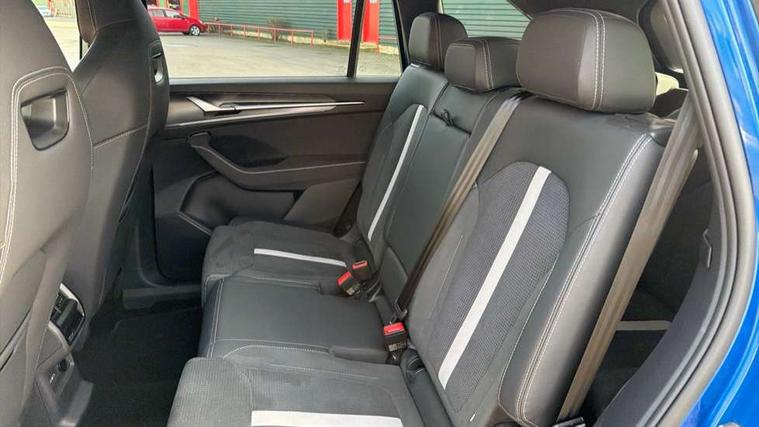 13" satellite navigation touchscreen display, Blind spot detection with door exit warning, Bluetooth system, ChatGPT functionality, Driver alert - Fatigue and drowsiness monitor, Dry display cleaner, Emergency call, Front and rear parking sensors, Front cross traffic assist, Lane assist, Off road modes, PAS, Rear traffic assist, Tailgate unlocking from outside, Traffic sign recognition, USB C Port x 2 in front centre console, Virtual Cockpit - 10.25" digital display, Voice control system, Wireless charging for two smartphones (15W) with cooling function, Wireless SmartLink for Apple CarPlay and Android Auto, Stop/start function, 2x USB-C in the rear, DAB Digital radio, Aero front windscreen wipers with intermittent function, Auto dimming rear view mirror, AWL (all weather lighting) and all weather light with cornering function, Black diffuser and decorative tailpipe with a unique dark chrome finish, Black roof rails, Black sports styling including front grille and window surrounds, Black wheel arch surrounds, Body colour door handles, Cornering light and poor weather light, Electric folding /adjustable/separted heated/folding door mirrors, auto dimming with boarding sports and memory function, Electric front and rear windows, Exterior black decorative trims, Front and rear sports bumpers including lower rear chrome strip, Gloss black door mirrors, Gloss black window frame and D pillar, Heat insulating glass in windshield, Heated rear window, Ice scraper in fuel tank cap, LED daytime running lights, LED third brake light in rear spoiler, Light assistant with automatic headlight control and coming home feature, Logo projection in door mirrors, Privacy glass, Rear roof spoiler, Rear side wing doors, Rear window wiper, Red decorative strip between rear LED lights, Safety reflectors on front and rear doors, Sportline badge on front fenders, Tailgate lettering in Black, Unique dark chrome design logo on alloy wheels, Window control switches with black trim, Windscreen wipers with rain sensor, Without engine designation, 1.5l bottle holder points in all door, 1x centre rear reading light, 2 seat bench in 3rd row, 3 configurable smart dials with 32mm coloured display, 3 seat bench in 2nd row, 4 foldable roof handles with rear coat hooks, Aluminium pedals, Ambient interior lighting - Dashboard, front-door stowage compartments, front and rear door panels and footwell lighting, Automatic gear selector on steering column, Chrome interior door handles, Driver/front passenger reading lights, Fabric headlining, Fixed bench 40:60:40 split folding backrests, Front and rear floor mats, Front centre armrest with jumbo box storage compartment, cup holder and 12V socket, Front sport seats, Height adjustable front headrests, Interior black decorative trims, Isofix child seat fittings in outer middle row rear seats and front passenger with top tether, Manually adjustable steering column, Pollen filter, Rear centre armrest with cupholders, Rear seat boot backrest release, Single front passenger seat, Skoda lettering on steering wheel, Storage pocket including mobile phone pockets on the backs of the front seats, Sunvisors with illuminated vanity mirrors, Three rear height adjustable headrests, Ticket holder on A Pillar, Tri zone climate control, Umbrella in door panel x1 made from sustainable materials, Upper and lower glovebox with card holder and coin compartment, USB C port by rear view mirror for charging only (15W), Acoustic package - Kodiaq, Performance package - Kodiaq, Sportline design selection pack - Kodiaq, Auto door release and activation of warning lights in the event of an accident, Driver and front passenger airbag with knee airbag and front passenger airbag deactivation, Electric child locks, Electronic parking brake, ESC (incl. ABS+EMD+MSR+ASR+EDL+HBA+DSR+RBS+ESBS+MCB+TSA+XDS), Front assist with braking reaction to vehicles, pedestrians and cyclists, Front disc brakes, Fuel cut off safety device, Height adjustable front 3 point seatbelts + pretensioners, Hill hold assist, Junction assist with automatic emergency braking, Rear disc brakes, Safety vest holder in door, Seat belt reminder for all seats, Three point rear seat belts, Two tone horn, Tyre pressure monitor, Alarm with interior monitoring and tilt sensor with safe function, Anti-theft wheel bolts, Immobiliser, Remote central locking with 2 keys, 20" Rila anthacite polished alloy wheel with black matte aero covers,