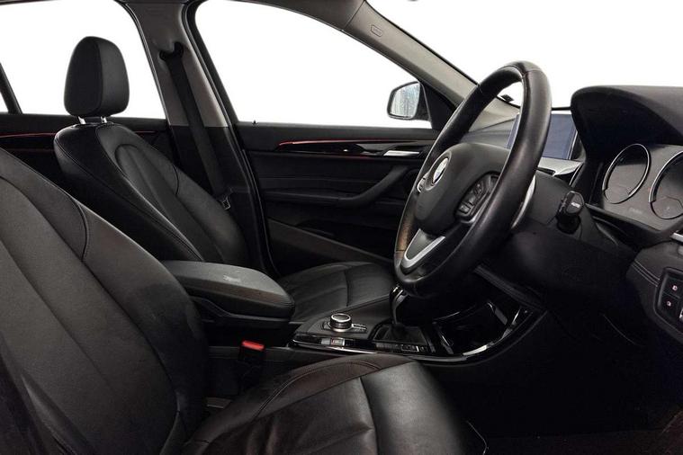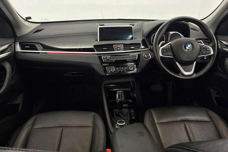 Ambient temperature display, Apple CarPlay, Arrow pointers, north up, direction of travel and perspective map displays, Attentiveness assist, Automatic tailgate opening, BMW ConnectedDrive, BMW Online services, BMW remote services, BMW Teleservices, Brake pad wear indicator in front and rear, Characteristic map controlled oil pump system, Front axle single joint with specific axle kinematics to minimise drive influences on steering + provide increased rigidity agile driving behaviour, Front/rear park distance control (PDC), Instrument cluster with Black optic display featuring superimposed dials and 5.7" colour display, Instrument cluster with speedometer with miles per hour read out, tachometer and fuel gauge, Integrated hard drive with map data updates via USB interface, Lights on warning by audio warning signal when ignition is switched off, On board computer, Operation by iDrive with direct selection buttons and 8 programmable buttons, Optimum shift indicator, Outside temperature gauge, Park assist system, Personal Profile - automatic lock when driving away selectable, Real time traffic information, Rigidly mounted rear subframe - Multi link construction with separate spring / damper configuration and excellent driving characteristics, Service interval indicator, Servotronic PAS, Tyre puncture warning system, 12V compressor with integrated sealant injection bottle and hose, 51 Litre fuel tank, Aluminium lightweight construction including crankcase, Anti-roll bars, Balancer shaft, Double VANOS, Drive performance control with ECO PRO comfort + sport mode, Electronic differential lock control (EDLC), High precision injection, Performance Control, Seven speed sport dual clutch automatic transmission (DCT), Standard suspension, Stop/start function, Turbocharger with Valvetronic, Twin tube gas filled shock absorbers with degressive characteristic curve, BMW professional radio includes amplifier power 100w, Two mide range speakers in door trims and two woofers as central bass speaker under front seats, DAB Digital radio, Adjustable headlights, Aero curtain, Automatically dimming rear view mirror, BMW Icon design LED daytime driving lights, Body colour bumpers, Body colour door handles, Body colour door mirrors, Direction indicator side lights integrated exterior mirrors, Dynamic brake lights, Electric windows - front and rear, with open/close fingertip control, anti-trap facility and comfort closing, Electrically adjustable door mirrors with aspheric on driver side, convex on passenger side with integrated indicators, Exclusive front door sill finishers with BMW designation, Exterior mirrors - electrically folding with anti-dazzle, Follow me home headlights, Front air guide finished in black silver, Front air inlets in matt black with silver finisher matt, Front and rear bumper system, Front bumper underbody protection in silver matt, Green tinted heat protection glazing glass, Headlight beam throw control, Heated door mirrors, Heated windscreen washer jets, High level third brake light, Kidney grille with 14 chrome matt aluminium fronted with black matt sides vertical bars, LED direction indicator lights in headlight eyebrow, LED front fog lights, Lightweight engineering, Model designation, Rain sensor including auto headlights activation, Rear bumper underbody protection in black silver with silver matt insert, Rear fog lights, Rear window aerial, Rear window wash/wipe, Reversing light in rear light cluster, Roof mouldings in matt black, Shark fin antenna, Sill cover matt black with matt silver insert, Twin chrome exhaust tailpipes x2, Two eye face design on light, Visible VIN plate, Welcome lighting, 12v power point in centre console, 2 cup holders in front, 3 rear headrests, 3 spoke sport leather steering wheel, 40:20:40 split folding rear bench seat, Boot light, Centre armrest in 20 degree part rear seat backrest, Child seat ISOFIX attachment for two outer rear seats and front passenger seat with anchorage points, Conditioned based service, Dakota leather upholstery with perforation and contrast stitching, Driver and front passenger heated seats, Driver/front passenger seat backrest back with luggage net, Dual zone automatic air conditioning, Four grab handles integrated in roof linings, Front and rear side armrests integrated into door trim, Front centre armrest/sliding cover, Front centre interior light over interior mirror and rear centre automatic interior light when door is opened/ignition switched off or via remote key, Front/rear adjustable head restraints, Illuminated glovebox, Leather gearknob/gaiter/handbrake grip, LED ambient lighting in door trim, Luggage area underfloor compartment, Luggage compartment access via recessed handle below tailgate, Luggage compartment lighting, Luggage compartment loading edge with stainless steel insert, Manually adjustment steering wheel column, Multifunction steering wheel, Rear coded belt buckles, Standing free front adjustable armrest and fixed in different positions, Steering wheel gearshift paddles, Sunvisors with vanity mirrors and ticket pocket, Velour floor carpets, Extended lights pack - X1, Extended storage package - X1, ABS/EBD, Audio/visual collision warning system, Automatic Stability Control (ASC), Battery safety cut-off, BMW emergency call, Brake drying, Brake energy regeneration, Braking readiness, Cornering brake control (CBC), Crash Sensor - activates hazard/interior lighting + unlocks doors, Driver/Front Passenger airbags, Driver/front passenger side airbags, Dynamic brake control, Dynamic stability control + (DSC+), Dynamic Traction Control - DTC, Electronic parking brake, Front and rear head airbags, Front passenger airbag deactivation, Front seatbelt force limiters, Front ventilated disc brakes, Hill start assist, Pyrotechnically pre-tensioned front seatbelts, Rear disc brakes, Rear door child safety locks, Seatbelt security check for driver and front passenger, Side impact protection, Three point seat belts in all seat