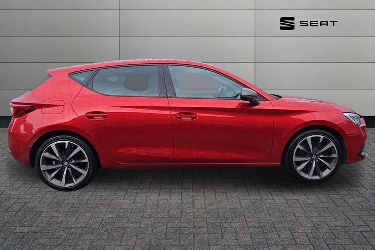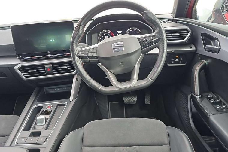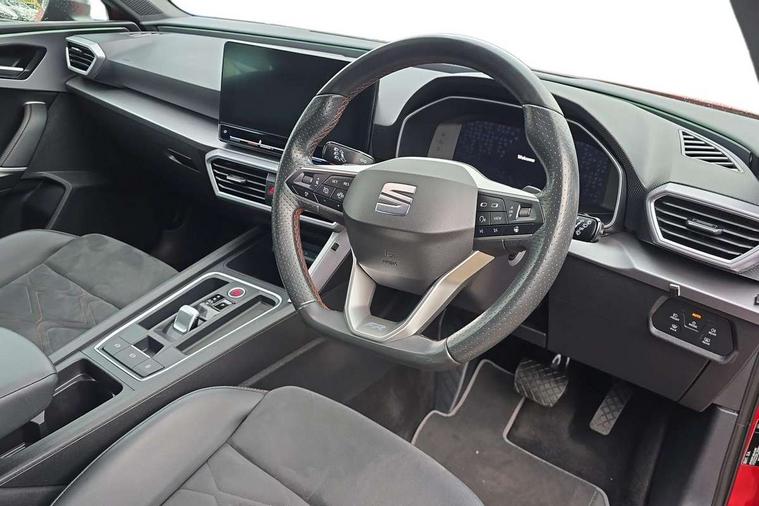 Digital cockpit, E-call, Four x USB Type C ports, Front assist with forward collision warning braking reaction to vehicles, pedestrians and cyclists, Full link smartphone integration with Mirror Link, wireless Apple CarPlay and wired Google Android Auto, Lane assist, Lockable tailgate, Park assist (inc front/rear parking sensors), Power assisted speed sensitive electro-mechanical steering, RPM, trip computer, outside temp gauge, instrument light brightness, low fuel warning light, lights on reminder, gearshift indicator, SEAT drive profile with 4 modes (Eco/Normal/Sport/Individual), throttle response and gearshift mode, Service interval indicator, Start/stop system with regenerative braking, Sports suspension, XDS electronic differential lock and dynamic traction support, 7 speakers, Auxiliary input socket, Auto dimming rear view mirror, Body colour door handles, Body coloured bumpers, Dark tinted rear windows, Door mirror LED indicator lights, Electric adjustable/heated/folding door mirrors with memory, Electric front/rear windows, FR sports bumper, Illuminated front door sill, LED front fog lamps with cornering function, LED headlights and tail lights with dynamic turn signals, welcome light silhouette from exterior mirrors and dynamic headlight range control, LED rear fog lamp, Rain sensing wipers, Rear side wing doors, Rear wash/wipe, Separate daytime running light with automatic headlight control and coming home feature, Third brake light, 12v power point in centre console, 3 seat bench in 2nd row, 60/40 split rear bench seat with armrest, Ambient lighting with glovebox, footwell and single monocolour, Black headlining, Dust/pollen filter, Electric driver lumbar support + passenger manual lumbar support, Folding boot cover, Front and rear height adjustable headrests, Front and rear reading lights X 4, Front centre armrest, Front seatback storage pockets, Heated front seats, Height/reach adjust steering wheel, ISOFIX points in outer rear seats with top tether anchorage points, Luggage tie-down hooks, Microsuede cloth upholstery, Power driver seat with memory and manual height adjustable passenger seat, Single front passenger seat, Sunvisors with covered illuminated mirror, Three zone climate control, Wraparound lighting, Media system plus with navigation - Leon, 3 point seatbelts on all rear seats, ABS, Brake control system - ESC and brake booster, Child proof door locks, Driver and front passenger airbags with front passenger airbag de-activation, front side and curtain airbags, Electronic parking brake, Extended safety system - seat belt tensioner, window closure and hazard lights, Hill hold control, Rear disc brakes, Seat belt reminder for front and rear seats, Tiredness recognition system, driver alert system, Tyre pressure monitoring system, Anti theft alarm system with interior monitoring in cab, backup horn and towing protection, KESSY Go (Keyless start), Locking wheel bolts, Wireless phone charging, Chrome interior detailing, 18" Performance machined alloy wheels with 92Y tyres, Tool kit,