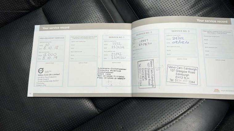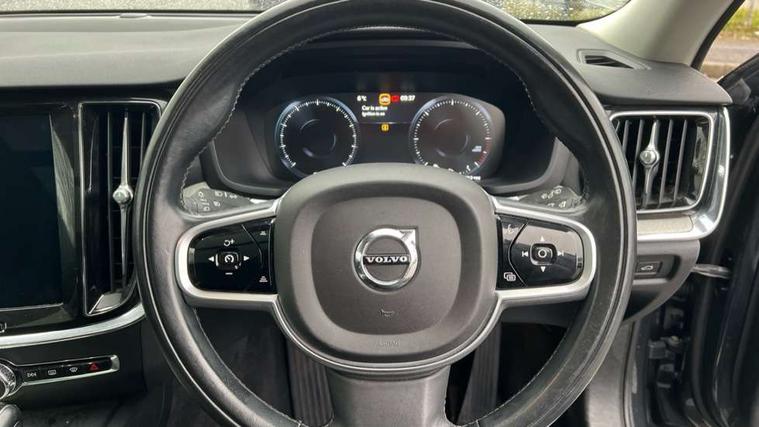 12.3" Active TFT crystal driver's instrument display, Adjustable steering wheel force, Bluetooth hands free telephone kit, Drive mode selector, Hands free power tailgate, Information centre, Lane keep assist with driver alert control, Oncoming Lane Mitigation, Sensus navigation system, Service interval indicator, Speed limiter, Speed sensitive steering, Touch screen display, Trip computer, Voice control system, Volvo on call, DAB Digital radio, Steering wheel mounted remote controls, Active bending headlights, Adaptive brake lights, Aluminium tread plates, Body colour bumpers, Body colour door mirrors, Chrome front lower bumper, Chrome window surround, Electric adjustable/heated/folding door mirrors, Electric front+rear windows, Headlamp cleaning system, Headlamp levelling, Heated aqua blades, High gloss black grille with chrome inserts, Home safe and approach lighting, Illuminated side steps, LED front fog lights with static cornering light function, LED Headlights + Active high beam incorporating LED daytime running lights, Rain sensor windscreen wipers, Rear wiper, Roof antenna, Roof spoiler, Silver roof rails, Twin exhaust tailpipes with chrome finishers, 12V socket in front + rear tunnel console, A-pillar parking ticket holder, Ambient lighting in door trim, B Pillar ventilation, Black steering wheel insert, Bright metal luggage threshold, Electric drivers seat with memory + mirrors memory, Electric lumbar support, Electric passenger seat, Extended front seat cushions, Floor mats, Front and rear door pockets, Front centre armrest with storage compartment and cupholders, Front footwell illumination, Front head restraints, Front reading lights, Glovebox illumination, Heated front seats, Heated steering wheel, Height/reach adjustable steering column, Illuminated driver/passenger vanity mirrors, Illuminated front cupholder, Illuminated tailgate, Isofix attachments on rear seats, Leather gear knob, Load cover, Lockable load floor, Luggage load hooks, Multicolour theatre lights, Nappa Leather Key Integrated Remote, Perforated and ventilated nappa leather upholstery, Pollen filter, Rear armrest with storage + cupholders, Rear footwell illumination, Theatre dimming interior lights, Ticket holder, Underfloor stowage compartment, WHIPS - Whiplash Protection System, 5 x 3 point seatbelts, ABS + EBD + EBA, City safety braking system, DSTC-Dynamic Stability and Traction Control, Dual stage driver/passenger airbags, Electronic parking brake with auto hold, First aid kit, Hill start assist, Inflatable curtain, Passenger airbag deactivate switch, Rear seatbelt warning indicator, Road sign information display, Run off Road Mitigation, Run off Road Protection, Seatbelt pretensioners, SIPS airbags, Tyre pressure monitoring system, Warning triangle, Anti-theft alarm including immobiliser/volume sensor + level sensor, Fuel flap with deadlocking system, Key integrated remote control central locking, Keyless drive, Locking wheel nuts, Private locking,