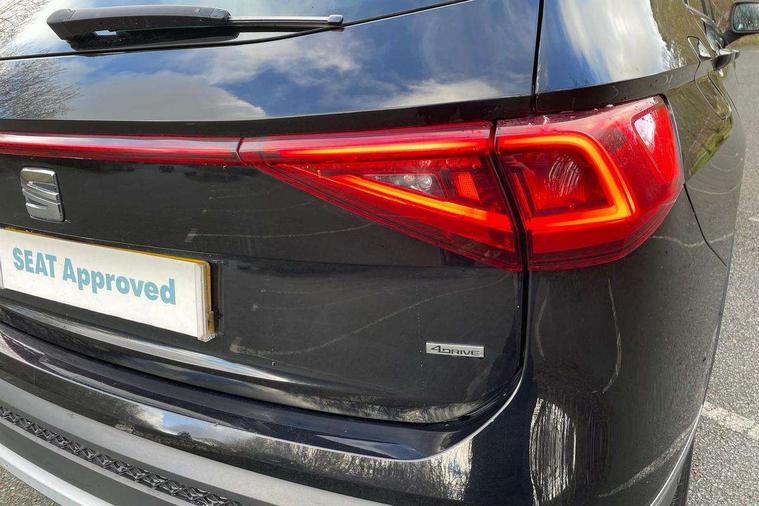 'Lights On' Reminder warning buzzer, 10.25" digital cockpit, Adaptive cruise control with speed limiter, Bluetooth audio streaming with handsfree system, Digital clock, Digital cockpit, e-Call (emergency call), Front assist city emergency braking and pedestrian protection, Full Link Smartphone Integration with Mirror Link, Apple Car Play, Google Android Auto, Lane assist, Low fuel warning light, Outside temperature gauge, Park assist system, Power assist steering, Rear view camera, RPM counter, SEAT Drive profile - 4 different modes, progressive steering, 4Drive versions with off-road/snow, steering response, throttle response, gear shifts, Trip computer, Wash water level indicator, Comfort suspension, XDS electronic differential lock, Navigation system with 8" colour touchscreen with proximity sensor, 3D Map display, DAB, AM/FM Radio, 3 USB, Aux-in, 8 speakers, SD card, Steering wheel mounted audio/telephone controls, Auto dimming rear view mirror, Auto headlights with automatic coming and leaving home function, Automatic headlight adjustment, Body colour door mirrors and handles, Body coloured bumpers, Chrome front grille frame, Chrome roof rails, Chrome window trim, Dark tinted rear windows, Electric front/rear windows, Electrically adjustable and folding door mirrors, Front halogen fog lights with cornering function, Fuel door linked to central locking, Full LED headlights with LED rear lights, Hidden exhaust pipe, Illuminated aluminium front door sill with XCELLENCE logo, LED daytime running lights, LED licence plate lighting, Rain sensing wipers, Rear fog lights, Rear wash/wipe, 3 zone climate control, Ambient spot lighting and front footwell illumination, Baza cloth upholstery + sports seats, Black interior roof, Centre armrest in front with air outlet in rear, Driver and passenger sunvisor with covered and illuminated mirror, Driver/passenger lumbar adjustment, Easy fold rear seat system - second and third row, Folding table on front seat backrests, Forward and backward adjustable seats 2nd row, Four cargo rings in the boot, Front cupholders, Front seat back storage pockets, Gear shift indicator, Height adjustable driver's seat, Height adjustable front headrests, Height adjustable passenger seat, Illuminated boot, Instrument lighting with brightness control, ISOFIX points in outer 2nd row seats and front passenger seat with top tether anchorage points, Leather gear knob, Leather steering wheel, Leather wrapped multifunction steering wheel, Luggage compartment floor with split function, Rear armrest and easy back seat release mechanism from boot, Rear head restraints, Sliding boot cover, Storage draw under front passenger seat, Three 12V sockets, White ambient lighting in front and rear door panels + LED lights in interior door handles, 3x3 point rear seatbelts, ABS, Active front head restraints, Driver/front passenger airbag, Drivers knee airbag, Electronic parking brake with auto hold, Electronic stability control, Front passenger airbag deactivation, Front side airbags, Hill hold control, Seatbelt reminders for all seats, Tiredness recognition system, Traction control, Two curtain airbags, Tyre pressure monitoring system, Alarm, Central locking, Keyless enter and go with electric tailgate with virtual pedal, Locking wheel bolts, Power locking and remote control with two foldable keys and opening boot selector, Chrome interior detailing - door and dashboard decorative inserts, 19" Exclusive machined alloy wheels 37/1, Tool kit,