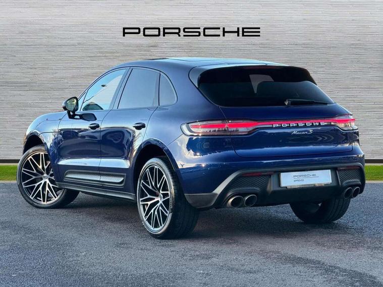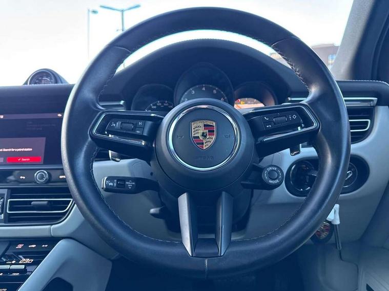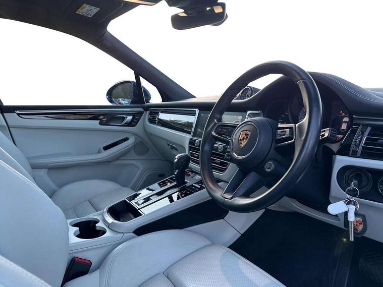 Analogue clock on dashboard, Automatic start/stop system, Automatic tailgate, Digital boost pressure gauge on colour display of instrument cluster, eCall emergency call system, Instrument cluster with high resolution 4.8-inch TFT display, gear indicator for PDK, service interval display, external temperature indicator, fuel gauge, Off-road button, On board computer, Porsche Communication Management (PCM) including online navigation module, mobile phone preparation, audio interfaces and voice control system, Sports button in centre console, 7-Speed Porsche Doppelkupplung (PDK) with automatic mode and manual controls (gearshift paddles) on steering wheel, Direct fuel injection (DFI), Gasoline particulate filter, Steel spring suspension, VarioCam Plus variable valve timing and switchable valve lift, 2 USB sockets in rear centre console, Apple CarPlay with Siri voice recognition, Connect Plus including online navigation, LTE communication module with SIM card reader, wireless internet access, Porsche Car Connect services, DAB Digital radio, Porsche Vehicle Traking System Plus (PVTS Plus), Two USB C charging and connectivity ports in the front centre console storage compartment, Active radiator grille shutters, Automatic headlight activation including welcome home lighting, Bumper system with high strength cross members and two deformation elements + One threaded fixture point for towing eye contained in onboard tool kit, Dynamic cornering lights, speed-sensitive headlight and dynamic range control, adverse weather function, four-point LED daytime running lights, Electric front and rear windows with remote closing function + anti trap + one touch, Electrically folding and heated exterior mirrors, Front light modules with LED position lights and direction indicators, Front windscreen wipers with two speeds, intermittent wipe and rain sensor, Front with integrated cooling air intakes, Fully galvanised body, Heated rear window with automatic switch off, High level 3rd LED brake light integrated into roof spoiler, Loading edge protection in aluminium, Rear side wing doors, Rear window wiper with intermittent function and washer jet, Roof spoiler in high gloss black, Towbar preparation, 3 adjustable rear headrests, 3 rear seats, 4 way adjustable front head restraints, 40:20:40 split folding rear bench seat, Cloth hook b-pillar, Fold up centre console armrest with fore/aft adjustment, Front and rear bottle holders in door panels, Front passenger seat, Glove compartment, Isofix fastening system for child seats on outer rear seats, Luggage compartment cover, Particle/pollen filter with active carbon filter, Rear armrest with 2 cupholders, Storage bin in centre console, Storage compartment in side of luggage compartment and storage compartment in spare wheel recess, Storage pocket in front and rear doors, Two integrated cup holders in front with variable diameter, Two socket 12V power outlets in front console and luggage compartment, uncovered storage compartment in centre console, Ambient comfort lighting pack - Macan, Lower exterior trim package in black - Macan, 3-point automatic seatbelts with front and outer rear seats pretensioners and force limiter + manually height adjustable seatbelt + reminder warning, 6-piston aluminium monobloc fixed caliper brakes at front, internally vented brake discs, Auto hold function, Brake discs with 360 mm diameter at front and 330 mm at rear, Child locks on rear doors, Curtain airbags along entire roof frame and side windows from A pillar to the C pillar, Electronic parking brake, Front passenger airbag deactivation facility for installation of child seats indicator in overhead console, Front side airbags integrated into seat, Full size driver and passenger airbags, Multi-Collision braking, Porsche hill control (PHC), PTM(Porsche Traction Management) and All-wheel drive with map-controlled multi-plate clutch, Roll over sensor for curtain airbag and seatbelt pretensioners, Side impact protection in doors, Tyre pressure monitoring system, Vehicle stability system, Porsche stability management (PSM) including ABS, ASR, ABD, MSR and trailer stability management, Vented discs brake with combination floating calipers at rear, Alarm system with ultrasonic interior surveillance, Engine immobiliser with key transponder, Remote control central locking, Accent trims with silver coloured finish,