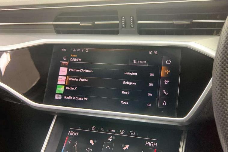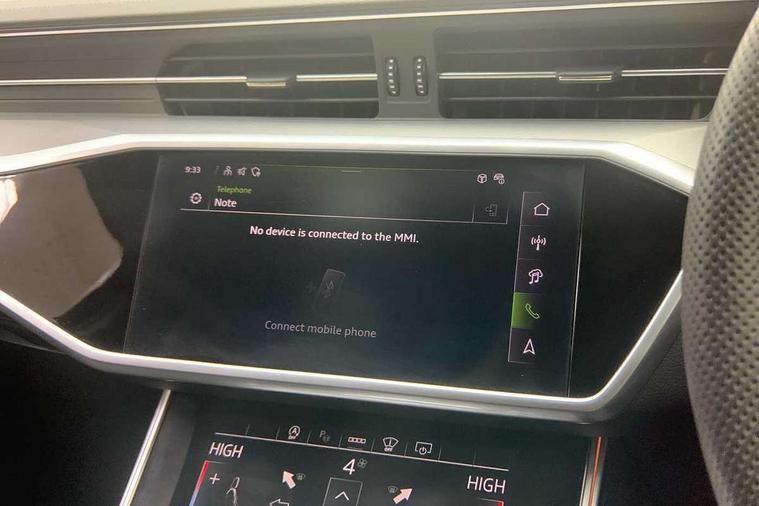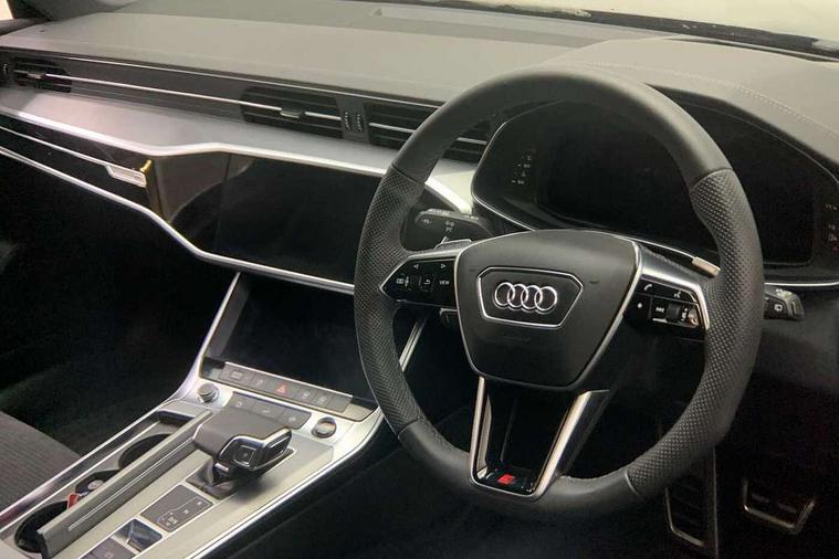 Audi connect safety and service (e-call), Audi connect with Amazon Alexa Integration, Audi drive select, Audi parking system plus - acoustic and visual park assist system for front and rear, Audi virtual cockpit, Automatic start/stop system with coasting functionality, Bluetooth interface, Camera based traffic sign recognition, Lane departure warning system, MMI navigation plus with 10.1" and 8.6" touch screens, Power operated tailgate, Progressive steering, Rear view camera, Service interval indicator, Smartphone interface includes wireless Apple carplay/Android Auto, Voice control system, Sports suspension, Audi front music interface, Audi sound system, Auxiliary input socket, DAB Digital radio, USB connection, Aluminium roof rails, Body colour rear roof spoiler, Body coloured door mirrors, Electric front/rear windows, Electrically adjustable heated and folding + automatically dimming exterior mirrors with memory function, Frameless auto dimming interior rear view mirror, Front intermittent wipers, Heat insulating darkened glass in side and rear windows, Heat insulating glass in windshield, LED rear lights with dynamic indicators, LED signature front daytime running light, LED third brake light, Matrix LED headlights, Matt black rear diffuser with diffuser strip and tailpipes in chrome, Matt black side air intake grille with inlay in matt aluminium, Privacy glass, Radiator grille in anthracite black matt, single frame in chrome and horizontal struts in matt aluminium silver, Rain and light sensors, Rear side wing doors, Rear wiper, 2 zone deluxe electronic climate control, 3 spoke high multi-function perforated leather steering wheel with contrast stitching and shift paddles, 40/20/40 split folding 3 rear seat bench in 3 parts with rear centre armrest, Audi phone box light, Black cloth headlining, Electrically adjustable front seats including seat height, fore/aft position, backrest angle and 4-way lumbar with memory for driver's seat, Front and rear floor mats, Front centre armrest, Front head restraints, Heated front seats, Height/reach adjust steering wheel, Illuminated door sill trims with S logo, Illuminated sun visors with vanity mirrors, Leather gear knob, Luggage compartment system, Rear headrests, Single front passenger seat, Stainless steel pedals and foot rest, Tool kit and car jack, LED Interior Ambient Lighting Pack - A6, Non smoking pack - A6, S line exterior style pack - A6, 3 point seatbelts on all seats, Airbags - Front side, front and rear including head, Audi pre-sense front, EBD - Electronic brakeforce distribution, Electromechanical parking brake, Electronic Stability Control (ESC) including ABS, ASR and EDL, Extended pedestrian protection measures, ISOFIX child seat mounting for front passenger seat and ISOFIX child seat mounting with Top Tether for outer rear seats, Manual child proof rear door locks, Seatbelt monitoring, Tyre pressure warning light, Warning triangle and first aid kit, Anti theft alarm with tow away protection, Anti-theft wheel bolts and wheel loosening detection, Immobiliser, Keyless Go, Remote central locking, Matt brushed aluminium inlays,