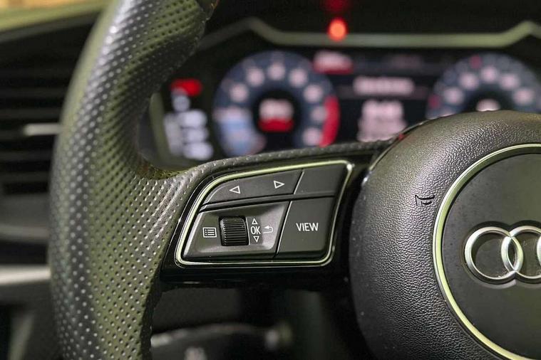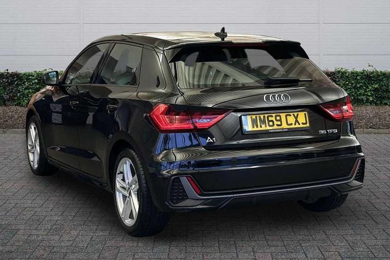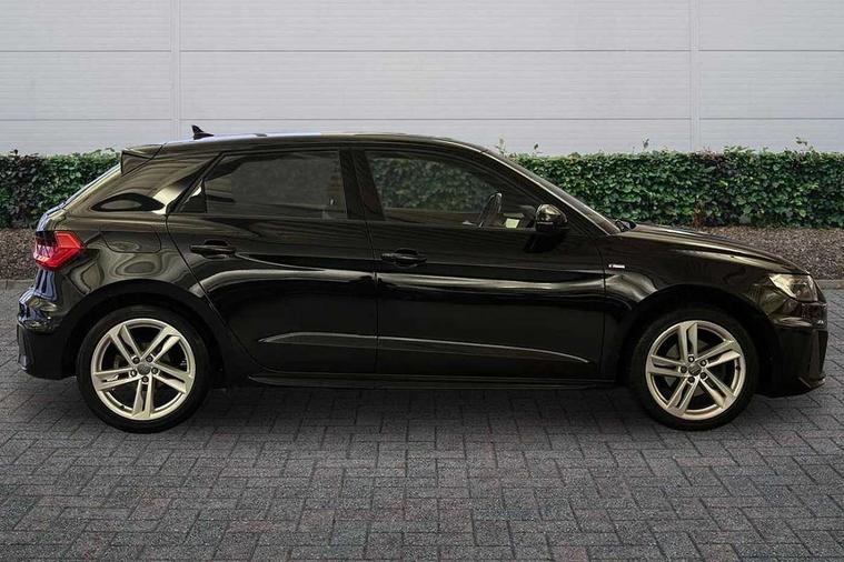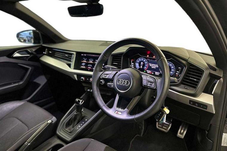 10.25" Digital instrument cluster display classis style instrument dials + speed, odometer, time, outside temperature, telephone menu + fuel level warning, Audi connect safety emergency and service including E-call, Audi drive select - power steering assistance + engine + gear shift 3 preset modes (auto, dynamic, efficiency and an Individual mode), Audi smartphone interface with connect compatible smartphone via USB directly MMI display + Nav, music, third party apps controlled via MMI controller, Automatic start/stop system, Bluetooth interface, Cruise control, Driver's information system, Electromechanical power steering, Lane departure warning system, Rear parking sensor, Service interval indicator, Speed limiter, Voice control system, Washer fluid level indicator, Sports suspension, 1 x SDXC card reader, 1 x USB type C and 1 USB type A charging points, DAB Digital radio, MMI radio plus with 8.8" colour MMI display screen and MMI touch, Auto dimming rear view mirror, Body coloured door mirrors, Door sills with aluminium inlays and S Line logo, Electric front and rear windows, Electrically adjustable, heated, folding door mirrors with integrated LED side indicator, Front side air inlets in grained matt black and C frame in titanium black, Heat insulating glass windscreen and side windows, Heated rear windscreen, LED headlights with LED rear lights + dynamic rear indicators + headlight adjustment and high beam, turning light + LED daytime running lights, Radiator grille and rear diffuser in matt titanium black, Radiator protective grille frame in matt aluminium silver, Rain and light sensors, Rear fog lights, Rear wiper, S line badges on front wings, Side front spoiler lips in grained matt black, 12V socket in centre console with two cup holders, 3 rear seats with headrests, 40:60 Split folding rear seat or folded fully, Black cloth headlining, Driver and passenger seat with manual height adjust with forward and backwards adjustment, Front and rear black floor mats with contrast stitching in fine silver, Front head restraints, Height and reach adjustable steering wheel, ISOFIX child seat mounting for front passenger and outer rear seats including top tether attachment point of outer rear seats, Leather gear knob with aluminium trim, Luggage compartment light with front and rear reading lights, Manually adjustable lumbar support in front seats, Stainless steel pedals, LED interior lighting pack - A1, Luggage compartment pack - A1, S line exterior styling pack - A1 Sportback, 3x3 point rear seatbelts, Audi pre-sense front with pedestrain and cyclist recognition, Brake assist function, Driver and front passenger airbag with front side and head airbags, Electronic Stability Control including ABS, EBD, ASR and EDL, Front and rear seatbelt reminder, Front passenger airbag deactivation switch, Hill hold assist, Seatbelt height adjustment for front seats, Seatbelt monitoring, Tyre pressure warning light, Warning triangle and first aid kit, Anti theft alarm, Anti theft wheel bolts and loose wheel warning, Immobiliser, Remote central locking with 2 foldaway keys, Aluminium trim for control switches, air vents and digital instrument cluster, Silver grey inlays polygon structure in diamond paint finish, Structured grey accent areas including air vents, door handle recesses and centre console in quartz paint finish,