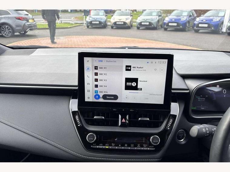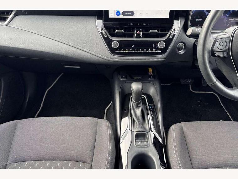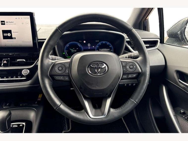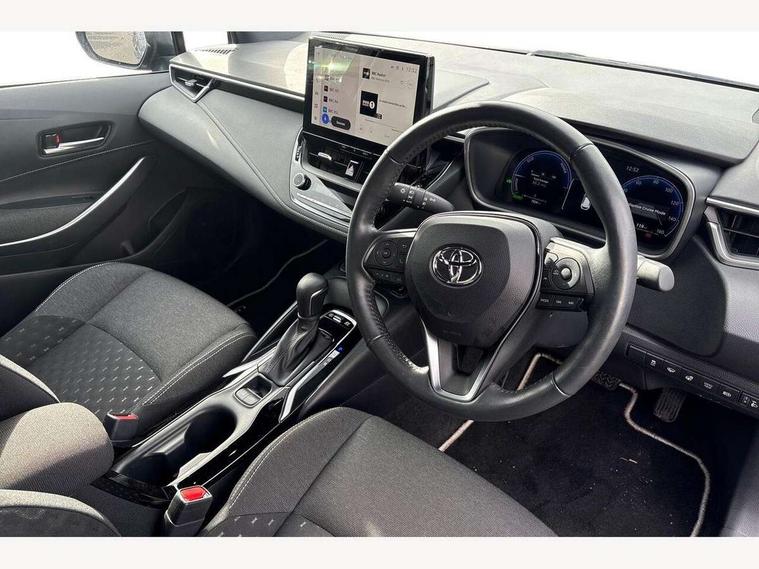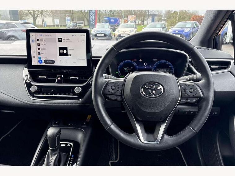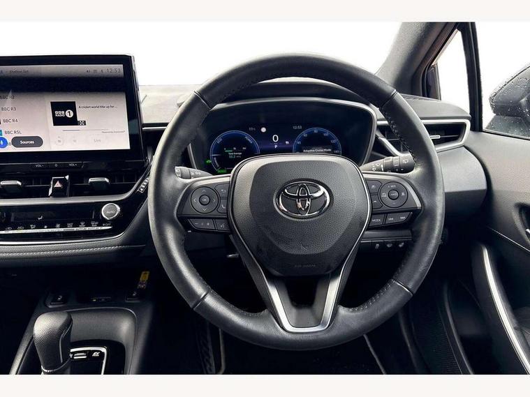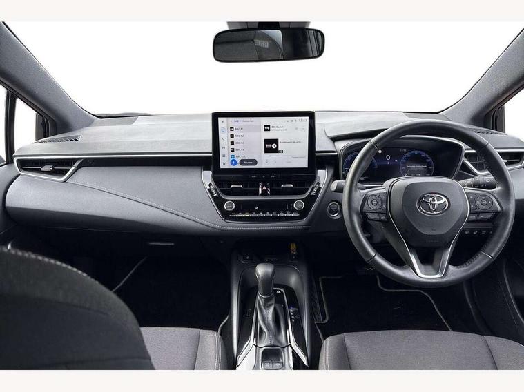 10.5" Multimedia display screen, Bluetooth telephone connectivity, Connected car functionality upgrade, tracker, remote status and e-care, Drive mode select (Eco, Normal), E-call, Electrically assisted power steering, EV drive indicator, Front and rear parking sensors with auto brake, Full Digital 12.3" TFT Digital Combimeter, Key reminder warning, Lane Departure Alert (LDA) switch on steering wheel, Memory on adjustable speed limiter, MyT connected services, Proactive driving assist (PDA), Reversing camera, Smart entry and push button start, Smartphone integration with Apple CarPlay and wired android auto, Tailgate, Toyota remote services, Toyota smart connect navigation, Wireless charger, Gasoline particulate filter, Vehicle Stability Control (VSC), 6 speakers, AM/FM radio, DAB Digital radio, Front USB-C in dashboard, Smart voice assist/ Voice recognition, USB and Aux in connectors + 12V front outlet, Anti-jam protection on power windows, Auto up and down function on all power windows, Automatic headlights with high beam assist, Black centre and side air vents, Black meshed front grille, Black toyota logo in front, Body coloured bumpers, Body coloured door mirrors, Body coloured front spoiler, Body coloured outside door handles, Body coloured rear under guard, COROLLA alloy door scuff plates, Follow me home headlights, LED daytime running lights, LED front fog lights, LED High mounted stop light, LED multi beam headlights, LED multi reflector in headlights, LED rear combi lights with LED lightguide, Manual day/night rear view mirror, Manual headlight levelling system, New grille pattern, Noise reduction layer on windscreen, Piano black diffuser, Power adjustable heated door mirrors, Power front windows, Power rear windows, Rain sensor, Rear side wing doors, Rear window defogger, Rear window wiper, Satin chrome insert on front air vents, Satin chrome insert on front door assist grips, Shark fin antenna, Time adjustment on intermittent wiper, Turning signal integrated indicators in door mirrors, Unique lower skirt, Unique side rocker with black insert, UV-filter on driver and passenger windows, 2 Shopping bag hooks in luggage compartment, 3 rear headrests, 3 seat bench in 2nd row, 3 spoke leather steering wheel with satin insert + gear knob, 4 tie down hooks in luggage compartment, 60/40 split folding rear seat, Adaptive cruise control (ACC) switch on steering wheel, Adjustable speed limiter switch on steering wheel, Audio, multimedia and telephone switches on steering wheel, Black armrest on centre console box, Black gear shift console, Boot light, Centre room light, Driver and front passenger personal light, Driver and passenger assist grip, Driver and passenger sun visor with mirror and light, Dual zone automatic air conditioning with ECO mode switch, Fabric upholstery, Front and rear cup and bottle holders, Front door pockets, Front head restraints, Front passenger seat, Front sliding fabric armrest, Heated seats, Illuminated entry system in room lamp, ISOFIX seat fixing (2 fixings on rear outer seats), Leather gear shift with satin chrome on gear shift console, Manual height adjustable for driver and front passenger seat, Manually tilt with sliding driver and front passenger seat, Parcel shelf, Passenger seat back pocket, Pollen filter, Power adjustable lumbar support on driver seat, Power window switches with satin chrome inserts, Rear armrest with 2 cupholders, Rear passenger coat hooks (2), Remote air conditioning, Satin chrome inside door handles, Satin chrome surround on heater control panel, Satin chrome surround on speedometer, Sliding armrest on centre console box, Slow opening glovebox with lights, Textile floor mats, Tilt/telescopic steering column, Voice recognition switch on steering wheel, Whiplash Injury Lessening (WIL) feature (active headrest) for seats, Toyota safety sense 3 pack - Corolla, 3x3 point rear seatbelts, Adjustable driver and front passenger seat belt extender to top anchor point, Anti lock braking system + Electronic brake force distribution, Brake assist function, Child locks on rear doors, Downhill Assist Control (DAC), Electronic parking brake, Emergency brake light signal (EBS), Front passenger airbag on/off switch, Front seatbelt reminder, HAC - Hill start assist control, Rear seat belt reminder, Seatbelt pretensioners and force limiters, Supplemental restraint system (SRS) 7 airbags - dual driver, dual side curtain, side impact and driver knee airbags, Traction control, Tyre pressure warning system, Acoustic vehicle alert system (AVAS), Alarm with motion sensor and immobilizer, Power passenger window lock, Remote central locking + deadlocks, Satin chrome dash trim, Soft touch texture on upper dashboard, Stitching on lower dashboard, 16" 5 double spoke alloy wheels, Tyre repair kit, Unique wheel finish with red wheel cap,
