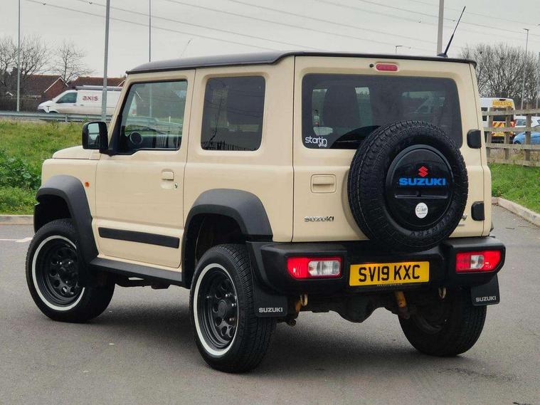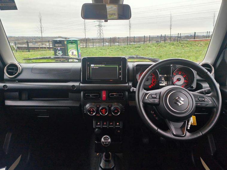 4wd "on" indicator, Bluetooth connectivity, Cruise control + speed limiter, Digital clock, Emergency stop signalling system, Lane departure warning system, Lights on warning, Navigation system, Smartphone link display with Apple CarPlay and Android Auto, Suzuki's Drive select 4x4 system, 2 speakers, DAB Digital radio, USB connection, Automatic headlamps, Black wheel arch mouldings, Body colour door handles, Daytime running lights, Electric front windows + drivers one touch, Electrically adjustable door mirrors, Front fog lamps, Front intermittent wash wipers, Gloss black door mirrors, Headlamp washer, Heated door mirrors, High beam assist, LED headlamps, Rear privacy glass, Rear wash/wipe, 12V Accessory socket in centre console, 12V socket in luggage compartment, 3 spoke leather covered steering wheel, 50/50 split folding rear seat, Automatic air conditioning, Centre console cupholder, Chrome interior door handles, Driver's vanity mirror with cover/ticket holder, Fabric upholstery, Front cabin lights, Front passenger side assist grip, Heated driver and front passenger seats, Rear seat head restraint, Steering wheel audio controls, Storage box in luggage compartment, 3 point ELR front seatbelts with pretensioners and force limiters, 3 point ELR rear seatbelts x2 with pretensioners and force limiters, ABS with Brake Assist, Curtain airbags, Driver and passenger airbags, Dual sensor brake support, Electronic Stability Programme (ESP), Front passenger airbag deactivation, Hill descent control, Hill hold control, Side airbags, Side impact protection beams, Tyre pressure monitoring system, Immobiliser, Locking wheel nuts, Remote central locking, Security alarm, 15" alloy wheels, Full size spare wheel,