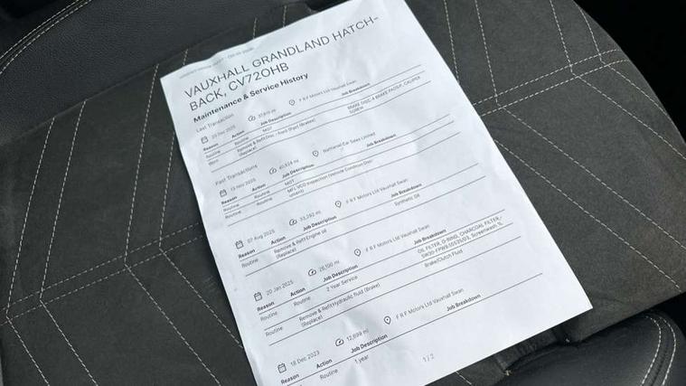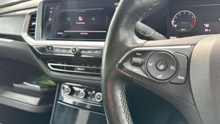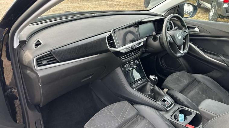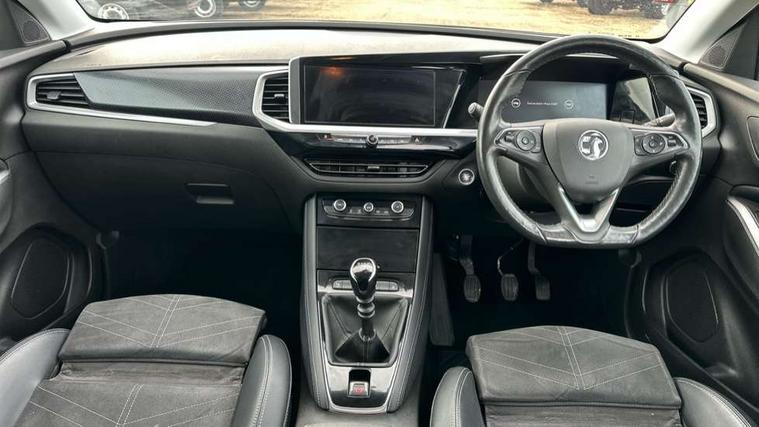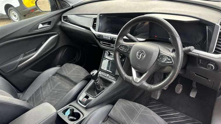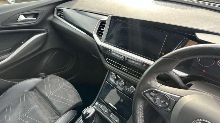 12" colour digital cluster, Central facia display with digital clock, outside air temperature and audio information, Cruise control with speed limiter, Digital fuel gauge with low fuel level warning light, Digital rev counter, Digital speedometer, Digital water temperature gauge with warning light, Driver drowsiness alert system, Driver information - Total mileage, service indicator, oil life, Front and rear parking distance sensors with 360 degree rear view camera and advanced park assist, Gearshift up/down indication light, Lane departure warning system, Lane keep assist, Lights on audible warning, Multi function trip computer - Trip odometer, vehicle range, average speed and fuel economy, instantaneous fuel economy and driving time, Multimedia navi pro with 10" colour touch+ sat nav+AM/FM/DAB radio, bluetooth audio streaming/mobile phone portal, Apple carplay/Android auto, USB, Power operated tailgate with foot sensor, Side blind spot alert, Speed sensitive electric power assisted steering, Speed sign recognition, Vauxhall connect including Emergency call (SOS e-call) and Breakdown call (b-call), Wireless charger for mobile devices, Anti-roll bars, Compound crank rear suspension with coil springs and gas pressure dampers, Independent decoupled MacPherson strut front suspension with gas pressure dampers and coil springs, anti-roll bar, Six speaker - four front + two rear, Steering wheel mounted audio/phone/cruise controls, Alloy effect front and rear skid plates, Automatic lighting control, Automatically dimming anti dazzle rear view mirror, Black door mirrors, Black roof, Black side window trim, Body colour door handles, Body colour lower front and rear bumpers, protective wheel arches and lower door cladding, Body colour upper front bumper, Collapsible windscreen wipers, Dark tinted rear side and tailgate windows, Door to door illumination, Electrically operated front and rear windows with safety auto reverse and one touch up/down facility, Front wiper system spraying directly from wipers, Hazard warning lights, Heated rear screen with timed cut off, Heated windscreen, High beam assist, High gloss black Griffin for Vizor and tailgate with high gloss black Grandland tailgate lettering, High gloss black roof rails, High level centre rear brake light, IntelliLux adaptive LED pixel headlights and LED tail lights, Intermittent rear window wash/wipe, LED daytime running lights, LED front fog lights, Magic wash, Manual headlight beam levelling, Rain sensor windscreen wipers, Rear side wing doors, Rear spoiler, Reversing light, Shark fin aerial, Silver effect protective front and rear skid plate, Soundproof insulated windscreen, Tinted windows, Twin electrically adjustable and heated power door mirrors (wide-angle on drivers side) with automatic timed cut-off, Two speed windscreen wipers with variable intermittent wipe, Upper and lower bumper design, Vizor front grille, Welcome lighting, 12v plug in front console and 12v plug in boot, 3 bench rear seats in 2nd row, 3 spoke flat bottom leather steering wheel with satin chrome effect bezel, 4 way electric driver lumbar support, 4 way passenger electric lumbar support, 60/40 split folding rear seat with centre rear seat armrest and load though facility, Advanced predictive logic control system using a sun sensor, Alcantara upholstery, Ambient centre console downlighter, Automatic air direction and fan speed with manual override, Charcoal filter, Chrome effect interior door handles, Covered storage compartment in centre console and in driver armrest, Driver's centre armrest, Drivers and front passengers seat with height, reach, tilt, backrest adjustment and seat cushion extension, Dual zone electronic climate control, Ergonomic active drivers sports style seat, Ergonomic active front passenger sports style seat, Front door pockets with 2.6 litre capacity, Front seat back storage pockets, Fully carpeted luggage area, Height adjustable headrests, Illuminated driver/passenger sunvisors with vanity mirror, Illuminated luggage area, ISOFIX on front passenger and rear outer seats, Luggage compartment cover, Reach + rake adjustable steering column, Rear centre seat head restraint, Rear door pockets with 1.8 litre capacity, Rear passenger compartment heating ducts, Rear reading lights, Two drinks holders in centre console, Winter pack - Grandland, Anti-lock braking system (ABS), Automatic emergency braking with pedestrian detection, Child proof locks on rear doors, CSC - Cornering stability control, Deactivation switch for front passenger front and side impact airbags, Deflation detection system, Driver airbag, Dual seatbelt pretensioners on front seats, EBD - Electronic brakeforce distribution, Electronic parking brake, Electronic stability program (ESP) including traction control, Front brake ventilated disc 304mm diameter, Front passenger airbag, Front seat side impact airbags, Full size curtain airbags for driver, front seat passenger and outer rear seat passengers, Hill start assist, Hydraulic Brake Assist (HBA), Inertia reel lap and diagonal seatbelts for all seats, Load limiters on outer rear seatbelt retractors, Pretensioners on outer rear seatbelt retractors, Rear brake ventilated disc 268mm diameter, Smart seatbelt reminder for front and rear seats, Tyre pressure monitoring system, Deadlocking system, Electronically protected audio equipment, Engine deadlock immobiliser, Keyless entry and start, Locking wheel nuts, Remote control central locking activation switch on driver door, Remote security alarm system, Black door panels with black premium leather effect inserts, Dax decor facia panel with palladium medium finish, 19" diamond cut bi-colour alloy wheel, Tyre inflation kit,