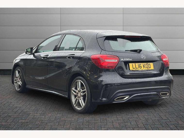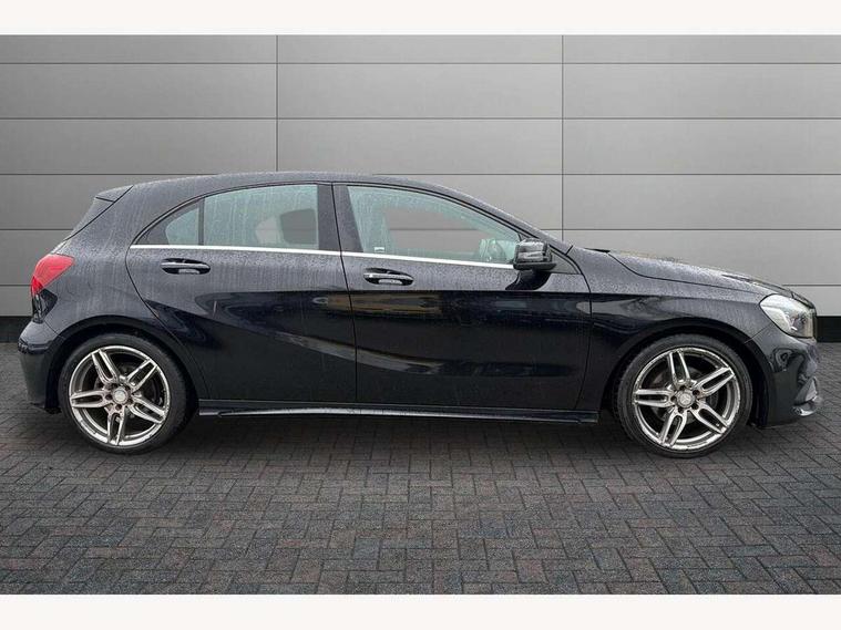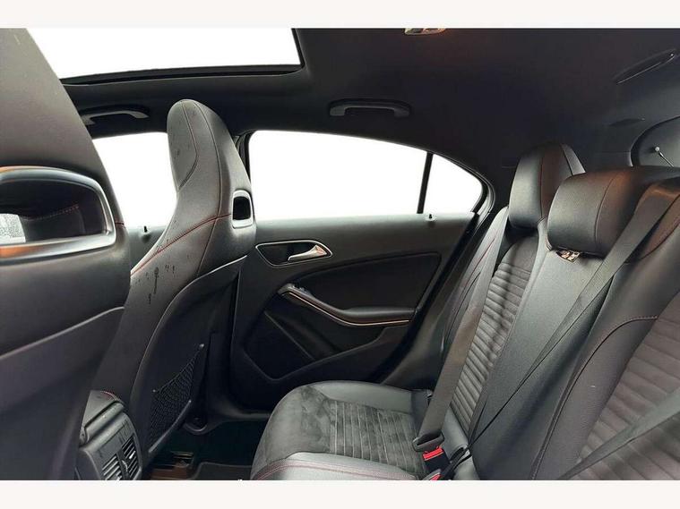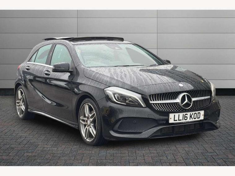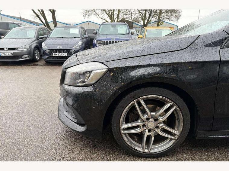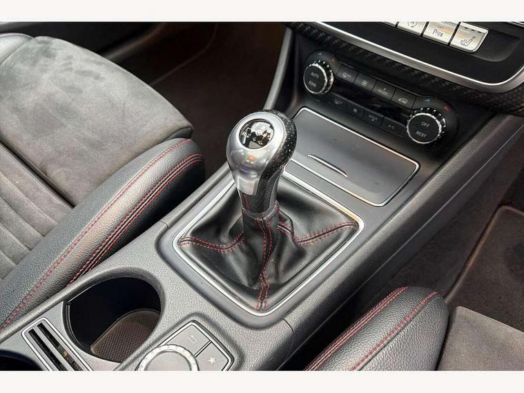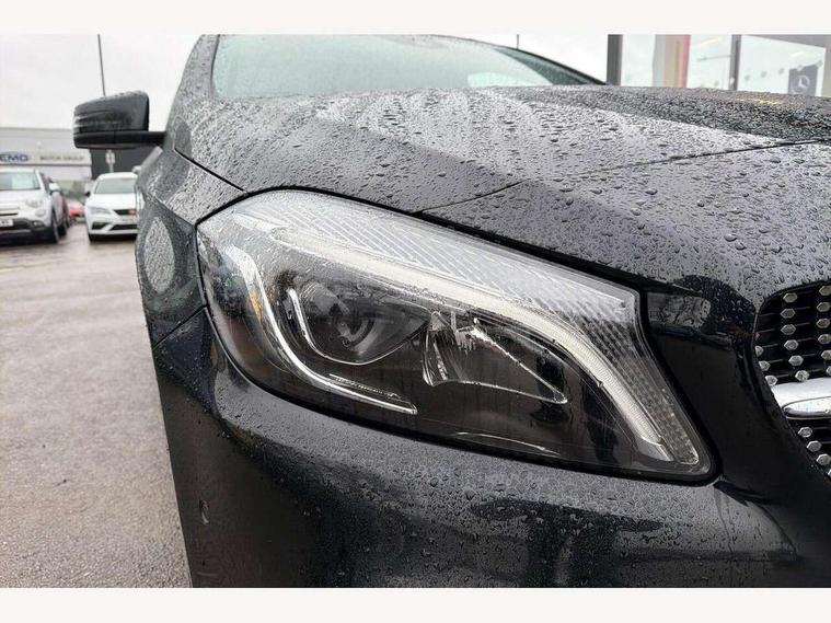8" colour display screen, Attention assist, Bluetooth interface for hands free telephone, Bulb failure indicator, Collision prevention assist plus, DYNAMIC SELECT with a choice of driving modes (ECO, Comfort, Sport, Sport+ and Individual), External temperature gauge, Low fluid warning light, Park assist pilot with front and rear park assist, Reversing camera, Service indicator (ASSYST PLUS), Speed dependent sports steering system, Speedtronic cruise control, Trip computer, Lowered suspension, USB port, Adaptive brake lights, AMG body styling, Auto dimming driver's door mirror, Auto dimming rear view mirror, Body colour bumpers, Body colour door handles, Body colour side skirt, Daytime running lights, Diamond radiator grille with chrome pins and silver louvre + chrome insert, Electric adjustable heated door mirrors, Electric folding door mirrors, Electric front windows, Electric rear windows, Headlamp assist, Heated rear window with timer, High beam assist, LED Headlights, Panoramic sliding sunroof, Rain sensor windscreen wipers, Rear wiper, Twin Trapezoidal tailpipes, 1/3 to 2/3 split folding rear seats, 12 colour Ambient lighting, 12V socket, 3 Spoke sports multifunction flat bottomed leather steering wheel, Auto Mercedes-Benz child seat recognition sensor, Black headlining, Brushed stainless steel sports pedals, Dual zone automatic climate control, Electric front seats with memory function, Footwell lights, Front and rear reading lights, Front centre armrest with storage compartment, Front head restraints, Front sport seats, Heated front seats, Height adjustable front seats, Height/reach adjustable steering column, Illuminated door sills, Illuminated glovebox, Illuminated storage compartment, Isofix rear child seat preparation, Leather gearshift, Load securing rings in luggage compartment, Luggage compartment cover, Luggage net under rear parcel shelf, Parcel net in front passenger footwell, Rear head restraints, Storage compartment under load area floor, Sunvisors with illuminated vanity mirrors, Twin front cupholders, Seat comfort pack - A Class, Stowage Pack - A Class, 3 rear 3 point seatbelts, ABS with Brake Assist, Active bonnet, Adaptive brake system, Brake calipers with Mercedes-Benz lettering + perforated brake discs, Child proof door locks, Crash responsive emergency lighting, Drivers knee airbag, Dual stage driver/passenger airbags, Electronic parking brake, ESP with ASR, Front and rear seatbelt reminder, Front head airbags, Front passenger seat occupancy sensor, Front side airbags, Hill start assist, Tyre pressure monitoring system, Warning triangle and first aid kit, Window airbags, Alarm system/interior protection/immobiliser, Keyless Go access/ignition system, Remote central locking, Carbon effect trim, Chrome air vent surrounds, Tirefit sealant with electric air pump,