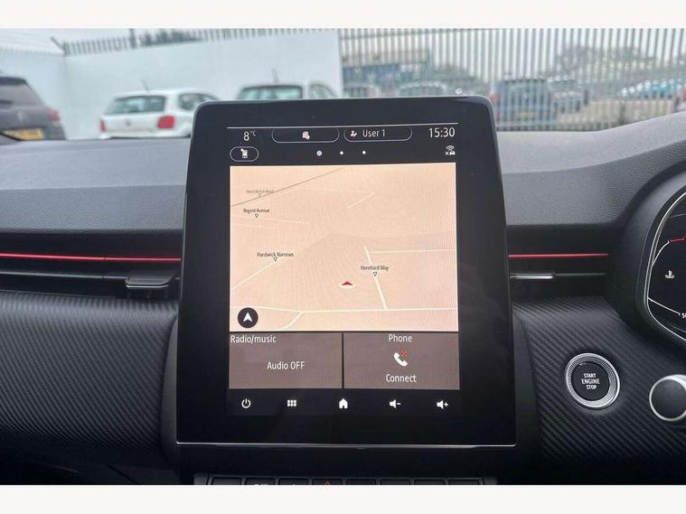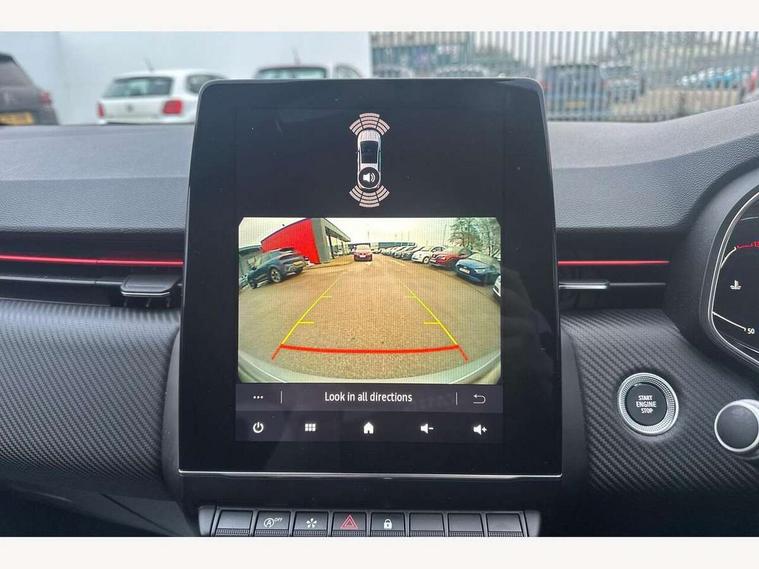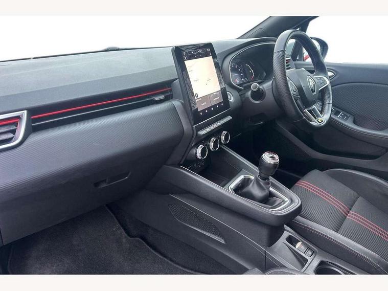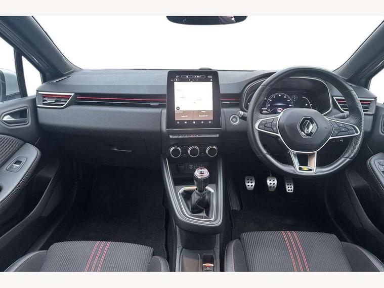 7" TFT colour instrumental display, Cruise control + speed limiter, E-call, Easy link navigation with 9.3" touchscreen+4x20W amplifier+FM DAB double tuner, sound auditorium, 2xUSB/1xjack/bluetooth, smartphone integration plus, Eco mode driving function, Gear change indicator, Lane departure warning system, Lane keep assist, Over speed prevention, Rear parking sensors, Traffic sign recognition, Trip computer, Variable assistance electric PAS, Auto light control and rain sensing wiper, Automatic headlights, Body colour door handles, Body colour door mirrors, Body coloured bumpers, Body coloured rear spoiler, Chrome exhaust tailpipe, Chrome front grille, Chrome window surround, Drivers one touch window with anti-pinch feature, Electric adjustable/heated/folding door mirrors, Electric front windows, Electric rear windows, Exterior rear hidden door handles, Extra tinted glass on rear windows + tailgate, Frameless auto dimming interior rear view mirror, Full C-shape LED front and rear signature lighting, Full LED front and rear headlamps integrating daytime running lights at the front and rear, Gun Metal insert on lower side doors with Clio embossing, LED front fog lights, LED Roof light, Rear fog lights, Rear side wing doors, Rear wiper, RS Line badging, RS Line exterior styling, RS Line side marker chrome, RS Line sports front bumper, RS Line sports lower grill, RS marker chrome gun metal grey sport rear bumper with chrome oval exhaust pipe, Shark fin antenna, Variable speed on front windscreen wipers, 12V Accessory socket, 3 rear height adjustable headrests, 3 seat bench in 2nd row, 6.2L front glovebox, 60/40 split rear seats, Air recirculation control, Auto climate control, Black headlining, Dark roof lining and aluminimum pedal set, Driver's seat height adjustment, Front cupholders, Front decor strip in red, Front door storage bin, Height adjustable front headrests, Height adjustable passenger seat, Height/reach adjust steering wheel, Isofix system on outer rear seats, Multi function steering wheel, Pollen filter, RS branded top grain leather steering wheel, RS Line cloth upholstery, RS Line Interior trim including airvent stripe and gearshifter in red, Single front passenger seat, System for Restraint and Protection SRP-front seats, Parking Pack - Clio, Storage pack - Clio, 3 point seatbelts on all rear seats, ABS+EBD+Brake assist, Automatic emergency braking system, Curtain airbags, Distance warning alert, Driver and passenger front and side airbag deactivation, Driver/Front Passenger airbags, ESC - Electronic Stability Control + traction control, Front side airbags(head+thorax), Height adjustable driver's seatbelt, Hill start assist, Seatbelt warning, Tyre pressure warning, Central door locking, Deadlocking system, Hands free key card with push button, start and stop function, Locking fuel filler cap, RAID (Renault Anti-Intruder Device) with automatic door locking, Rear side wing door and window child locking function (front driver door control panel), Remote central locking with thatcham approved immobiliser, Grey dashboard trim, 17" RS diamond cut alloy wheels,